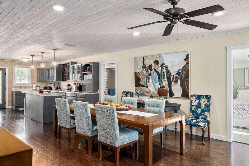 Snaffle Bit Cottage . Where the best things come in small packages . Is buying a new home on your 2025 get done list ? Are you an equestrian coming to train and compete at equestrian -centric Aiken at many of the area's top quality facilities including : Bruce's Field,Stable View,The Vista Training Center, Jumping Branch Farm, Highfields and Dara Knot Farm . Perhaps you are a keen golfer wanting to acquire a ''footprint'' weekend retreat to stay at while ''par-fecting '' your swing at one of the region's iconic courses. Celebrate the coming of Autumn in Aiken SC, the Sporting Capital of the Southeast where Southern Charm and outdoor living abound 12 months of the year. If you are searching for a place to call home seasonally or year round, centrally located in the heart of Aiken 's Historic Overlay District where green parkways and old growth trees shade the neighborhood? Keep reading ... This charming,1540 SF, lovingly remodeled Old Aiken 3 BDR 2.5 BTH and 4th flex room for office, BDR etc cottage waits for you. This compact, single story, move in ready residence, was fully renovated from the studs in 2011, without losing its vintage cottage charm. The residence sits back off the street and includes considerable off street parking. The quaint front porch welcomes visitors and residents alike, encouraging them to pause, perhaps sit and sip morning coffee or sunset cocktails while enjoying the serene surroundings. The interior living area is an attractive blend of cottage charm, note the wood panelling on the ceiling ,and repurposed wood floors, AND modern, bright, open living space. Step thru the vintage paneled front door directly into the cosy sitting area that leads seamlessly into the dining area with room for a large rectangular table taking center stage. The airy kitchen is a delightful blend of functionality and farmhouse style. A practical central island helps define the kitchen from the dining area adding even more room to gather around with family and friends while socializing or cooking. The custom cabinetry painted a soft dusky blue, has ample storage and prep space for all tasks. The popular split bedroom plan includes a private primary BDR with ensuite BTH with large walk in tiled shower, custom vanity and the convenience of laundry facilities. The 2 other guest BDRs share a full bath and the 1/2 BTH is conveniently tucked away in the rear corner of the house off the kitchen. There is also a large, raised wooden deck off the rear of the house, accessed thru the back door off the kitchen which is currently furnished with an outdoor dining table and chairs. The large landscaped back yard is fully enclosed with a tall privacy fence keeping pets and children safe from wandering off .