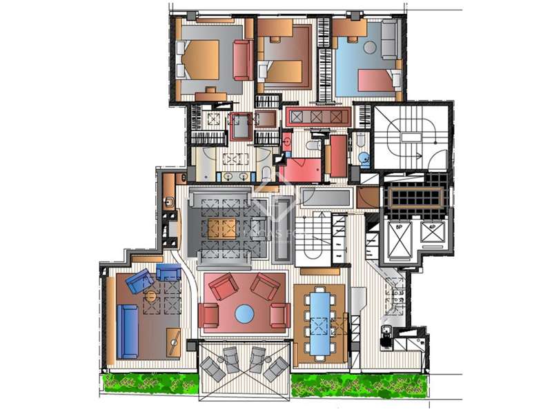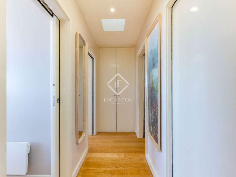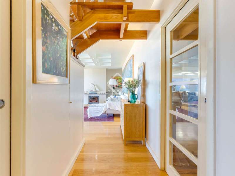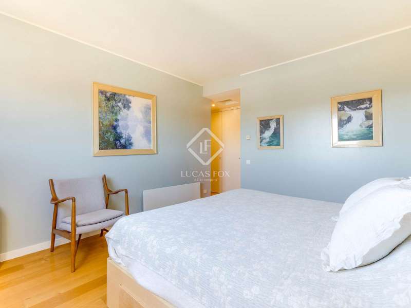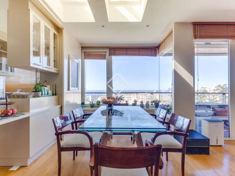 This apartment, located on the top two floors of an iconic building in Foz, in a gated community with 24-hour security, complete privacy and extensive, well-kept gardens, offers sophistication and elegance, as well as the privilege of living in an apartment with unique and unchanging sea views. This apartment is extremely versatile and its layout can easily be converted into a 4- or 5-bedroom apartment. On the upper floor, another social or private area can be developed, for which a study is already underway for this possible intervention. The apartment has a large social area with a slight drop-off and an open-plan kitchen. Due to their layout and positioning in the space, all areas of the apartment promote maximum comfort and well-being and, at the same time, the desire to contemplate the immense views of the sea, river and city. The apartment is equipped with comfort infrastructures, such as underfloor heating and convectors for heating the rooms, and also offers some interesting design and construction features, such as the upper light fixtures. For the greater convenience of users, two parking spaces and storage are available on the floor designated for car parking.