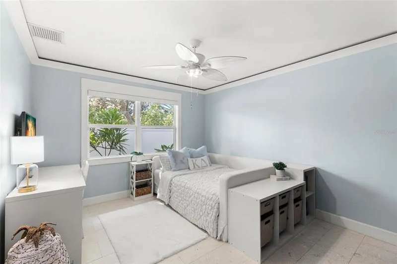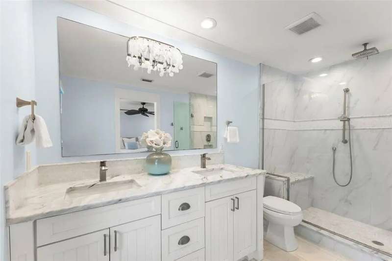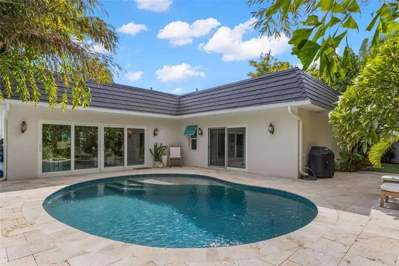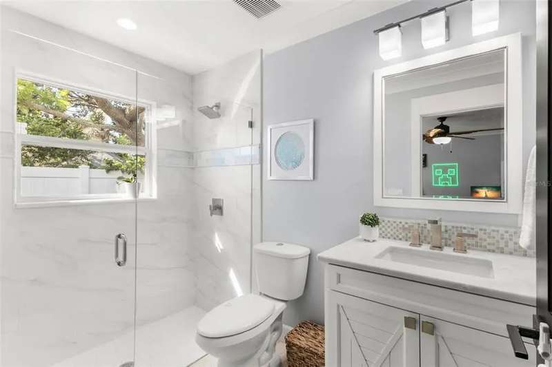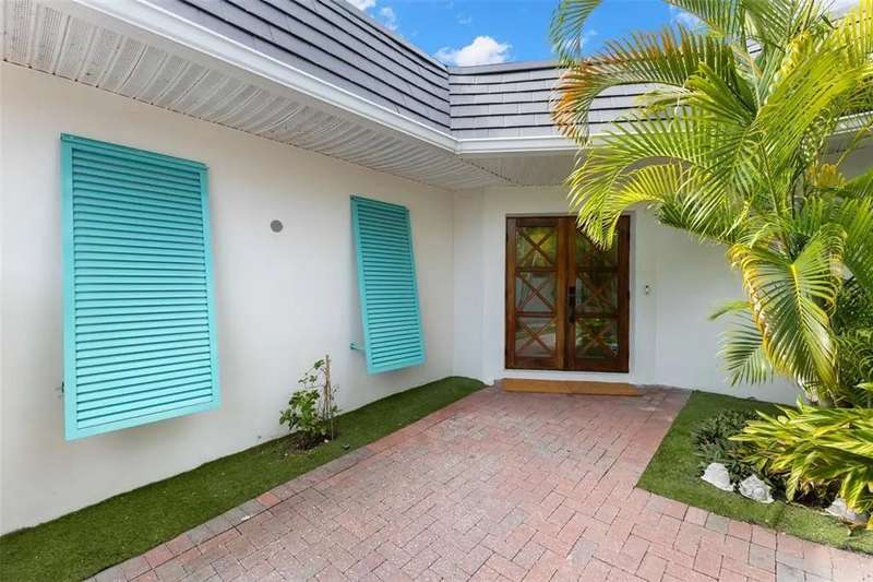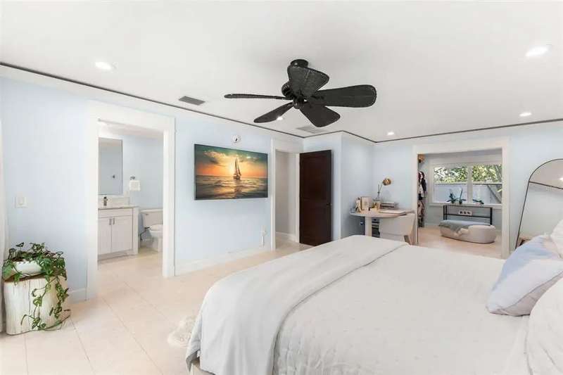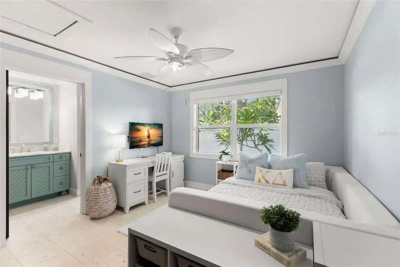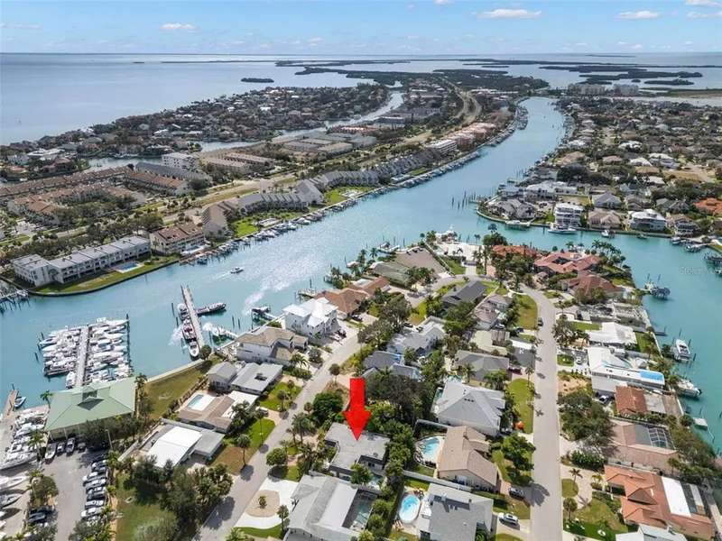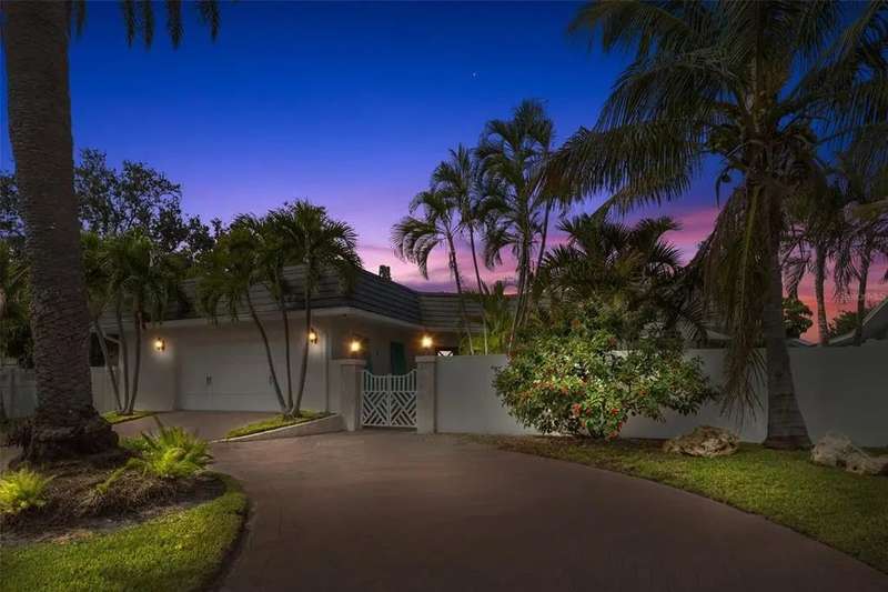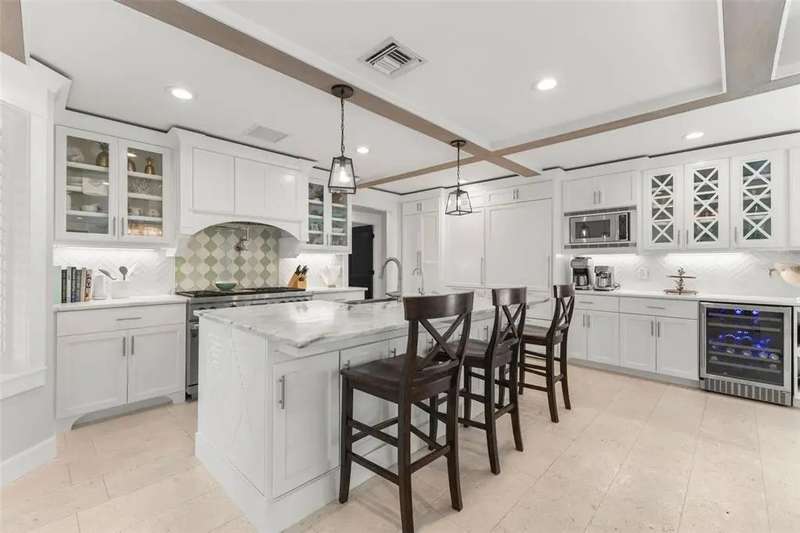 Embrace the elevated and elegant style of this Coastal Contemporary Pool home in Tierra Verde. With a casual sophistication reminiscent of that one effortlessly stylish friend, this residence blends a welcoming atmosphere with refined design throughout. Step through the charming courtyard entry, complete with cozy seating around a gas fireplace, and enter through custom mahogany doors. The foyer leads seamlessly into the kitchen, while cool shell tile floors and warm wood ceiling accents define the open-concept space. The kitchen stands out with coffered ceilings, a striking gas range alcove, and a large quartzite island featuring a double apron sink. Culinary amenities include two SubZero refrigerators, a dual-zoned wine chiller, and a built-in beverage cooler. The adjacent dining area, highlighted by a stunning chandelier and a trayed ceiling, is the centerpiece of the great room. Expansive sliding doors open from the living area to the pool and lanai, inviting sunlight and sparkling water views into the home each afternoon. Three bedrooms each offer ensuite baths for ultimate privacy and comfort. The Primary Suite features sliding doors to the pool, a spacious dressing room with custom closet systems and pocket doors, and a luxurious bath with a double quartzite vanity and Capiz tiled shower. The second bedroom contains a private ensuite bath with custom cabinetry, onyx vanity, and glass tile accents. The third bedroom’s ensuite bath is finished with elegant quartzite and marble details. A powder bath and laundry room are conveniently located along the main hallway, with walk-in pantry storage. Lush tropical plants and palms surround the saltwater Pebbletec pool, which includes a sunshelf and two bubblers, all finished with beautiful travertine pavers. The courtyard and circular drive feature brick pavers, while a reclaimed water irrigation system sustains the landscaping. The attached oversized garage provides ample space for two large vehicles, a workbench, and two storage rooms—ideal for holiday decorations and more.