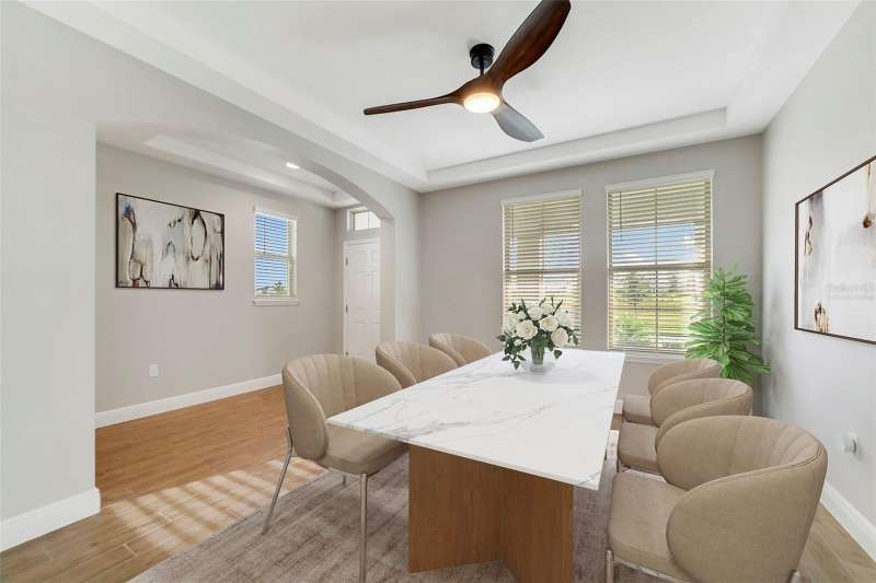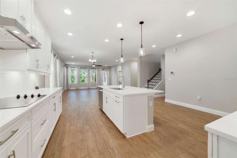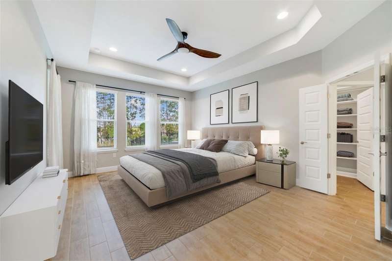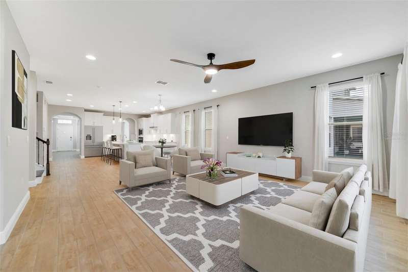 One or more photo(s) has been virtually staged. **Seller may consider buyer concessions if made in an offer**Immerse yourself in the beauty of MODERN LAKESIDE LIVING with this stunning 4-bedroom, 3.5-bath residence in the highly sought-after Waterleigh community of Winter Garden. Built in 2024, this home exudes the sophistication and comfort of new construction, offering over 3300 SQUARE FEET of thoughtfully designed living space and peaceful LAKE VIEWS from the screened-in back patio. The moment you enter, you’ll notice elegant ARCHED DOORWAYS, tray ceilings, abundant natural light, and a seamless open-concept design that creates a graceful flow between the Kitchen, Dining, and Living areas. The CHEF-INSPIRED KITCHEN is a true centerpiece, featuring pristine white cabinetry, stone countertops, a cooktop, BUILT-IN CONVECTION OVEN, breakfast bar, and a BUTLER'S PANTRY that connects to a formal Dining Room—complete with an impressive CALIFORNIA CLOSET–DESIGNED PANTRY SYSTEM. The Primary Suite, located on the main floor and adorned with a graceful tray ceiling, captures serene lake views and provides a peaceful retreat. Its luxurious EN SUITE BATH showcases dual vanities, a garden tub, step-in shower, private water closet, and a custom WALK-IN CALIFORNIA CLOSET designed for both beauty and functionality. Also on the main level are a convenient Laundry Room and a guest half bath, blending everyday practicality with refined style. Upstairs, an EXPANSIVE LOFT AREA—featuring a 90" TV—provides the perfect space for relaxation, media, or play. Three additional bedrooms each include custom WALK-IN CALIFORNIA CLOSET SYSTEMS, with one boasting its own PRIVATE EN SUITE BATH and the others sharing a well-appointed full bath. Outdoor living is equally inviting with a NEW screened lanai, NEW extended paver patio, and NEW gutters (2024) overlooking the tranquil lake, creating a picturesque setting for dining alfresco or simply enjoying the Florida breeze. Residents of Waterleigh enjoy an unmatched lifestyle with RESORT-STYLE AMENITIES, including clubhouses, Community pools, fitness centers, playgrounds, sports courts, dog parks, and scenic walking trails. Ideally located near TOP-RATED elementary and middle schools, and just minutes from Hamlin Town Center, Winter Garden Village, and Disney, with EASY ACCESS to SR-429 and other major highways, this home perfectly balances serenity and convenience. With its elegant finishes, lakefront views, and impeccable design, this Waterleigh residence defines MODERN LUXURY LIVING in one of Winter Garden’s most desirable communities. Act quickly-this GEM won't last long!