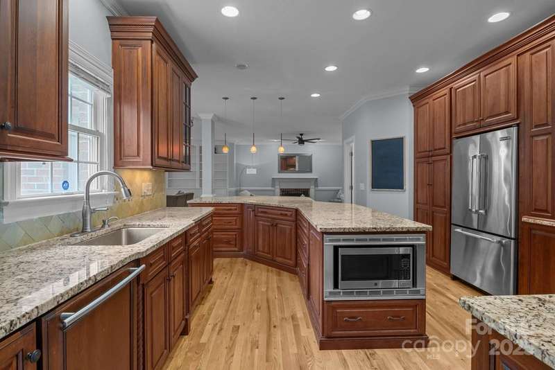 WELCOME HOME to the HAMPTONS! Your serene outdoor oasis awaits at this premier private, cul-de-sac flat lot w/ screened in porch & brick paver patio waiting for you to call home in the HOUGH DISTRICT! Enter this bright & airy home & be immediately welcomed into a light filled 2 story foyer that accents the recently refinished hardwoods throughout the main level. This dual staircase brick home is an entertainer's dream w/ a large kitchen & expansive island open to the great room & living room! You will enjoy working from home in this spacious office w/ 3 windows & double french doors. An updated half bath, dining room & laundry room w/ separate entrance complete the main level. You will find all the space you need & more upstairs w/ a private primary suite, 3 additional spacious bedrooms & a bonus room w/ private staircase. All within the thriving & highly sought after HAMPTONS neighborhood w/ 2 huge pools, 2 clubhouses, 2 playgrounds, tennis courts located near Lake Norman & shopping!