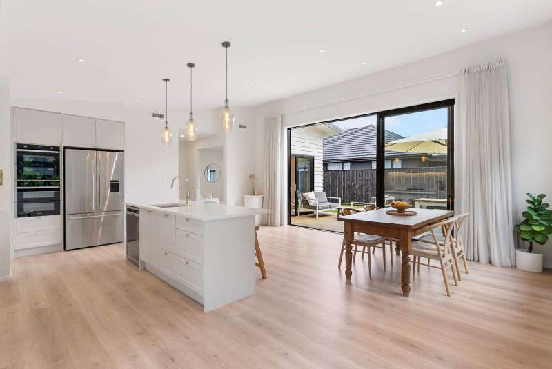 Beautifully crafted with families and entertainers in mind, this thoughtfully designed single-level home is ready for you to move in and enjoy just in time for summer. Set on a fully fenced freehold section with landscaped grounds, it offers the perfect balance of comfort, space, and style. At the heart of the home lies a beautifully designed open-plan kitchen, dining, and living area - the perfect space for everyday living and effortless entertaining. The contemporary kitchen is a standout, featuring a generous island with stone benchtops, natural-toned cabinetry, and a spacious walk-in pantry. Whether it’s casual family meals or hosting friends, this versatile space has you covered. Large sliding doors open onto a sun-soaked deck, creating seamless indoor-outdoor flow, while strategically placed skylights bathe the interior in natural light, adding warmth and a sense of openness throughout. A separate lounge provides a versatile second living area, complete with access to the deck - perfect for entertaining guests or unwinding in peace at the end of the day. The spacious master suite offers a private and tranquil retreat, featuring a generous walk-in wardrobe and a stylish ensuite with quality finishes. Three additional bedrooms provide ample space for family or guests and are serviced by a luxurious main bathroom, complete with a freestanding bath, floor-to-ceiling tiles, and a sleek, modern design. Designed with everyday convenience in mind, the home includes a spacious linen cupboard and an internal-access double garage, providing plenty of practical storage space. Located in the growing and family-friendly suburb of Milldale, you'll enjoy close proximity to local schools, parks, shops, cafés, and quick motorway access - everything you need is just minutes away. Homes of this quality are highly sought-after - don't miss your chance to make it yours. We look forward to seeing you at the open home. Auction: 8-12 The Promenade, Takapuna on Wednesday 8 October 2025 at 9:30AM (unless sold prior)