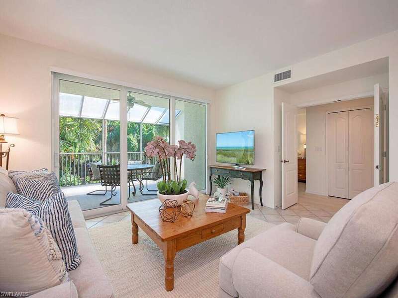OPPORTUNITY STRIKES! Capture the magic of tranquil corner property ownership touting THREE FULL bedrooms and THREE FULL baths with envious sneak-peeks of the Pelican Bay Golf Course. Welcome to Pebble Creek, a community prized for being located just steps away from Pelican Bays North Tram Station and "The Berm", Pelican Bays private Gulf Walk/Bike Path leading directly to the community's 2 Private Gulf Front casual open-air and more formal indoor dining establishments, 2 outdoor sports bars, plus attended Beachfront Service amenities. Pebble Creek Building #16 owners enjoy an under-building one car garage, happily elevating this first-floor gem above typical ground level, with garage elevator sweeping directly to each floor. Enjoy peace of mind, as this gem is fully protected with hurricane Impact sliding glass windows. Offered fully furnished, desirable interior appointments include a generous split bedroom plan, easy-breezy, carefree hard surface flooring throughout, warm honey-toned raised panel kitchen cabinetry, granite counters, separate sunny breakfast room, and a full ample separate laundry room. Delight in true Open-Air Florida living while lounging on the private tropical garden setting screened lanai, complete with built-in electric grill station encouraging talented Grill Masters to "show-their-stuff" while you dine alfresco in the comfort of your home. Pelican Bay offers a myriad of Private Membership Included Beachfront and Community Amenities: Miles of Pristine sugar white sand Gulf Beachfront, 2 Members-only Waterfront Restaurants and Sports Bar, Attended Beachfront Services, State-of-the-Art attended Fitness, Community Life Long Learning Center, 2 Har-Tru Tennis Centers, a new Pickleball Park, plus miles of hiking, biking and nature trails. Artis Center for the Performing Arts, The Baker Museum, Naples Philharmonic, The Naples Gulf Front Ritz-Carlton, luxurious boutique Waterside Shops, and lively Mercato shops and restaurants all steps away..