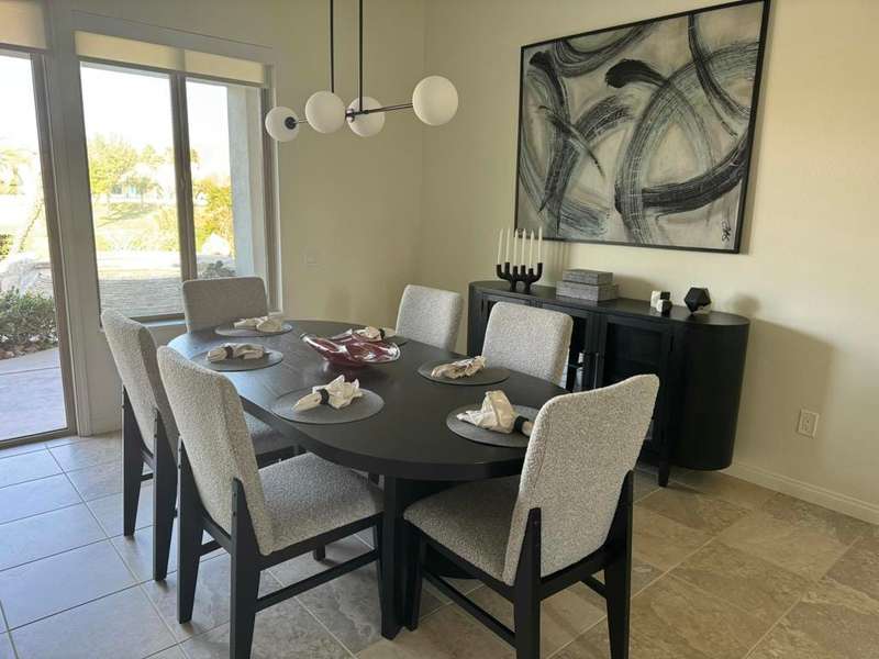 Booked Jan 2026- March 31 2026 This stunning home, located on the serene first hole of the golf course, offers the perfect combination of luxury and tranquility. With 2,569 sq. ft. of living space, the highly sought-after San Miguel floor plan features three beautifully appointed bedrooms, 2.5 modern bathrooms, and a versatile den/bedroom for added flexibility. 3rd bedroom does not have closet.Recent upgrades, including new flooring and fresh paint, make this property feel like new while enhancing its contemporary appeal. The gourmet kitchen, complete with granite countertops and state-of-the-art appliances, is perfect for both everyday meals and entertaining guests.Outside, the private oasis awaits with a sparkling pool, soothing spa, and a built-in BBQ -- all set against stunning mountain and golf course views. Whether you're relaxing or entertaining, this outdoor space is designed to impress.Additional amenities include a spacious 3-car garage, providing plenty of room for vehicles and storage. This home offers the ideal balance of comfort, style, and breathtaking scenery, making it the perfect retreat for those seeking the best in both design and location. This home will be turnkey furnished.Contact me today to schedule a private showing and see this exceptional property for yourself!