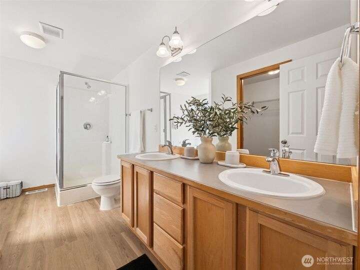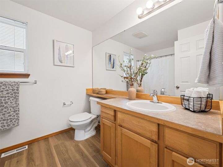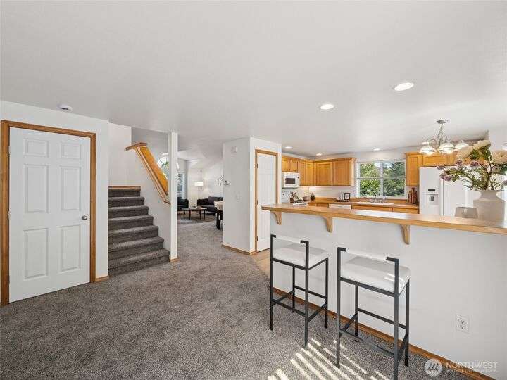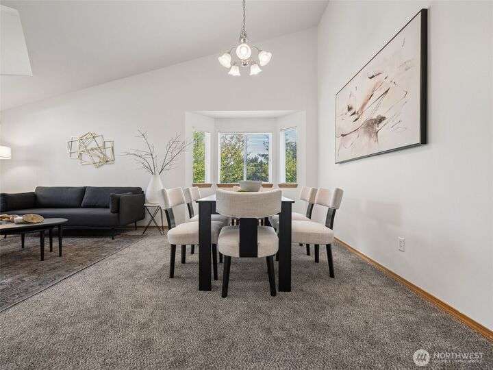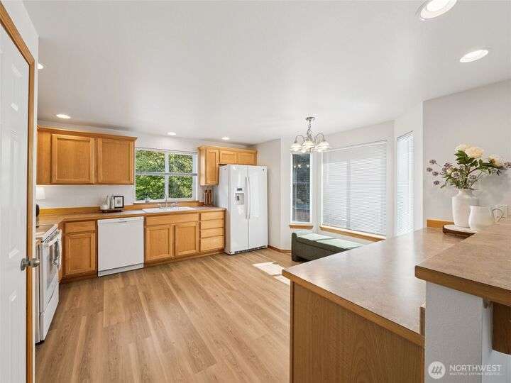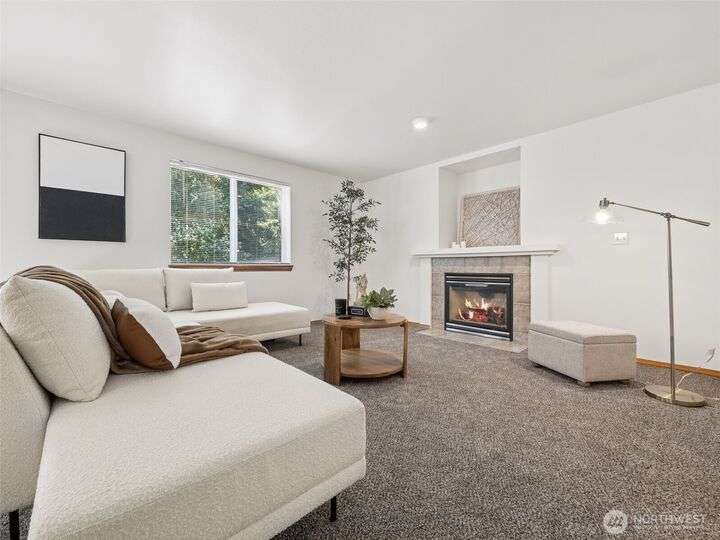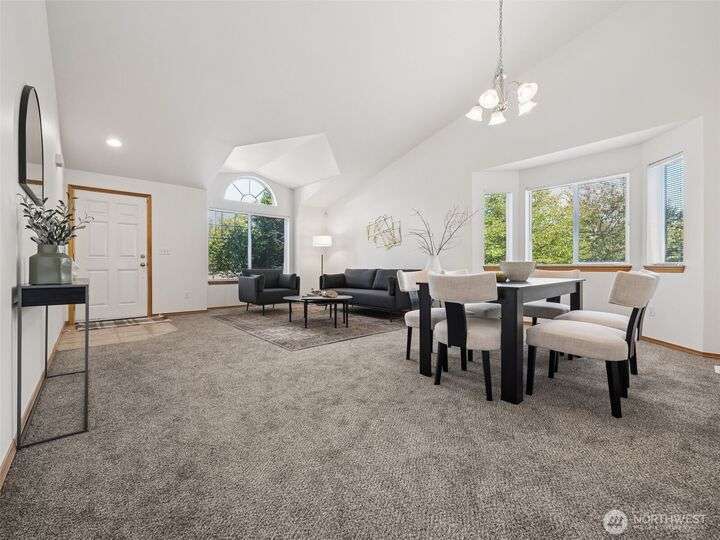 Resting on a large corner lot. An exceptional open & airy home. Thoughtfully designed home offers the perfect blend of comfort & flexibility. Spacious entry w/ formal living & dining room. Soaring ceilings, tons of natural light, skylight & large windows. The open floor plan features a family room w/ gas fireplace & slider to large fully fenced yard. Spacious kitchen w/ plenty of counter space, all appliances, breakfast bar & casual eating nook w/ bay window. Current updates, new carpet, pad, laminate vinyl flooring, freshly painted inside & out plus beautiful landscaping. 4 spacious bedrooms upstairs, primary w/ soaking tub, walk-in shower & walk in closet. Laundry room/mud rm off garage. Excellent location & Tahoma Schools! Move in ready!