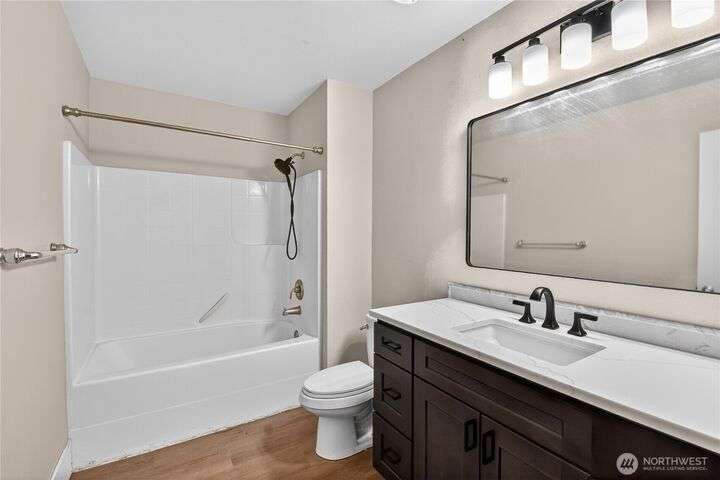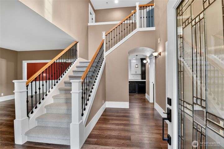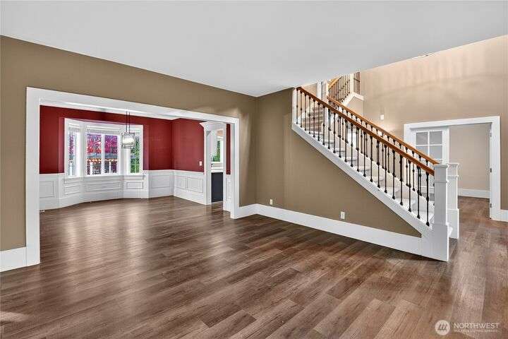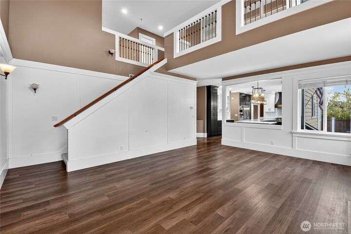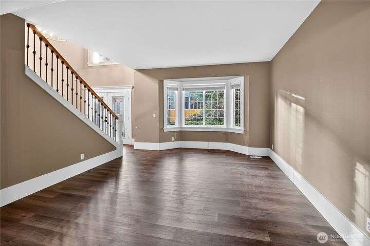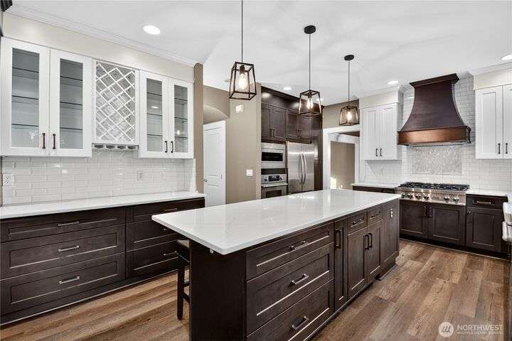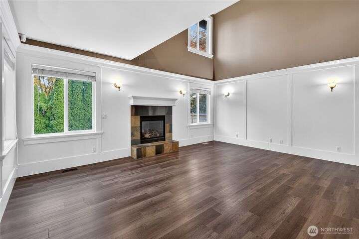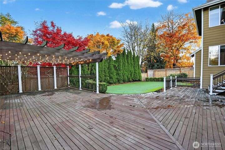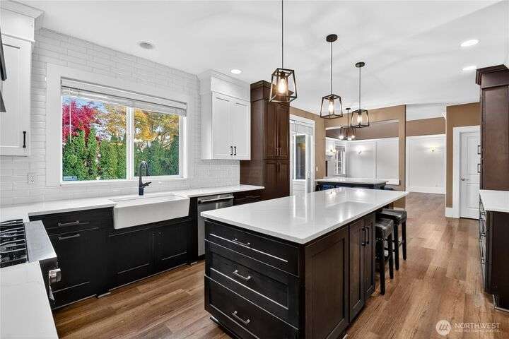 Available now! Thoughtfully updated 3+ bedroom home. Enter in to find the formal living and dining rooms, kitchen, dining nook with bench seating, .75 bath, family room with cozy fireplace and office that could be used as a fourth bedroom. The open kitchen has oversized island, new cabinets, Quartz countertops, stainless appliances and two ovens. Upstairs is the primary bedroom with updated 5-piece bath and walk-in closet, two additional bedrooms, full bath, bonus space, rec room, and laundry with utility sink. Recently remodeled kitchen and bathrooms, new flooring throughout. Lots of natural light. Two car garage with ample storage. Fully fenced yard with expansive deck and turf! Landscaping included. Pets CBC.
