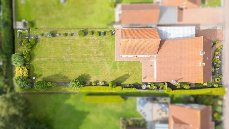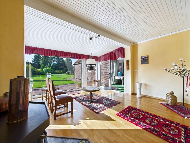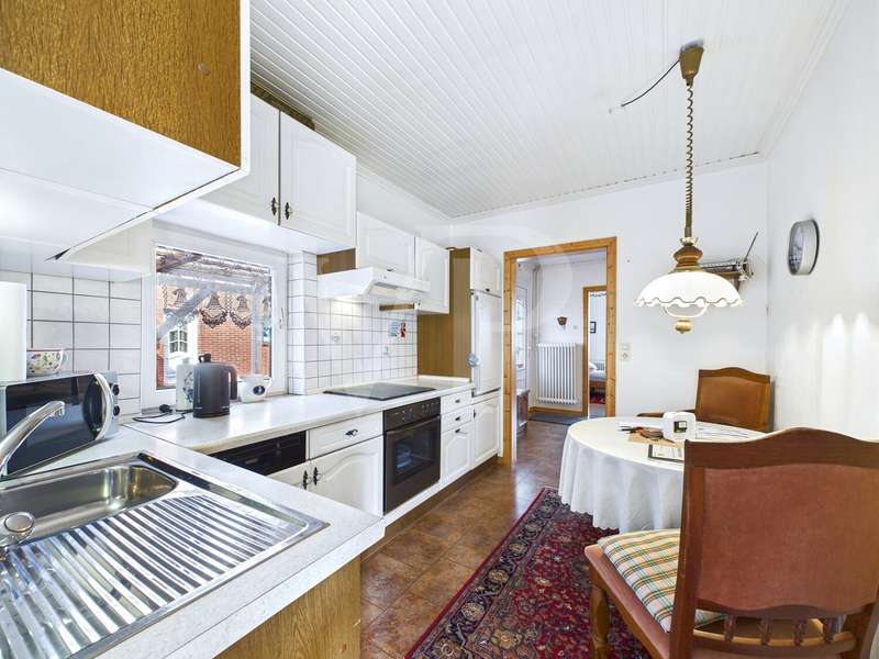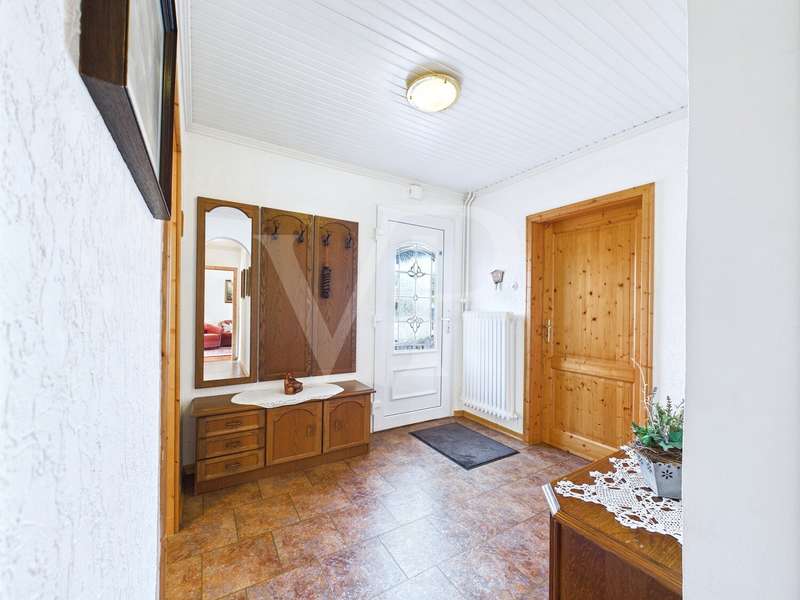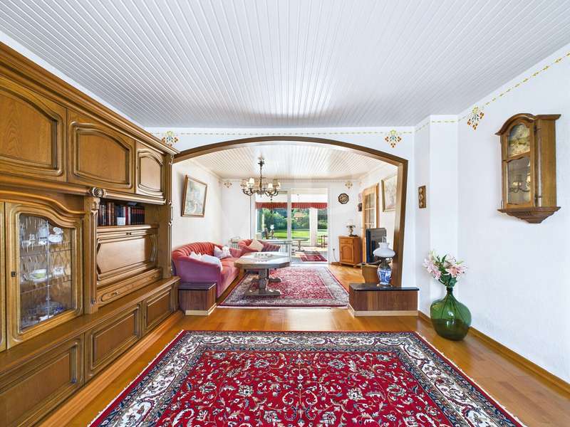 Welcome to this detached house built in 1960, which offers you versatile usage and design options on a pleasant living space of around 124 m². The property is situated on a plot of approx. 1000 m² and is in a very well-kept general condition. It is particularly suitable for families who value a quiet residential area and sufficient space. The floor plan comprises a total of 5 rooms, including 3 bedrooms. A centrally located bathroom with a walk-in shower provides comfort and is just as barrier-free as the entire living area, which is fully accessible at ground level. This accommodates all age groups and different living situations. The country-style room doors and a high-quality wooden front door underline the well-kept appearance of the house. A bright conservatory adjoins the spacious living room. Here, a functional fireplace provides pleasant warmth and creates a cozy atmosphere, especially in the cooler months. Enjoy the beautiful view of the spacious garden and spend relaxing hours regardless of the weather. The fitted kitchen offers all the basic equipment for everyday use. An insulated attic is available for additional storage space. A new condensing boiler was installed in 2011, bringing the central heating up to modern standards. Other features include shutters that provide heat protection and privacy. An electric awning enhances the comfort of the outdoor area. The property boasts a spacious garage with storage room and a carport, providing ample storage space for vehicles, bicycles and garden tools. There is also a fully functional groundwater pump in the garden, which makes it easier to water the extensive outdoor area. Hobby gardeners will find a variety of design options here and children have additional space to play. As the property is in need of renovation, you have the opportunity to implement your own living ideas and further develop the house individually. The heating system, which has already been modernized, forms a valuable basis for further measures according to your ideas. The location of the house is characterized by tranquillity, while at the same time underlining the easy accessibility of all important facilities for daily needs thanks to a pleasant neighbourhood structure. Whether for couples or families - this detached house combines quiet living with development potential and numerous amenities for everyday life. We invite you to view the property to gain your own impression. We are at your disposal for further information and to arrange an individually tailored appointment.