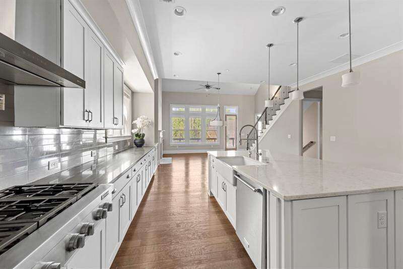 Welcome to your dream home! This architectural masterpiece, offering 5 bedrooms and 4.5 baths, epitomizes modern elegance and the finest in luxury living. This stunning residence is a true showcase of exceptional design, blending sophistication with an open-concept layout and unparalleled attention to detail. As you enter, you are immediately captivated by the chef's kitchen, where elegance meets functionality. Outfitted with the highest-quality stainless-steel appliances, including a built-in refrigerator, a 6-burner gas range with pot filler, a spacious walk-in pantry, and an expansive island designed for entertaining, this kitchen is a culinary enthusiast's dream. The sun-filled family room invites you in with a warm fireplace and direct access to the upper deck, creating an ideal space for both intimate relaxation and grand-scale gatherings. The main-level owner's suite is nothing short of indulgent, offering radiant heated floors, a spa-inspired 6-jet shower, dual vanities, and a custom walk-in closet with an included washer and dryer for ultimate convenience. The second, expansive owner's suite on the upper level provides a tranquil sanctuary, while two additional bedrooms, a full laundry room, and ample space for rest and recreation complete the upper floor. The terrace level is a true gem, designed for both relaxation and entertainment. Featuring a luxurious bath with a Japanese soaking tub and an expansive shower, this level also includes a spacious bedroom, a kitchenette, a home gym area, and a generously sized lounge perfect for unwinding or hosting guests. Outdoors, the covered patio with under-decking allows for seamless transitions to nature, enhancing your private retreat. Every detail of this home has been thoughtfully upgraded to provide the highest standard of living. From EV charging and a whole-house water filtration system to two Tesla Powerwalls, automatic plantation shutters, and meticulously landscaped front and rear yards-this residence is as practical as it is luxurious. The HOA offers residents access to a pristine community pool, beautifully maintained walking trails, and scenic, landscaped sidewalks. Located in the coveted Sandy Springs area, this home offers easy access to world-class medical facilities, including Northside Hospital, St. Joseph's, and Children's Healthcare of Atlanta. With I-285, GA 400, and Perimeter Mall nearby, as well as a short drive to Avalon in Alpharetta and proximity to Roswell, you'll be surrounded by premier shopping, dining, and entertainment. This is more than a home-it's a lifestyle. Come experience true luxury and make it yours today.