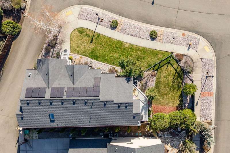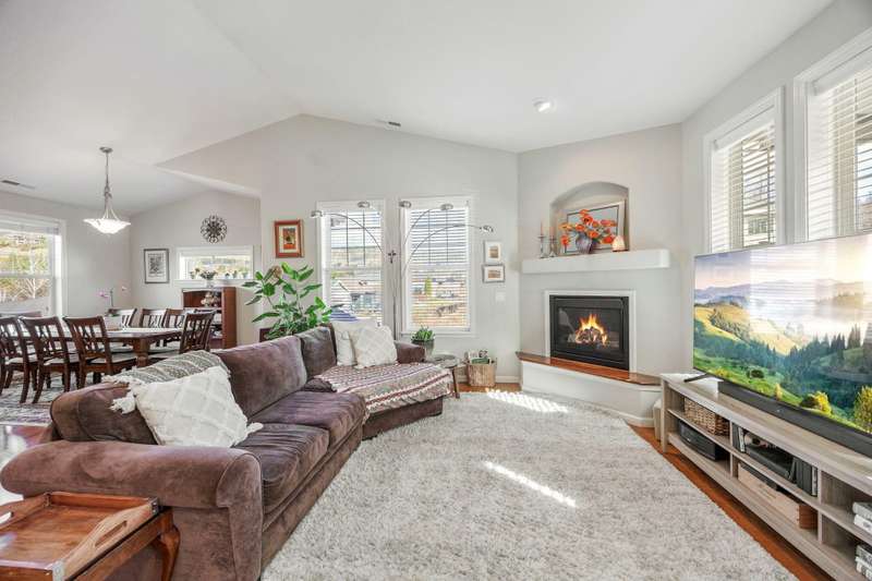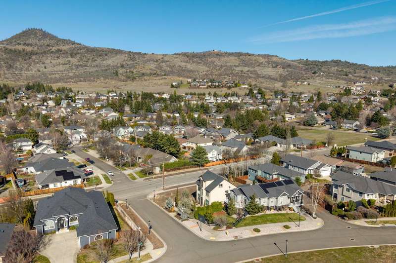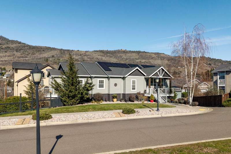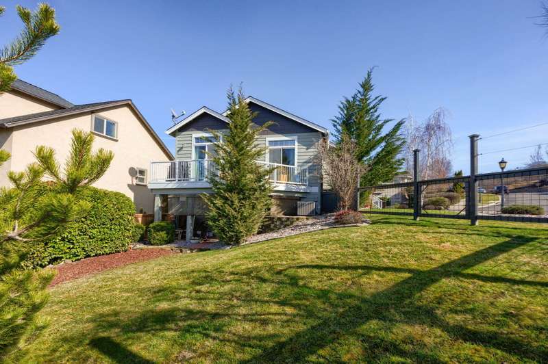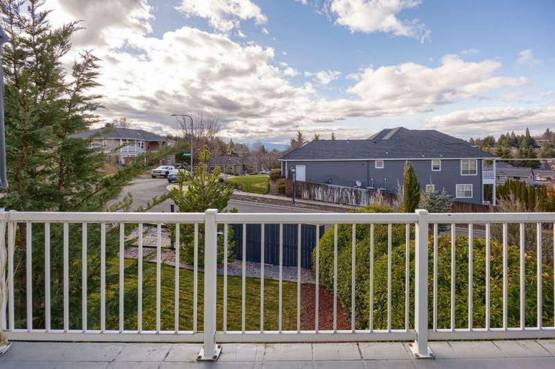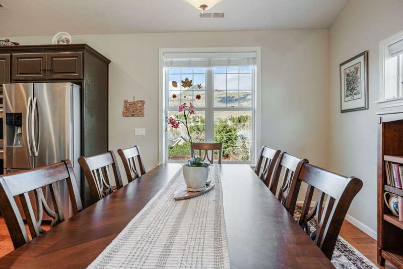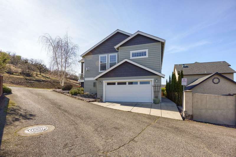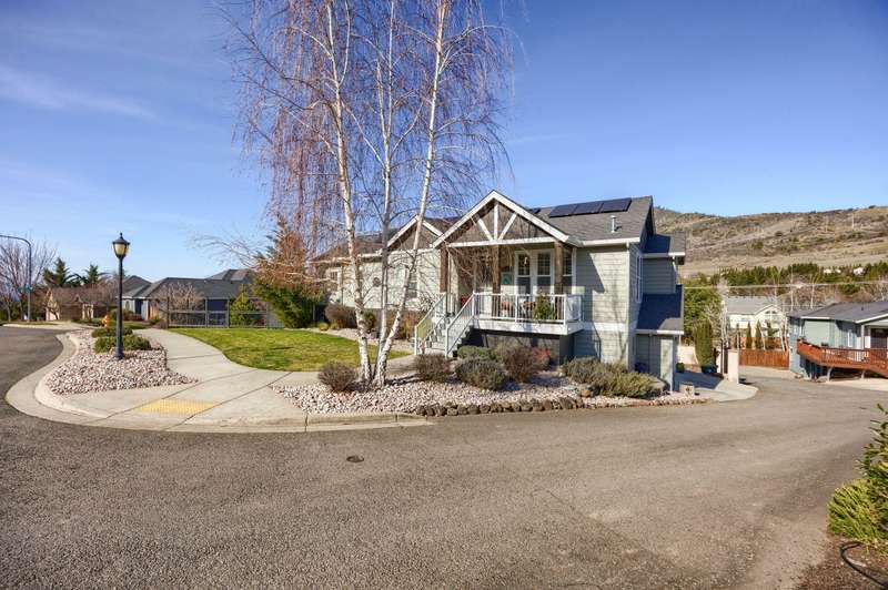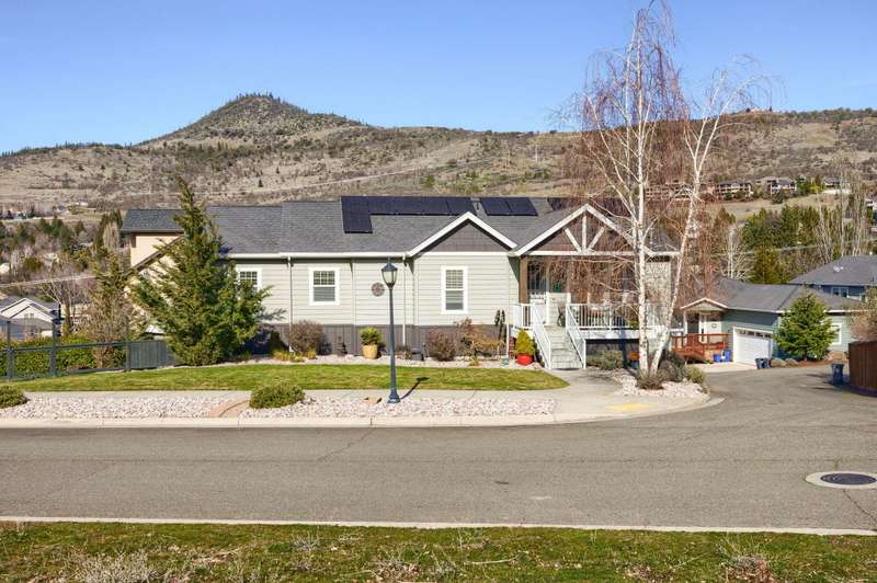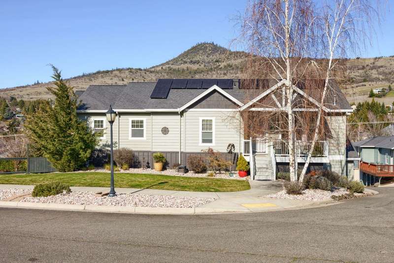 Desirable neighborhood, great view home, close to Roxyann, hiking and biking. Could be 2 family set up. 3 bedrooms, 3 bath 2365 sq ft. Main level has a great room, with a fireplace, dining room, kitchen with views, primary suite, laundry rm and flexible office/living space. Kitchen is open to dining and great room, with granite countertops, stainless appliances, double ovens, walk in pantry. Primary suites boast views, balcony, walk-in closet, bath has dual vanity, custom tile shower and soaking tub. Downstairs is 2 spacious bedrooms and bathroom with tile shower. This home has hardwood floors and carpet, lots of storage throughout, and low maintenance fenced yar. Also, solar panels reduce electric bill. Large separate storage area off the 2 car garage.