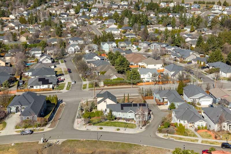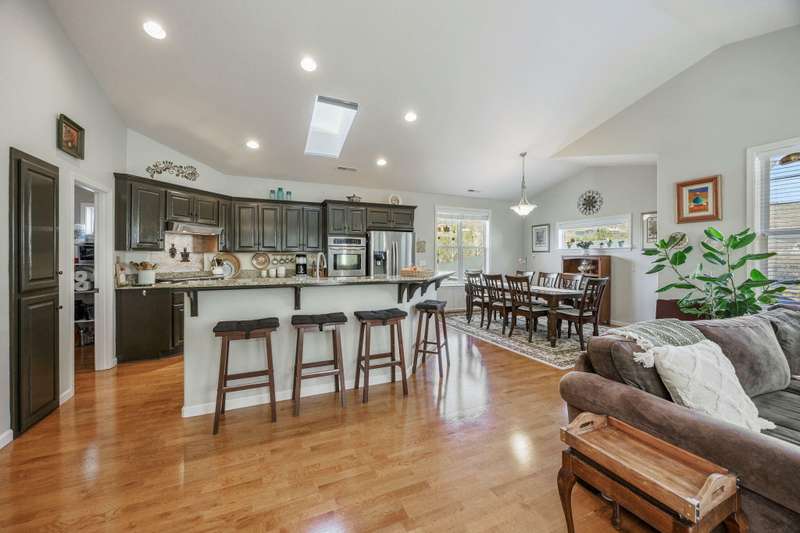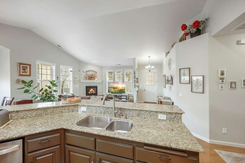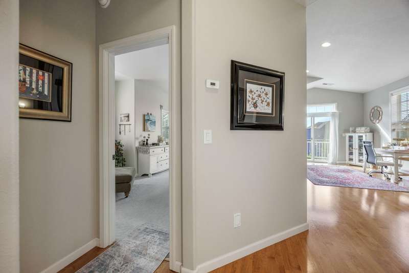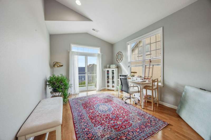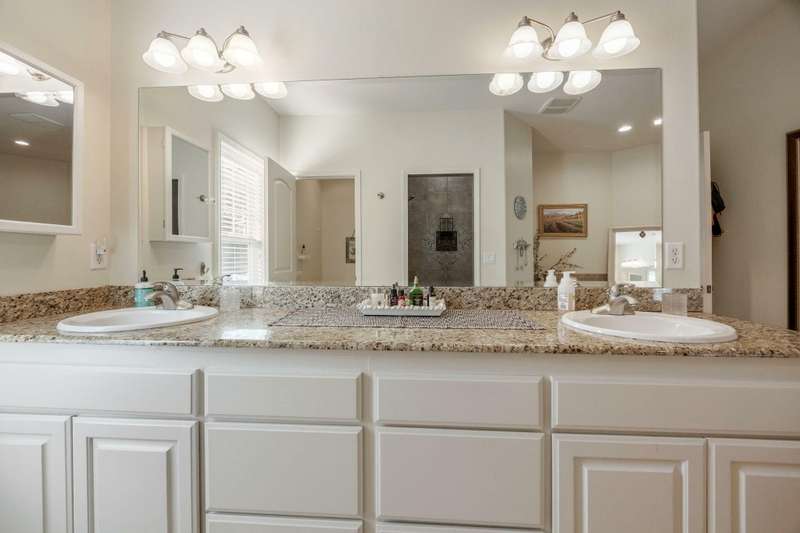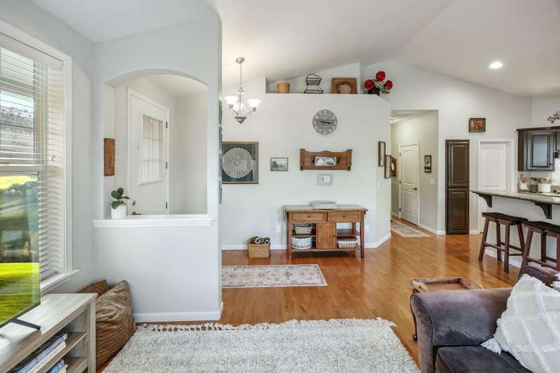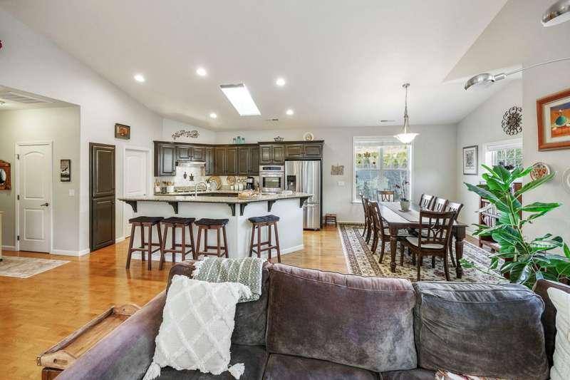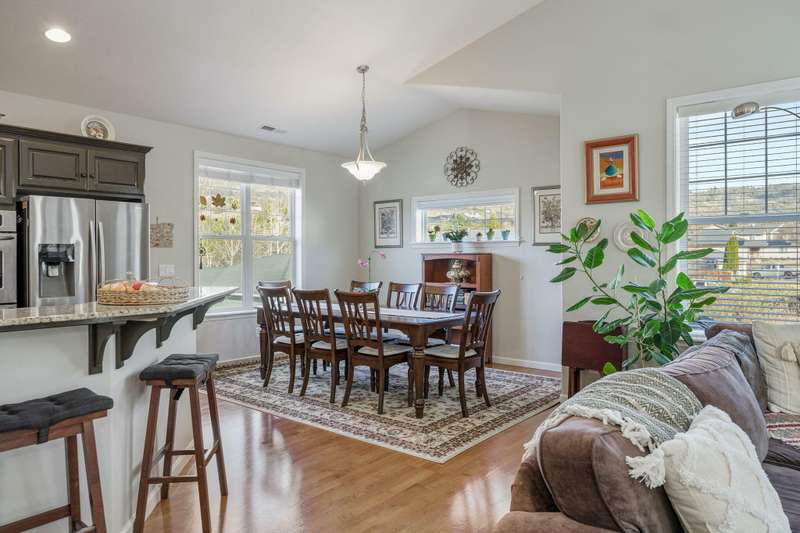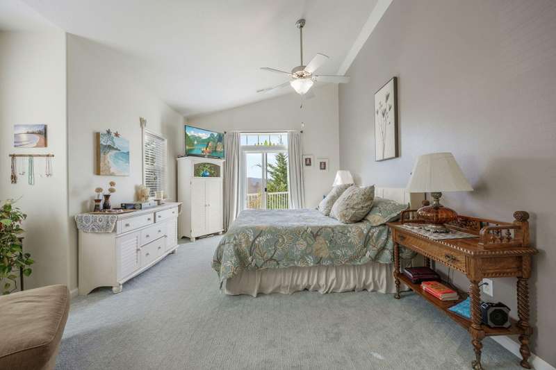 Desirable neighborhood, great view home, close to Roxyann, hiking and biking. Could be 2 family set up. 3 bedrooms, 3 bath 2365 sq ft. Main level has a great room, with a fireplace, dining room, kitchen with views, primary suite, laundry rm and flexible office/living space. Kitchen is open to dining and great room, with granite countertops, stainless appliances, double ovens, walk in pantry. Primary suites boast views, balcony, walk-in closet, bath has dual vanity, custom tile shower and soaking tub. Downstairs is 2 spacious bedrooms and bathroom with tile shower. This home has hardwood floors and carpet, lots of storage throughout, and low maintenance fenced yar. Also, solar panels reduce electric bill. Large separate storage area off the 2 car garage.