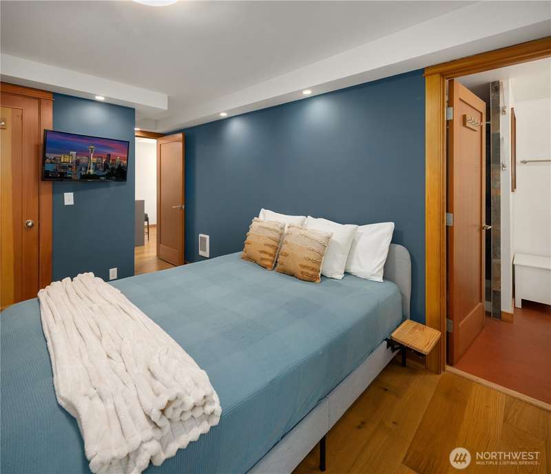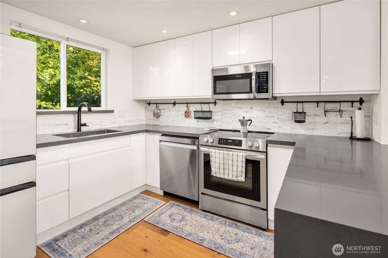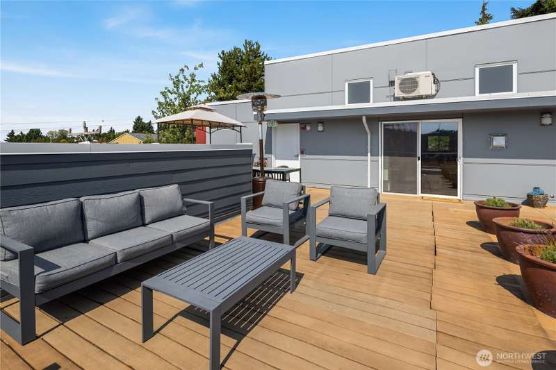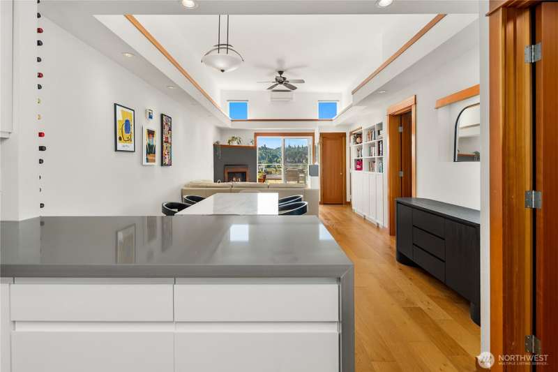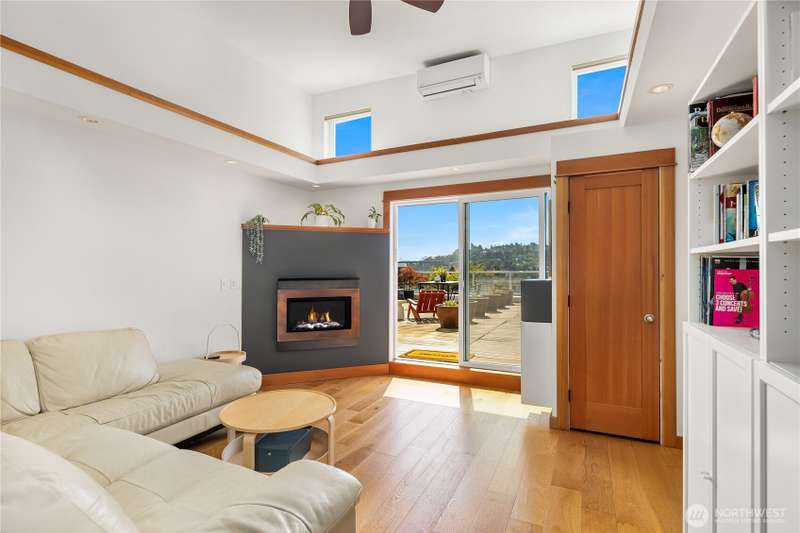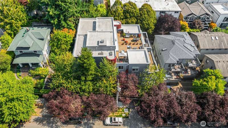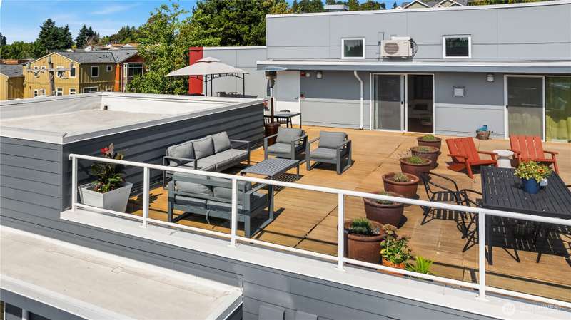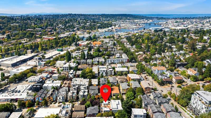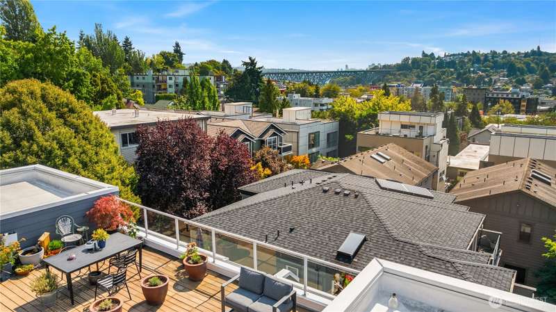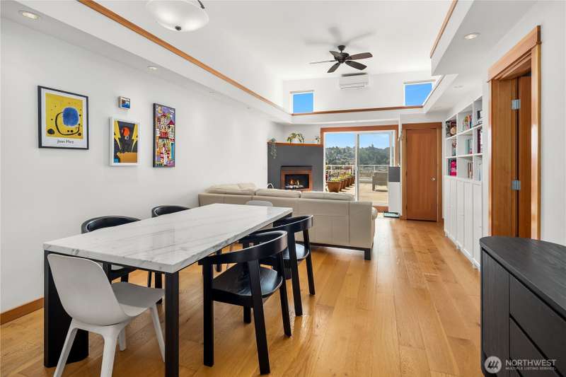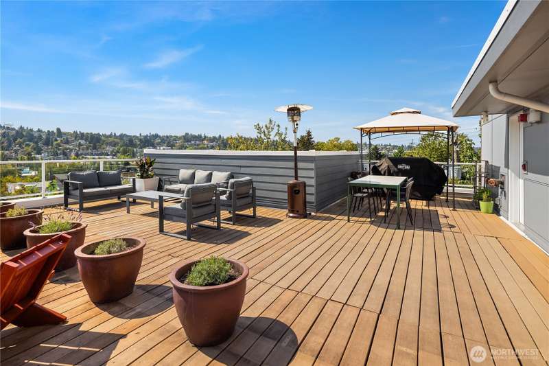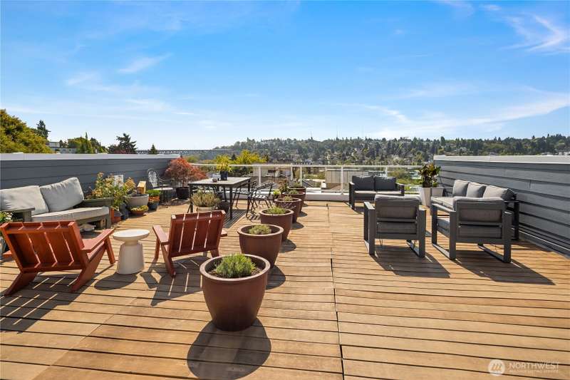 Live above it all in the heart of Fremont. This stylish penthouse features an expansive outdoor terrace and more than $60,000 in recent updates, including a remodeled kitchen, new flooring, and custom closet buildouts. Step off the elevator into a light-filled home where sweeping views of Mt. Rainier and the Olympics set the stage for sunny afternoons or memorable July 4th fireworks celebrations. Secure garage with tandem parking for two cars, EV charging & storage unit! Major building improvements, including new siding, windows, and exterior sliding doors. Blocks from coffee shops, restaurants, shopping, Lake Union, Burke Gilman Trail, Google/Evo/Brooks & more. This rare penthouse combines modern luxury with an unbeatable location.