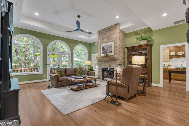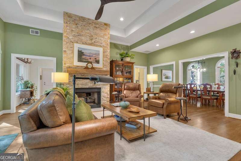 Open House Saturday, Oct. 11th 11-1 and Sunday, Oct. 12th 1-3. Nestled on a serene, one-acre park-like lot, this completely updated three-sided brick ranch offers the perfect combination of classic charm and high-end modern upgrades. This spacious home features 3 bedrooms and 2.5 bathrooms on the main floor, plus a large bonus room upstairs-perfect for a home office, media room, or potential 4th bedroom. Enjoy peaceful mornings on the rocking chair front porch, surrounded by professional landscaping and nature views. Inside, you'll find a thoughtfully designed open floor plan with Red Oak hardwood floors throughout, a large dining room, and a stunning great room featuring a floor-to-ceiling stone fireplace with granite hearth and vintage oak barn beam mantel. The designer kitchen is a showstopper with custom maple cabinetry and high-end stainless steel appliances. The luxurious primary suite includes a spa-inspired bathroom and private deck access. Every detail has been curated-from solid wood doors and custom designer lighting to Pella windows, a newer 35-year copper-infused roof and newer Lenox HVAC. Located in the award-winning Whitewater school district and just minutes from shopping and dining, this home offers timeless style and exceptional quality.