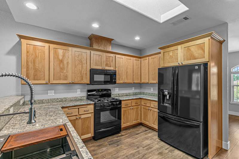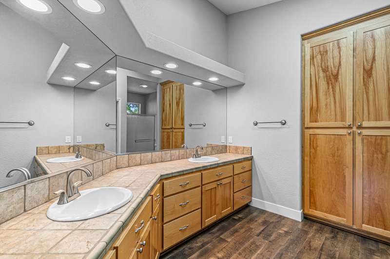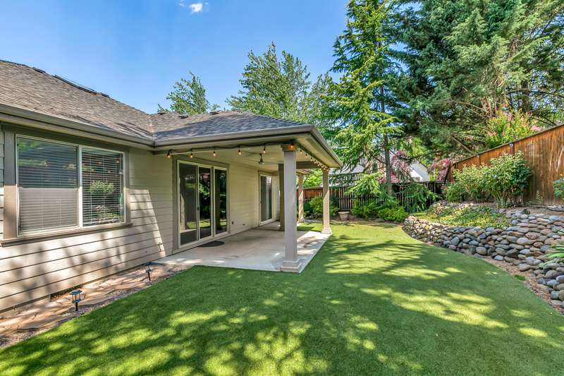 Beautifully maintained single-level home located on the corner lot of a cul-de-sac within the Lone Pine school district. Step inside through the covered front porch and gallery style entryway into the first living area, where you can enjoy sunset views of Roxy Ann while cozied up next to your gas fireplace. The kitchen has granite countertops, a stainless-steel chef's sink and updated Kenmore elite appliances. Enjoy meals at the breakfast bar, or in the formal dining room. The main living room offers another gas fireplace as well as a 65'' Samsung picture frame television. Access the backyard through sliding glass doors in the living room or primary bedroom. The yard is low maintenance, with synthetic lawn and a sprinkler system for the established landscaping. It is fully fenced and private. The large, covered patio has hookups for a gas BBQ, string lights and ceiling fans- perfect for entertaining!