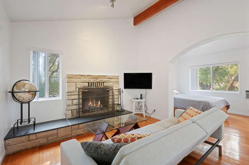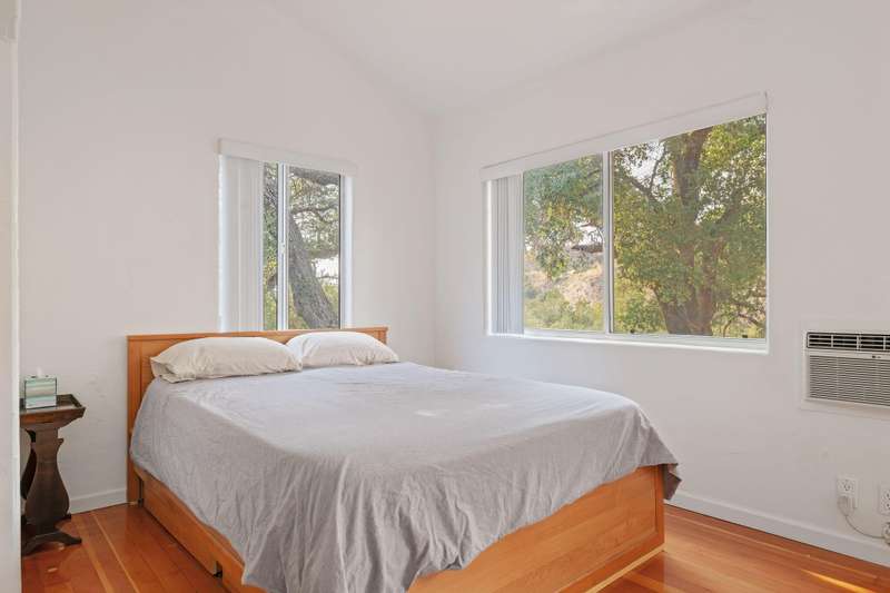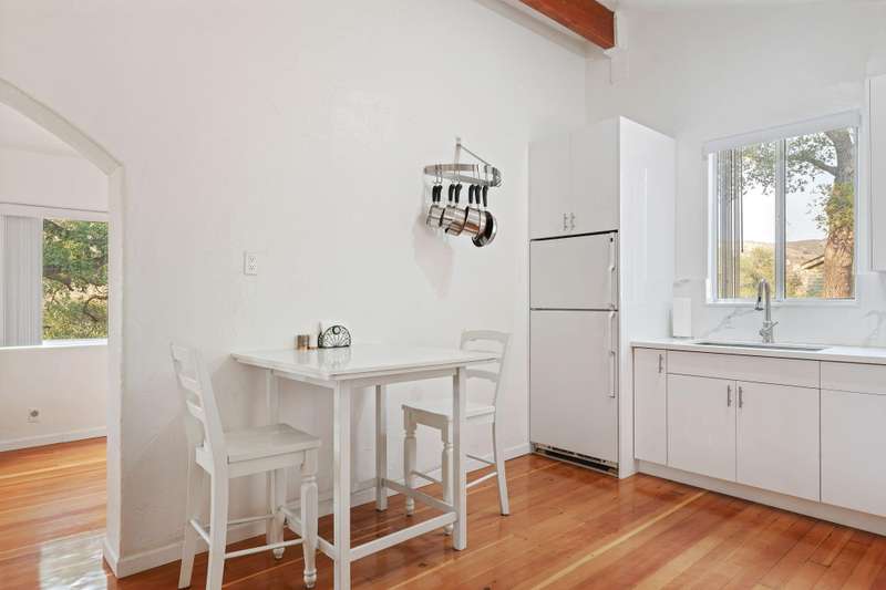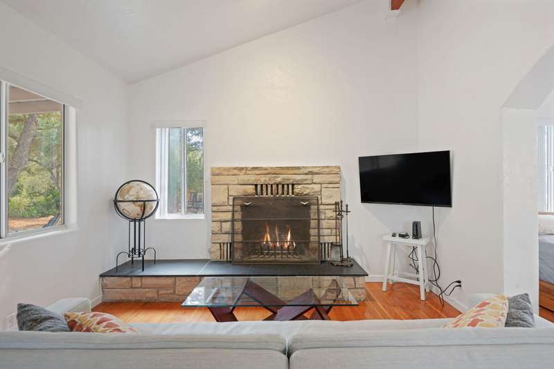Perched on the brow of a hill and shaded by graceful oaks, this inviting cabin offers a peaceful escape with scenic views of the Santa Ynez River valley. The home features vaulted ceilings, a striking stone fireplace, warm wood flooring, and a modern kitchen and bath blending rustic charm with comfortable updates.