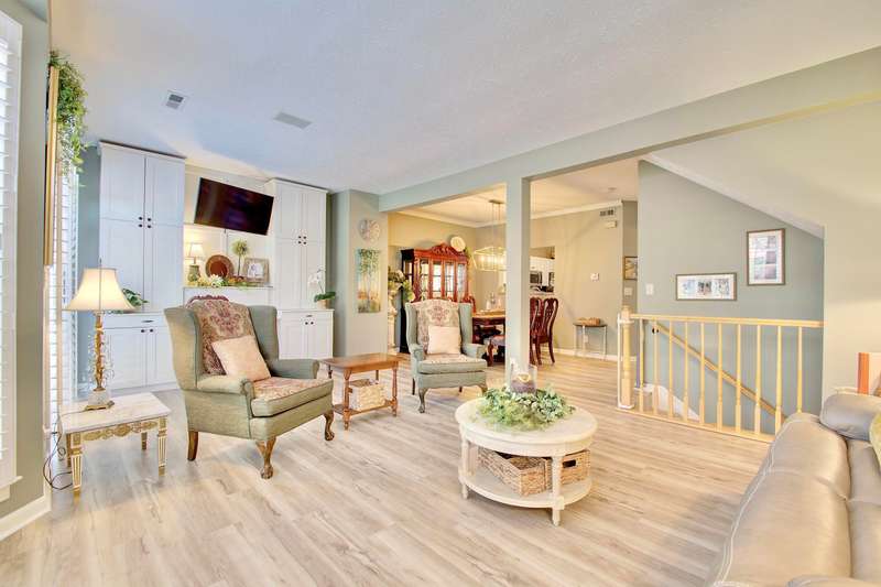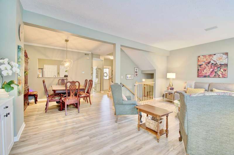This is the townhome you've been waiting for! This spacious townhome offers approx. 2,500 sq.ft. of light drenched living space. You'll love the large outdoor living & entertaining areas from the huge deck & lower level patio. There's a large & flat yard too! The mature trees provide privacy and serene views year round. Features Include: 3 bedrooms * 2 full & 2 half baths * updated kitchen w/granite, SS appliances & pantry * new LVP flooring on 1st level & primary bedroom suite * plantation shutters adds to the charm of the living & dining rooms & primary bdrm * custom built-in cabinets w/desk in the living room * lower level family room w/wet bar, walk-out to patio, half bath & laundry room * attached 1-car garage * plenty of guest parking * awesome pool, clubhouse & pond. Convenient location to restaurants, shopping & interstate. Beautiful & lush landscaping throughout this friendly community.