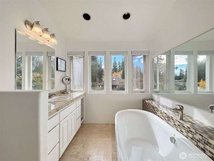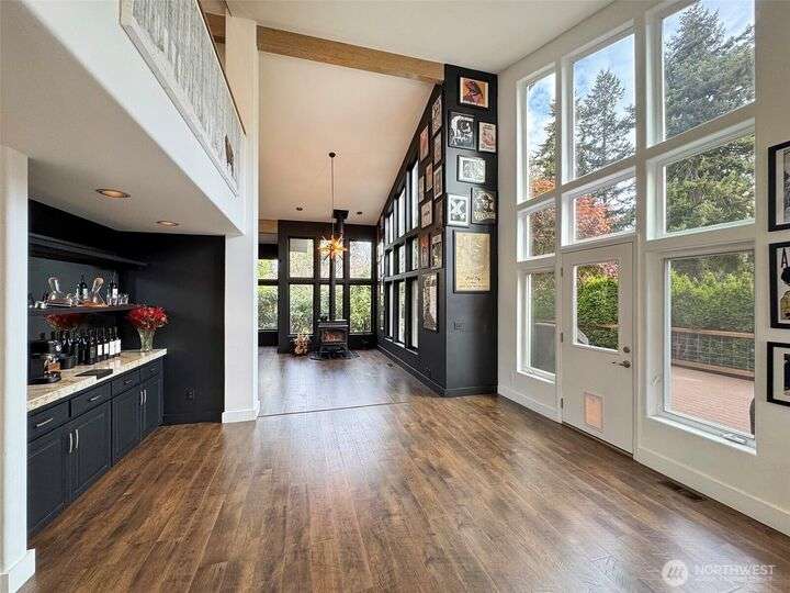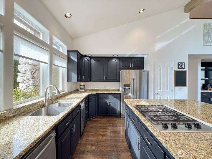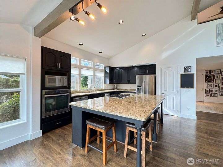 Meticulously remodeled and maintained. As soon as you step inside, you will notice how warm, welcoming, & luxurious this home feels. From the exquisite marbled entryway, to the huge 26' high vaulted great room with warm wood stove and huge floor to ceiling windows. Enjoy the open concept chef's kitchen with it's 63x98 quartz center island and updated appliances. New engineered hardwood floors throughout, new H2O heater, new exterior/interior paint. Low maintenance fenced yard that feels immensely private. Ideally located overlooking the 4th & 8th green, within walking distance to the pool and clubhouse. This property offers multiple efficient storage areas, an oversized 3 car garage, bonus rooms for crafts, hobbies, or office spaces.