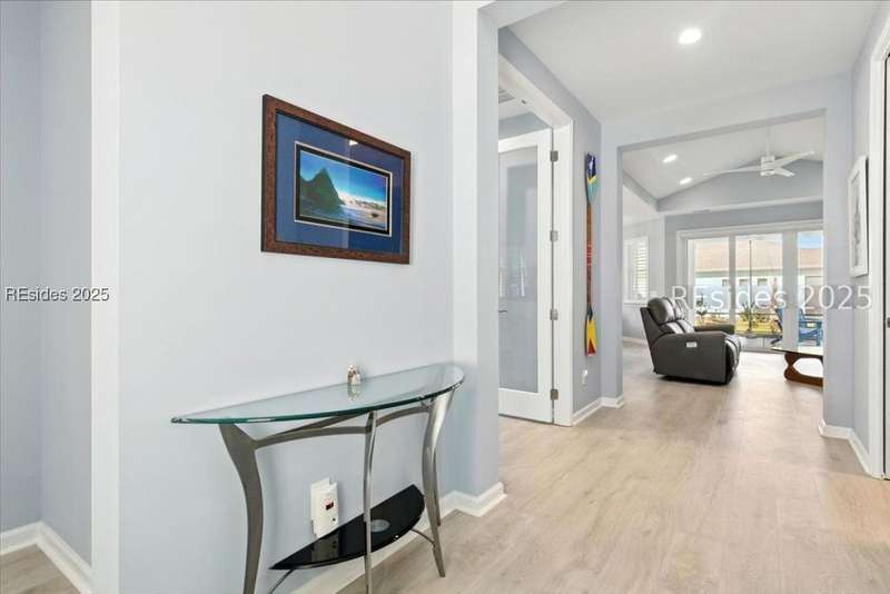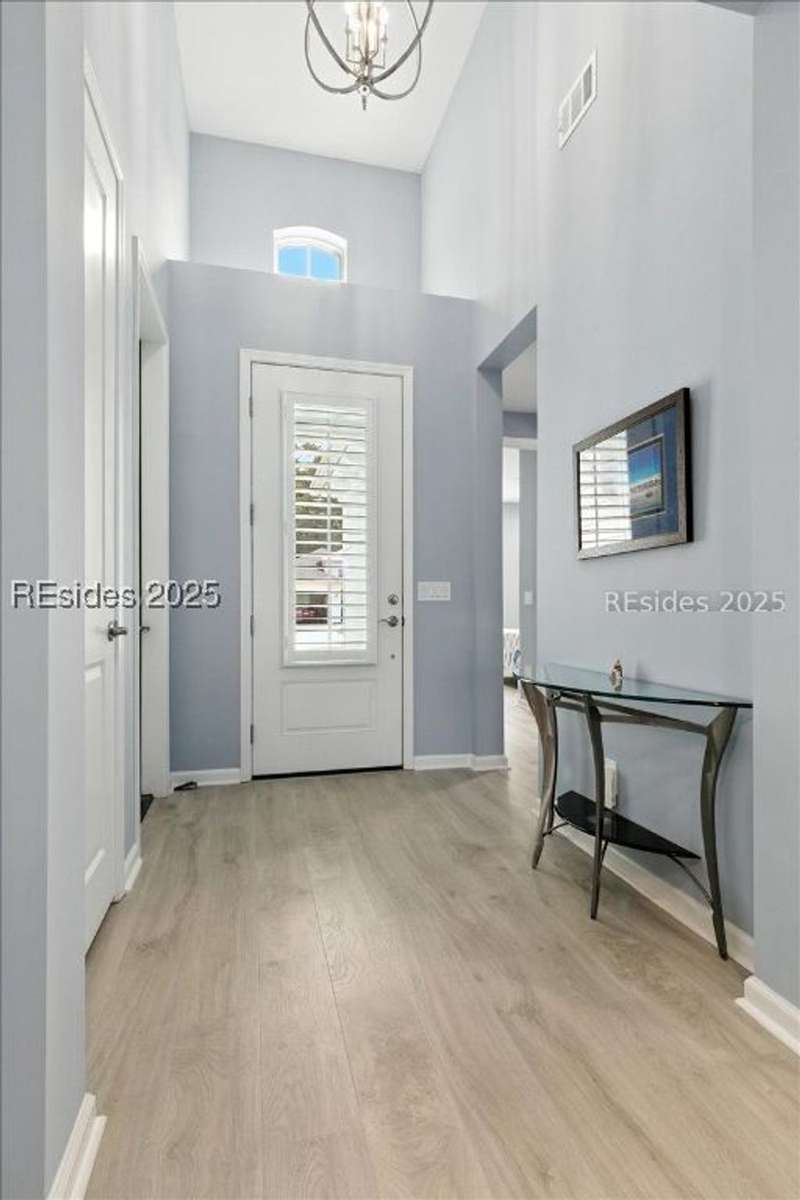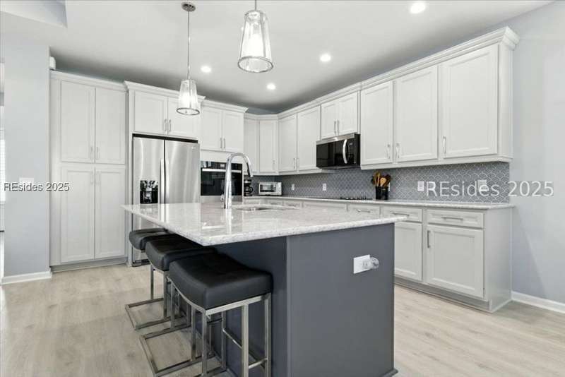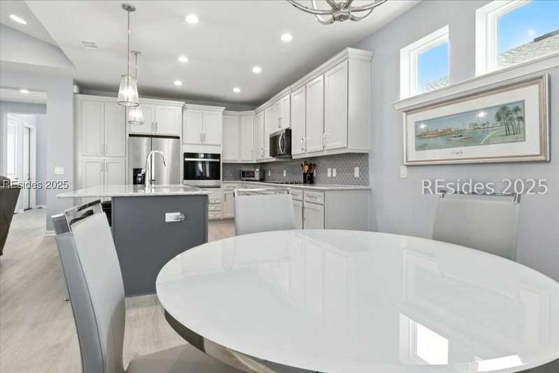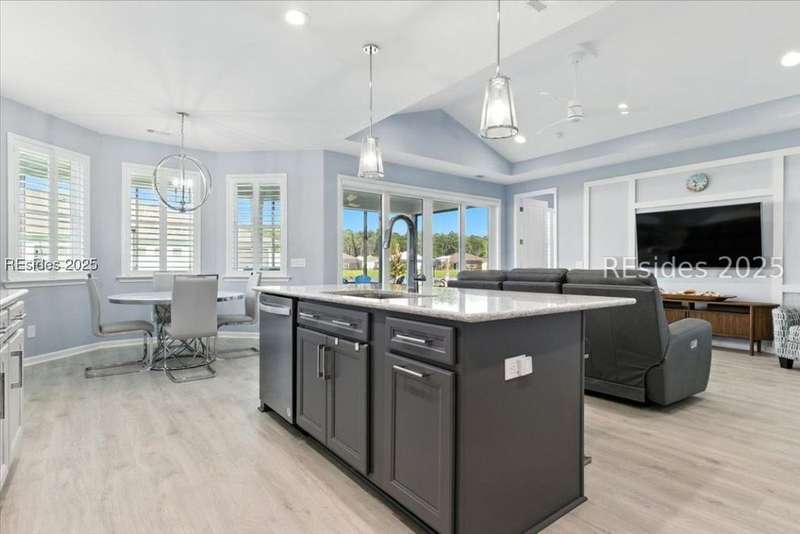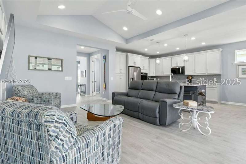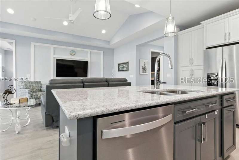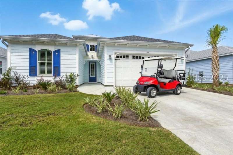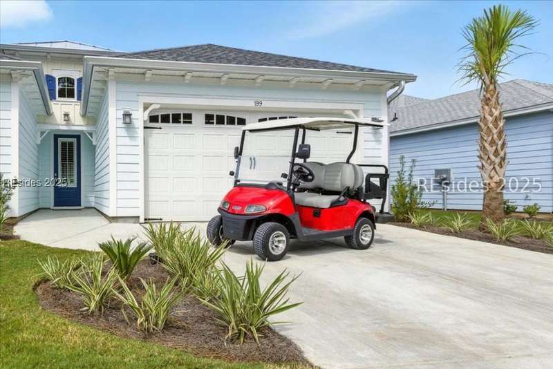 2025 Nearly Brand New Margaritaville "Coconut" model! This fresh, well appointed single family home has many upgrades you will appreciate! Luxe kitchen with 42" cabinets, stylish backsplash, quartz countertops, island, wall oven/cooktop! 8' tall doors throughout! Tile baths, XXL master shower. Recessed lights! Birdcage extension with sliding glass doors, plantation shutters, double glass doors to the den, laundry cabinetry! Refrigerator included! Very cool garage ATTIC LIFT to assist with storage. A HIGH END hot tub and HIGH END quality golf cart...AVAILABLE to purchase !