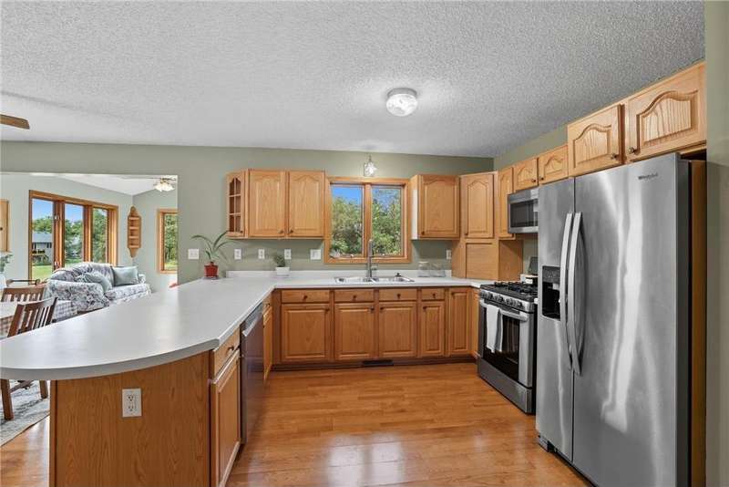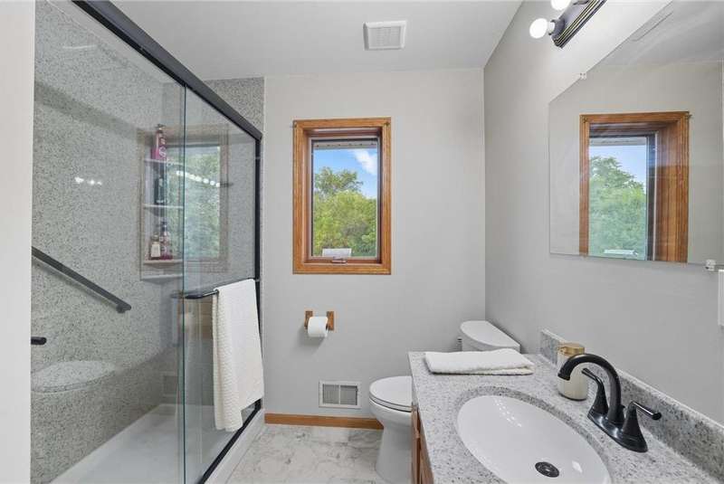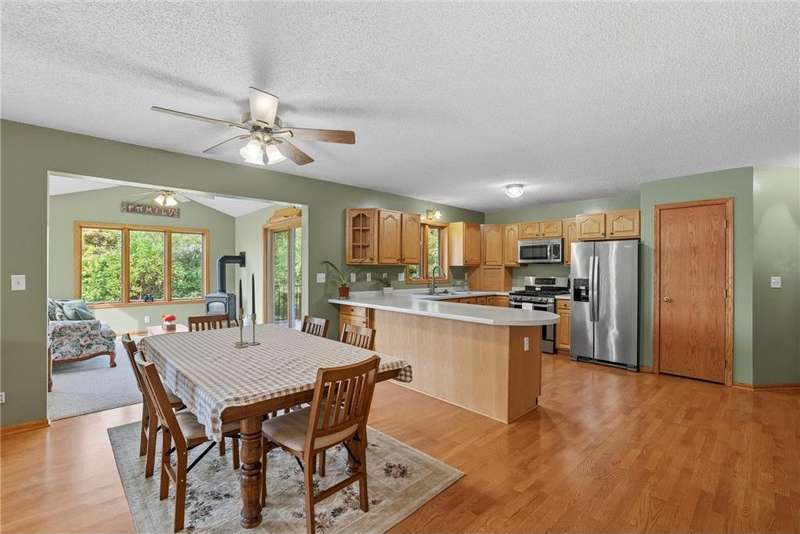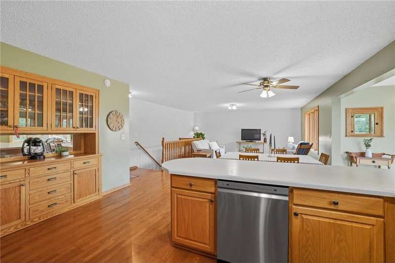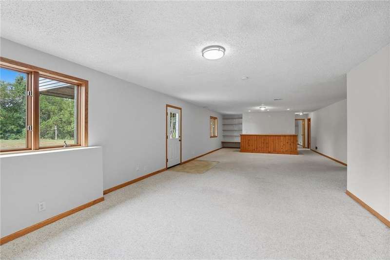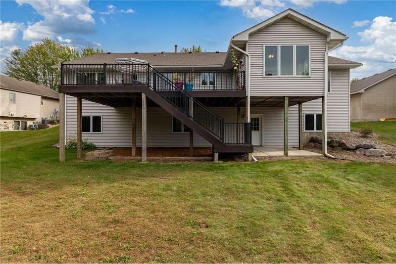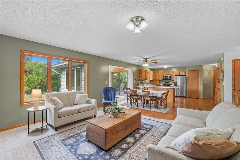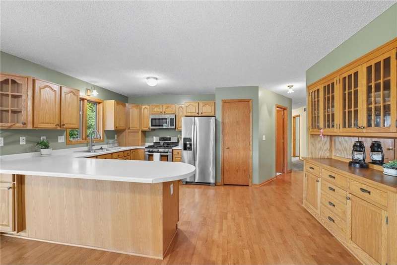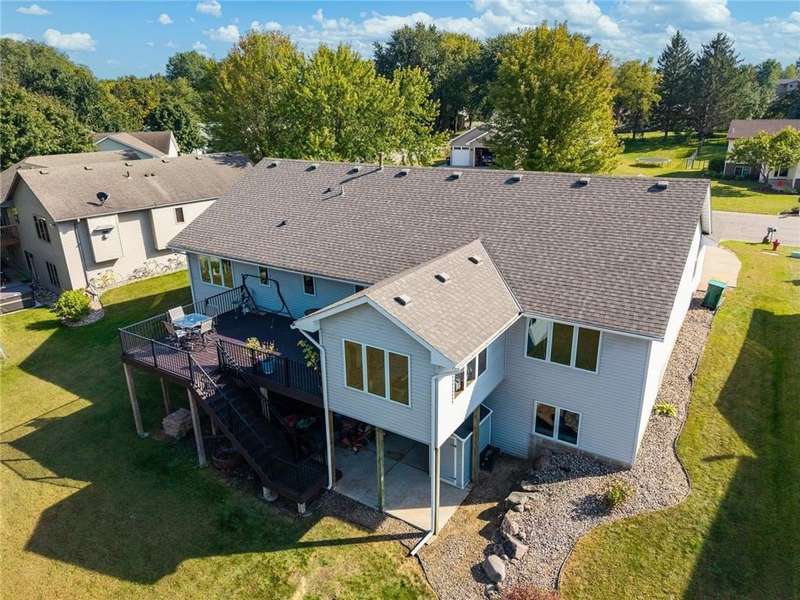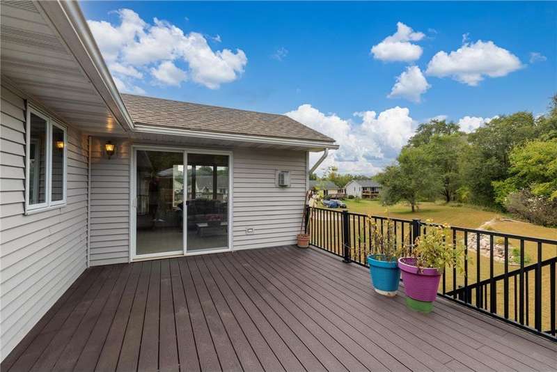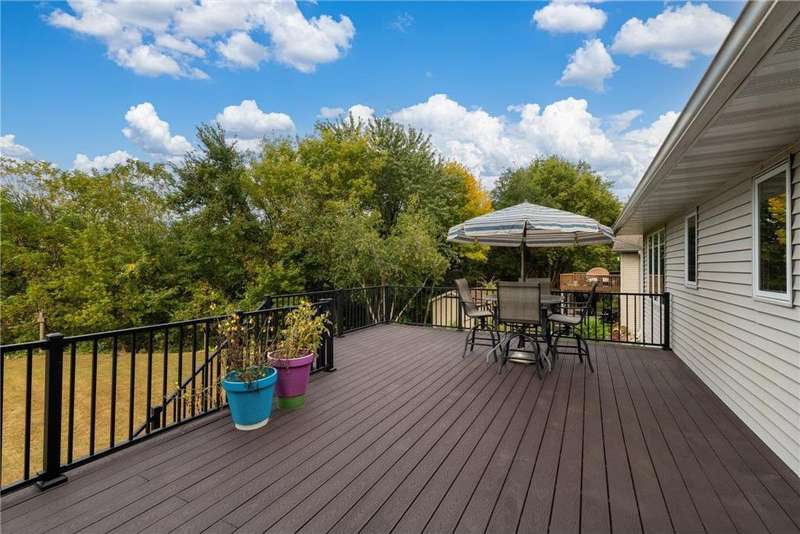 Clean, one-owner walkout rambler with four-season porch that backs up to 30-acres of wooded park land. Enjoy 3 main-level bedrooms including a private primary suite, full laundry room next to the bedrooms, extra flex room for office or formal dining use, an open kitchen with pantry and built-in buffet, huge living room, lovely four-season porch with a gas fireplace, and an expansive 14'x28' composite deck new in 2016. The walkout lower level features a massive family room and recreation room, an additional bedroom and bathroom, and two storage rooms, plus a concrete patio under the porch. Additional highlights include master bath remodel in 2024, updated flooring and water softener 2024, kitchen appliances 2019, new furnace and roof in 2018, & central vac system. The two-car attached garage is 28' deep! The back of the home offers 560 sq ft of covered space below the porch and deck. A lot of home for the money. Schedule a tour today!