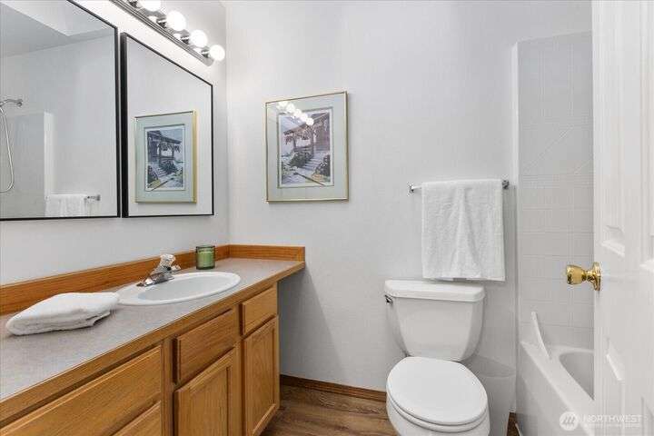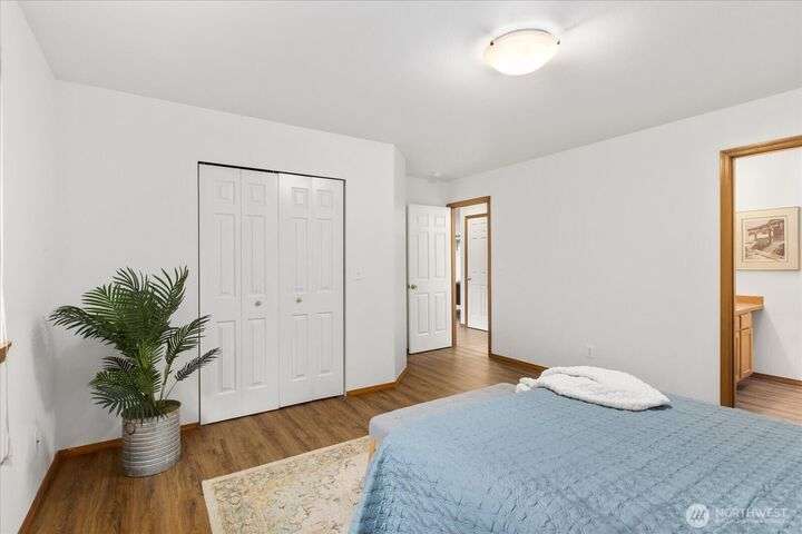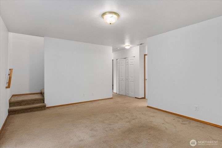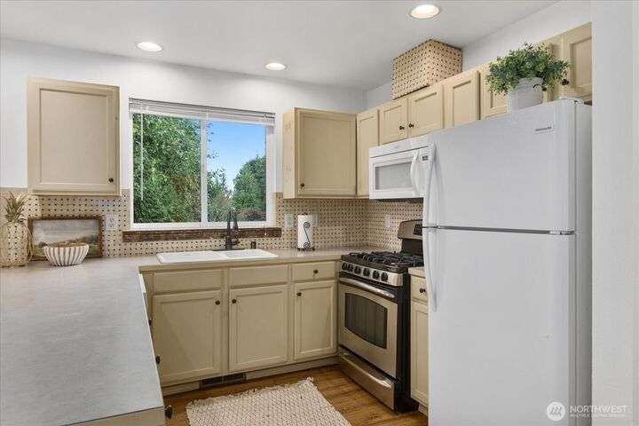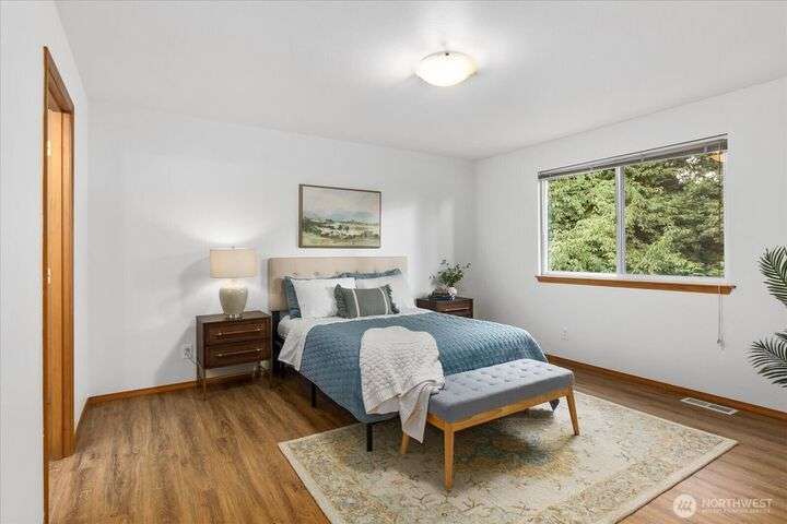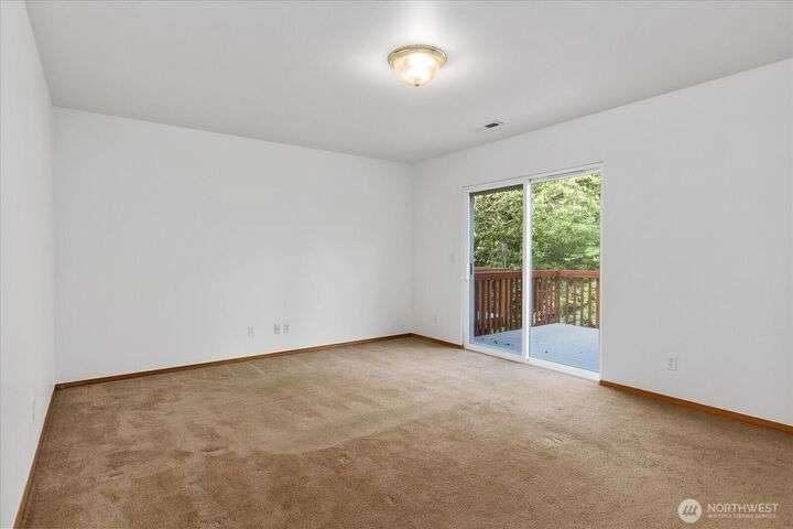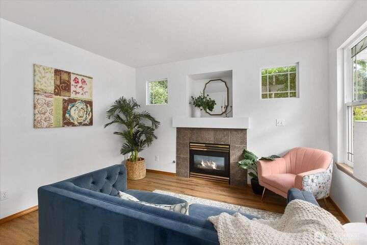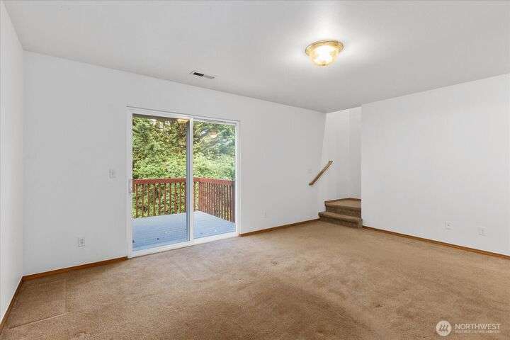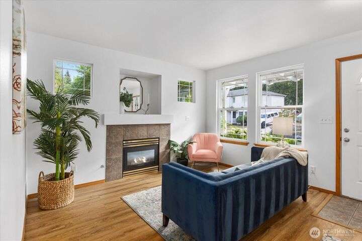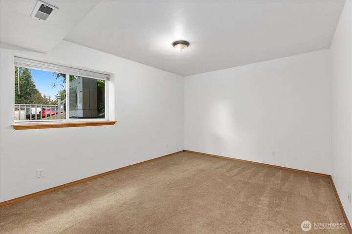 Super cute 1 story home with a large basement. 1st floor features, living room with a gas fireplace, a spacious kitchen & dining space (gas cooking!) a 1/2 bath and a very large primary bedroom, full bath and a large walk in closet. The basement level has 2 large bedrooms and a large family/bonus room, laundry and full bath and a slider to the deck and back yard. Home backs to a lush and private greenbelt, lots of space for gardening. The house has CENTRAL AIR CONDITIONING and a new high efficiency gas furnace. Large 2 car garage. Tons of parking available. Walk to DT Lake Stevens, Norms or public access to the Lake. NO maintenance, all covered by HOA. Yard can be fenced for pets