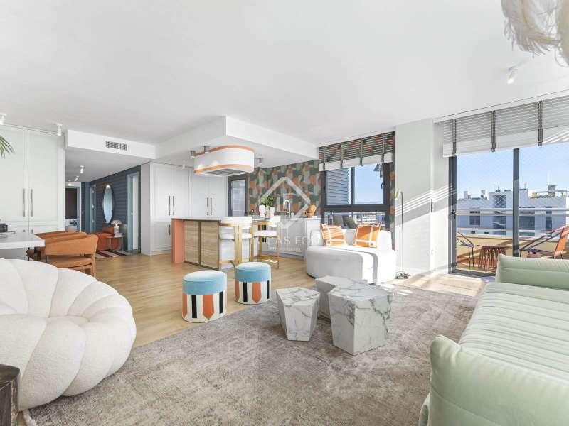 In the heart of Alicante's most sought-after neighbourhood, Pau 5, we find this newly renovated, 186-square-metre penthouse offering the perfect blend of luxury, comfort, and modern design. Originally a four-bedroom apartment, this elegant space now boasts three spacious bedrooms and two luxurious bathrooms, with the option to easily reinstate the fourth bedroom if desired. Each room exudes its own unique charm, telling a story through its meticulous design and top-quality finishes. The heart of the penthouse is its expansive open-plan kitchen and living area. The kitchen features a custom-made island, top-of-the-line appliances, and sleek, high-end finishes, creating a perfect space for cooking, entertaining, and unwinding. For added convenience, the penthouse includes two indoor parking spaces and a storage room, providing ample room for vehicles and extra belongings. Step outside and immerse yourself in the luxurious amenities of the development. Enjoy a refreshing swim in the pool, stay active in the state-of-the-art gym, or relax in the social room. For the sports enthusiasts, there are padel courts, basketball and football fields, and a playground for the little ones. There's even a dedicated playroom for children, ensuring a fun and safe environment for all ages. Location is everything, and this penthouse offers unparalleled convenience. Just a five-minute stroll brings you to the stunning San Juan Playa, where you can enjoy the sun, sea, and sand. The nearby tram station connects you to Alicante's vibrant city centre in just 20 minutes, while the airport is a mere 20-minute drive away. Please contact us for further information about this exceptional penthouse in Alicante's most desirable locations.