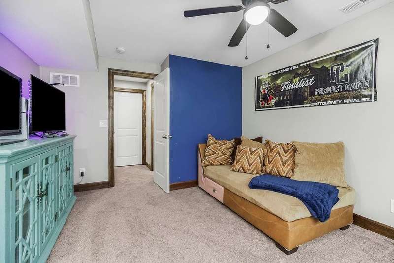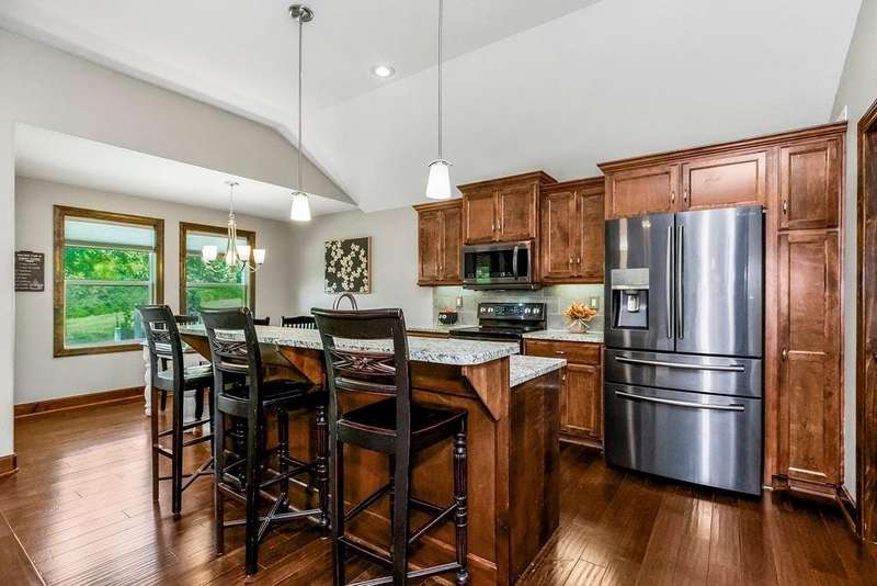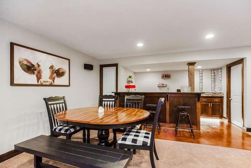 This beautiful ranch-style home boasts four spacious bedrooms, three bathrooms, and a three-car garage that backs onto a lush greenspace. The layout features three bedrooms on the upper level and one bedroom on the lower level. The open-concept kitchen features a large pantry and a spacious island that opens up to the inviting living room.The professionally finished basement includes an impressive workout space that can be converted into a fifth bedroom if desired. Additionally, there's a large finished family room with a wet bar, an office nook with built-in cabinets, and a screened-in porch and separate covered deck from the master bedroom.Don't miss out on this home with its ample storage and various extras. The custom-built-in cabinetry by local cabinetmaker Shamrock Cabinets is featured in several rooms, and all exterior walls are constructed using upgraded 2x6 construction.