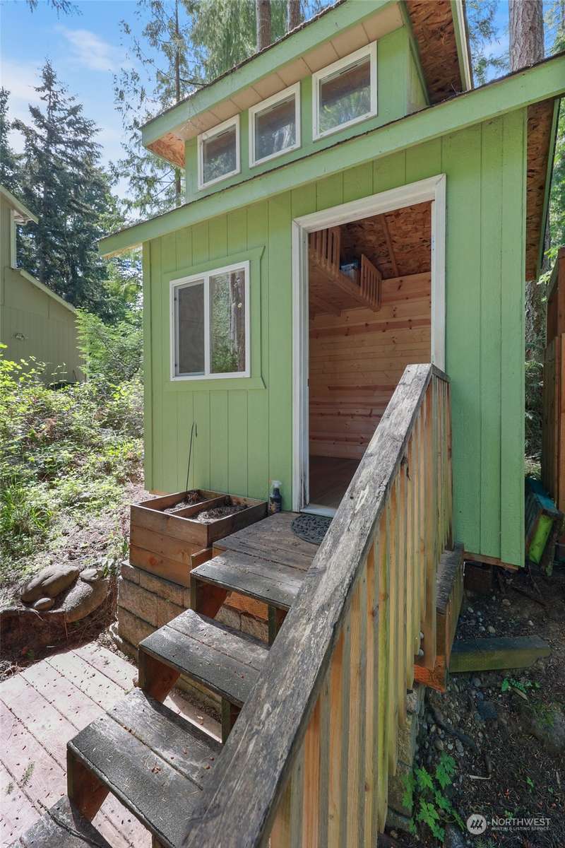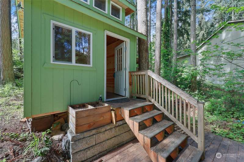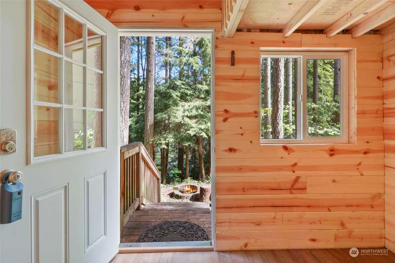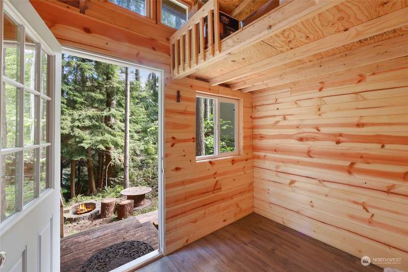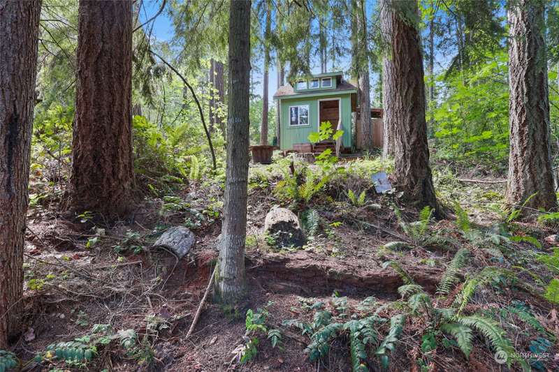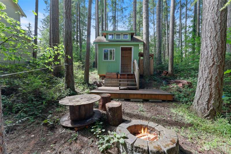 Waterfront Property! Discover this 2018 'Better Built' shed featuring insulated floors and walls, plus stylish vinyl plank flooring. Leveled area for RV parking with a little clearing. The property includes on-site water and an outdoor shower ready for easy recommissioning. Relax on the deck, gather around the fire pit, and launch your kayaks or paddleboards directly from your property. It's a short, convienent walk down the trail to community bathrooms on cul de sac of Bluewater Court. Explore miles of lakeside hiking trails, beaches, a community pool and hot tub, tennis and pickleball courts, playgrounds, and more. This is the perfect spot to enjoy now or to build your dream home w/ peaceful water views. Owner financing terms available.