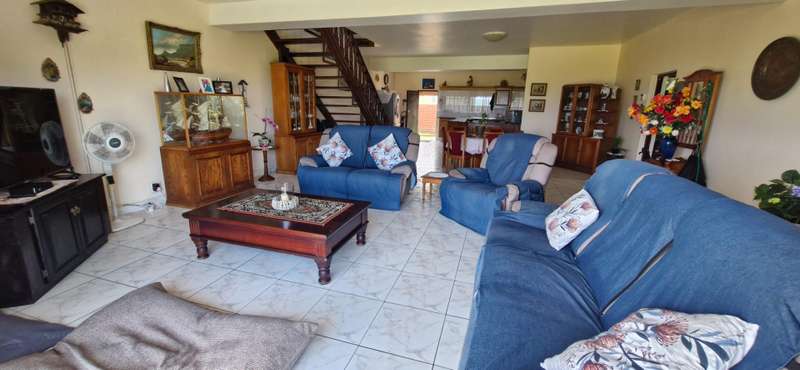 Wake up to breath taking views directly overlooking the white sandy beaches of Port Edward! This magnificent home is set a mere stone?ÇÖs throw away from famous and popular Granny?ÇÖs Pool and Spiros beach with direct access to the beach! The open plan kitchen and living area is definitely for family gatherings with Aluminium glass slide doors leading onto the patio creating a perfect flow. The living area has a featured wooden staircase leading to the upstairs area. The pool is strategically placed for privacy and fun! The downstairs area offers three bedrooms and two bathrooms, main en-suite with walk-in cupboard. Separate guest toilet. Upstairs there are a spacious open plan entertainment room and lounge area leading onto the balcony with built-in braai and lovely breaker views! Separate study area with bathroom and ample storage space. Extra features include Agricultural drainage around the house, Double laminated glass windows, direct access to the double garage with automated door, Aluminium window frames and doors, Separate Laundry, Walk-in pantry, Burglar Bars and Alarm System. Four water tanks connected to the main dwelling, plus an additional two water tanks for irrigation and pool. High quality invertor, batteries and solar panels. As close to the beach as you can get this property is situated on the south coast of KwaZulu-Natal, close to the Wild Coast near the Eastern Cape Province border and close to the Wild Coast Sun and Casino. This area offers outdoor living in the form of hiking trails and water sport from boating and fishing. Surrounded by renowned golf courses. A huge variety of bird life and small buck species can be observed as you make your way towards the warm Indian Ocean to un-spoilt beaches! The coastline between here and Port Shepstone to the north is popularly known as the Hibiscus Coast because of its lush sub-tropical vegetation! Encircled with a low maintenance garden, this home is a cut above the rest! Call today for an appointment to view.