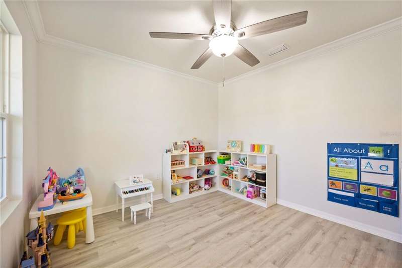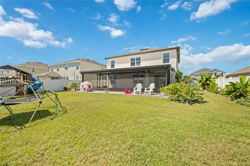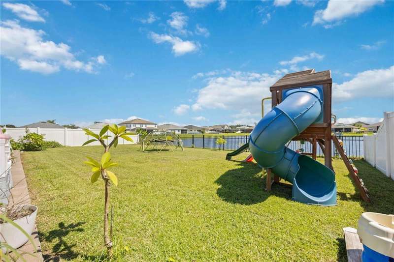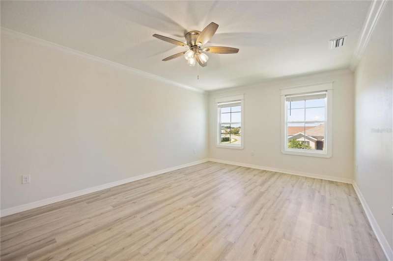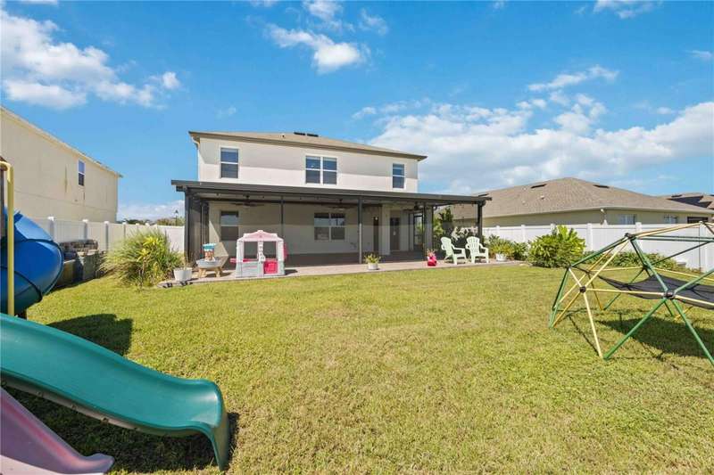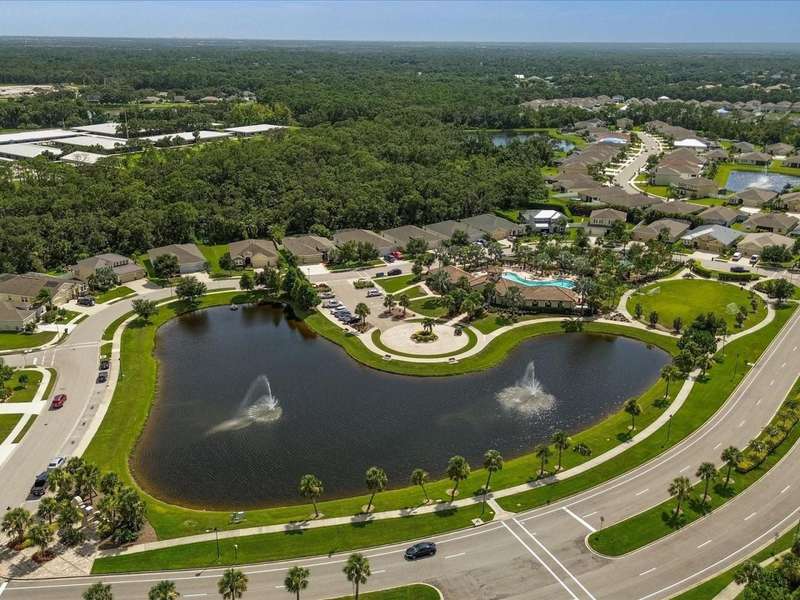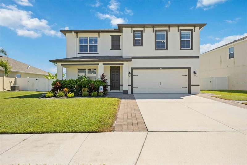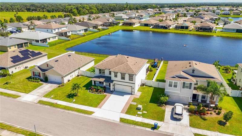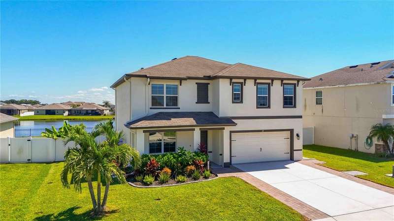 Welcome to your dream home in the peaceful, gated community of Del Tierra, offering NO CDD fees and LOW HOA! This stunning 5-bedroom, 3-bath home features a flex/game room, loft, and open-concept design, all set on a block-on-block construction with a beautiful fountain and large pond view. With over 2,590 sq. ft. of living space and a huge fully fenced backyard, this property is perfect for entertaining or simply relaxing. Enjoy your oversized covered lanai complete with three ceiling fans...while taking in breathtaking Florida sunrises. Recent Updates Include: Fresh interior and exterior paint. New kitchen cabinets and a newer dishwasher. New toilets and exhaust fans in all bathrooms. Hyper filter, and new coils for improved air quality. 30-amp breaker for generator hookup. Inside, you'll be welcomed with style! Crown molding on the first floor with luxury vinyl flooring throughout, NO CARPET, and a thoughtfully designed open kitchen featuring stainless steel appliances, granite countertops, a tile backsplash, and new cabinetry. A flex/game room sits just off the entry, while a guest bedroom and full bath provide convenience on the main level. Upstairs, the oversized master suite boasts dual vanities with granite countertops, a stand-up shower, and two separate walk-in closets. A great-sized laundry room is located on the second floor. Three additional bedrooms, a full bath, and a loft complete the second floor. Outside, you'll appreciate rain gutters, an extended paver driveway for extra parking, and a charming front covered porch, which is the perfect spot to unwind and enjoy spectacular sunsets. Reclaimed water Irrigation on the front and side of the home. Minutes to SR-64, I-75, and Ft. Hamer Bridge. Close to Gene Witt Elementary (bike ride away). Nearby shopping includes Costco and many more! Residents of Del Tierra enjoy access to a resort-style pool, fitness center, and gated entry, all while being surrounded by nature and tranquility. This home offers it all...stylish design, tasteful upgrades, and a prime location. Don't miss your chance to make it yours!