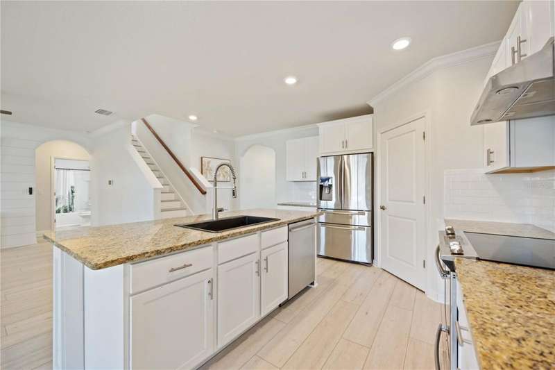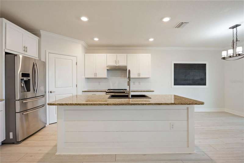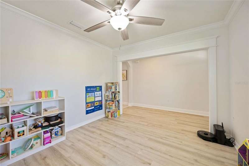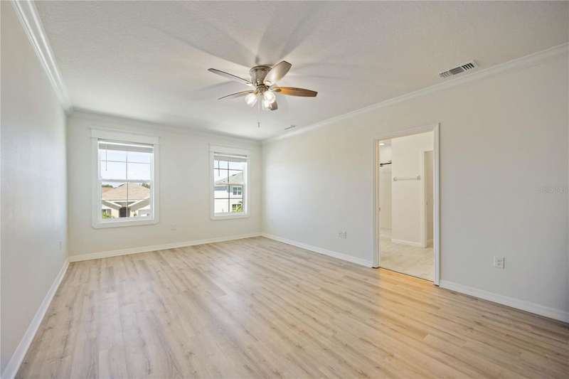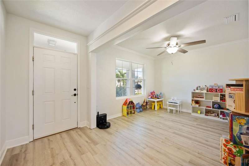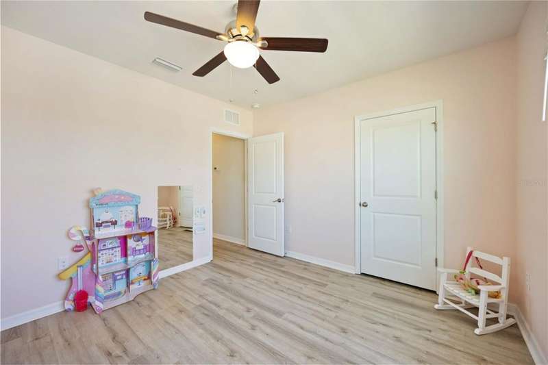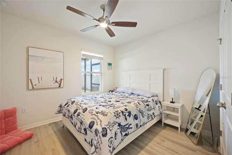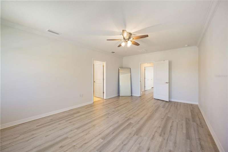 Welcome to your dream home in the peaceful, gated community of Del Tierra, offering NO CDD fees and LOW HOA! This stunning 5-bedroom, 3-bath home features a flex/game room, loft, and open-concept design, all set on a block-on-block construction with a beautiful fountain and large pond view. With over 2,590 sq. ft. of living space and a huge fully fenced backyard, this property is perfect for entertaining or simply relaxing. Enjoy your oversized covered lanai complete with three ceiling fans...while taking in breathtaking Florida sunrises. Recent Updates Include: Fresh interior and exterior paint. New kitchen cabinets and a newer dishwasher. New toilets and exhaust fans in all bathrooms. Hyper filter, and new coils for improved air quality. 30-amp breaker for generator hookup. Inside, you'll be welcomed with style! Crown molding on the first floor with luxury vinyl flooring throughout, NO CARPET, and a thoughtfully designed open kitchen featuring stainless steel appliances, granite countertops, a tile backsplash, and new cabinetry. A flex/game room sits just off the entry, while a guest bedroom and full bath provide convenience on the main level. Upstairs, the oversized master suite boasts dual vanities with granite countertops, a stand-up shower, and two separate walk-in closets. A great-sized laundry room is located on the second floor. Three additional bedrooms, a full bath, and a loft complete the second floor. Outside, you'll appreciate rain gutters, an extended paver driveway for extra parking, and a charming front covered porch, which is the perfect spot to unwind and enjoy spectacular sunsets. Reclaimed water Irrigation on the front and side of the home. Minutes to SR-64, I-75, and Ft. Hamer Bridge. Close to Gene Witt Elementary (bike ride away). Nearby shopping includes Costco and many more! Residents of Del Tierra enjoy access to a resort-style pool, fitness center, and gated entry, all while being surrounded by nature and tranquility. This home offers it all...stylish design, tasteful upgrades, and a prime location. Don't miss your chance to make it yours!