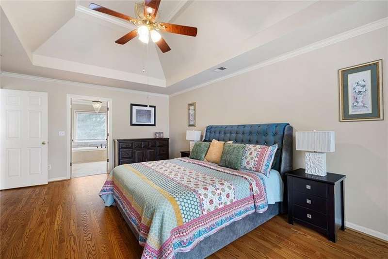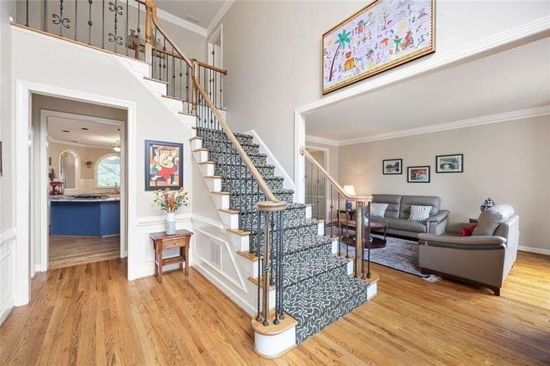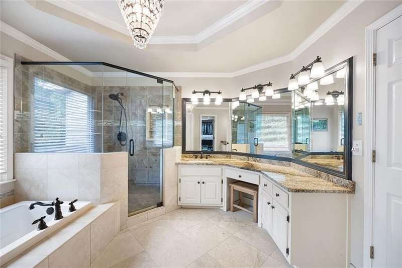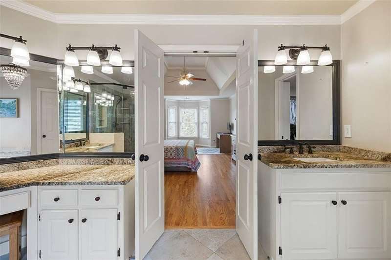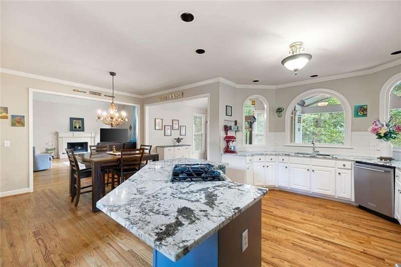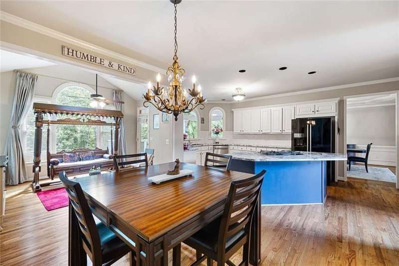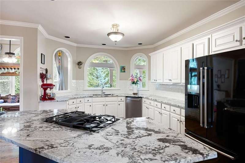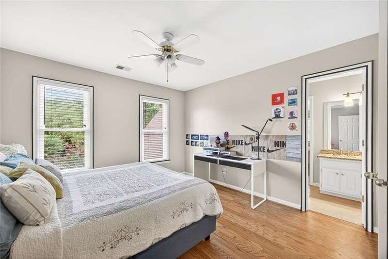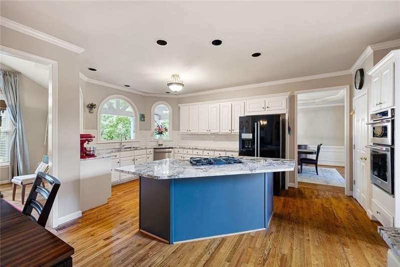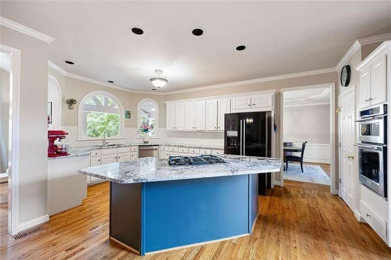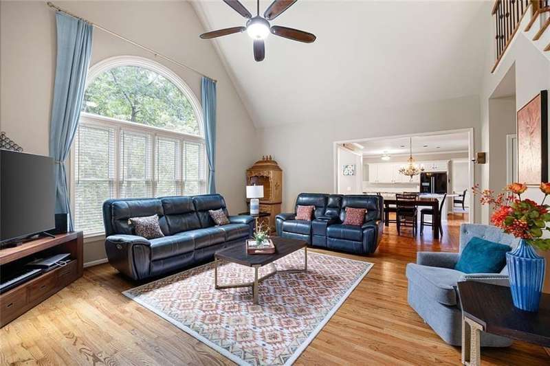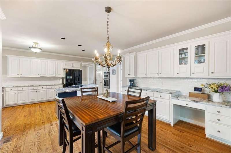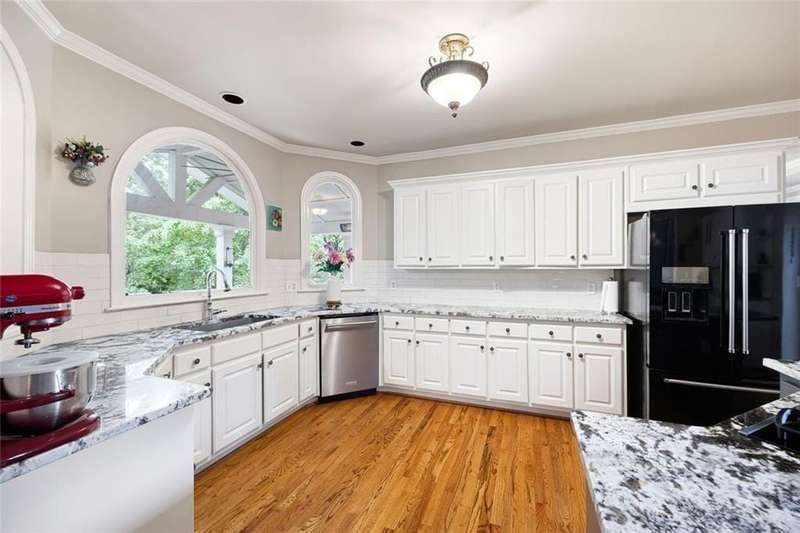 Welcome to this beautifully maintained home where thoughtful design, spacious living, and timeless style come together. The open-concept floor plan is ideal for everyday living and effortless entertaining. A dramatic two-story foyer opens to the inviting living room and formal dining room, creating a seamless flow for gatherings. French doors lead to a stunning, year-round covered porch with built-in heaters and TV/cable connectionsperfect for watching the big game or relaxing in any season. The chefs kitchen impresses with granite countertops, designer backsplash, custom pantry, and premium KitchenAid stainless steel appliances. The breakfast area offers built-in cabinetry and a planning desk, while the adjacent keeping room provides the perfect spot to relax or entertain. The spacious family room boasts vaulted ceilings, one of two fireplaces, and views of the appealing fenced backyard with lush landscaping. A convenient guest bedroom and full bath on the main level provide an ideal space for visitors, a private office, or a quiet retreat. Upstairs, hardwood floors extend throughout the entire level, enhancing every room with warmth and style. The primary suite is a private haven with a spa-like bath and custom walk-in closet. Three additional bedrooms and updated baths offer comfort and flexibility for family or guests. The open terrace level includes a den with fireplace, gym, and recreation room, as well as additional unfinished spaces stubbed for a full bath and wet bar, allowing room to expand. A rare side-entry three-car garage completes the home, featuring custom cabinetry, epoxy floors, climate control, and insulated doors. Set within a desirable swim/tennis neighborhood with a community pool, tennis courts, and playgroundand served by the top-rated North Fulton school districtthis home combines exceptional quality, resort-style amenities, and an unbeatable location.