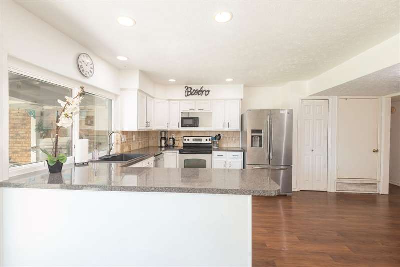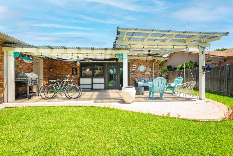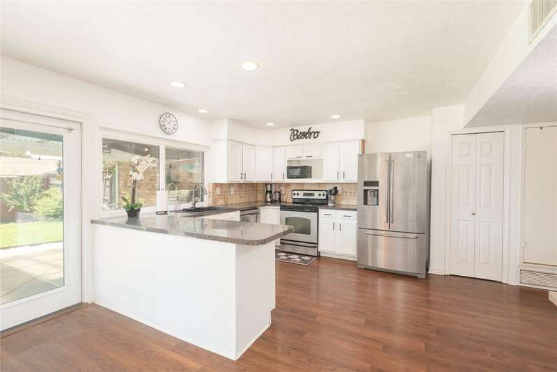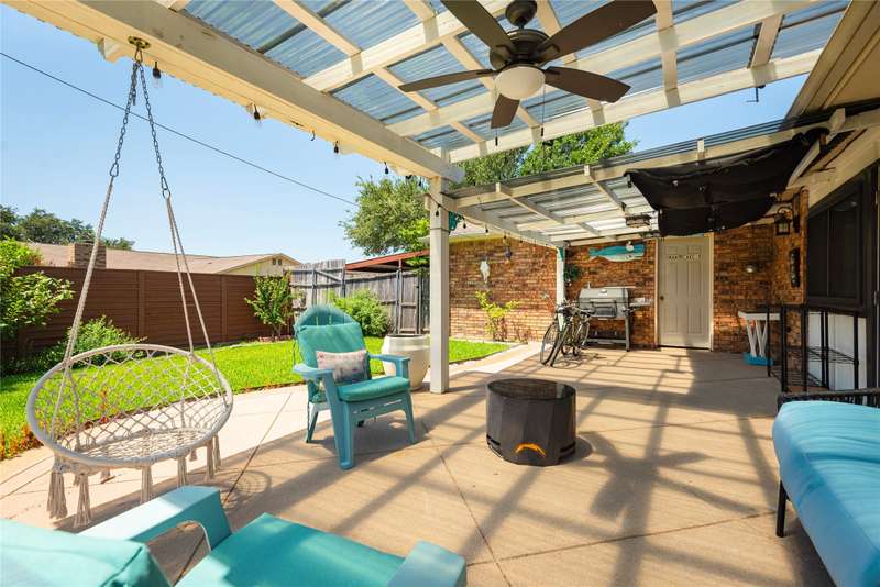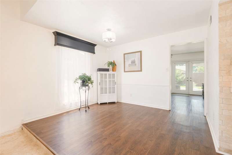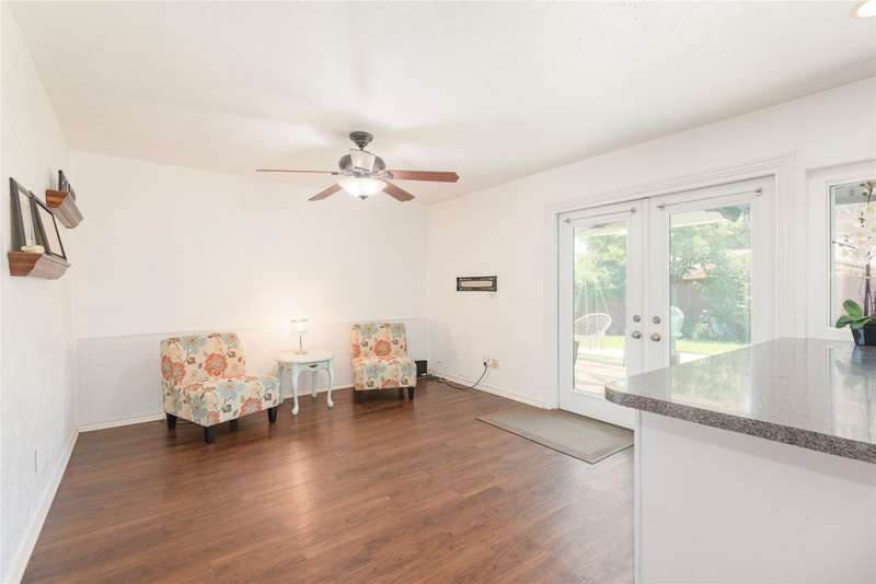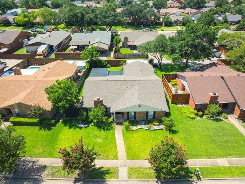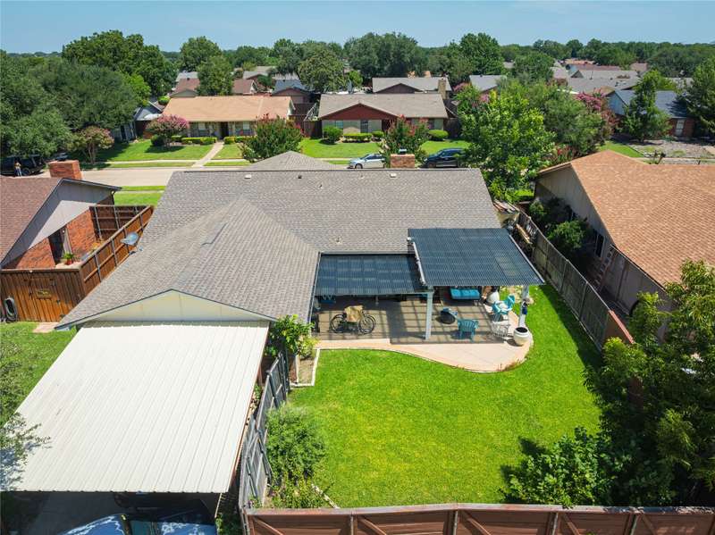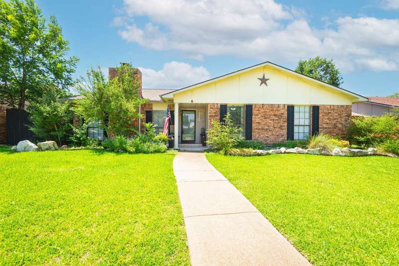 WOW! FANTASTIC LOCATION This Home is a 10! No surface left untouched in this beautifully updated home! The sellers eye for detail shines throughout, with thoughtful upgrades at every turn. Enjoy two spacious living areas featuring durable easy-care wood-look vinyl flooring. You will fall in love with the wet bar area featuring a beautiful travertine counter-top, backsplash and bowl sink. The kitchen boasts updated cabinetry, recessed lighting, SS appliances, and updated fixtures. Ceiling fans in bedrooms, Den and extended patio. Both bathrooms have been fully renovated with updated cabinetry, stylish finishes, and a frameless glass shower door and with body sprays in the primary bathroom shower. The home includes four generously sized bedrooms, two full baths, formal living and dining roomideal for entertaining or family gatherings. Step outside and fall in love with this California inspired pergola covered patio, perfect for watching the sunset, enjoying your morning coffee, dining in the evening, or entertaining family and friends overlooking a stunning backyard oasis. There's also plenty of yard space for kids or pets to play. You will enjoy the rear entry two car attached garage through the 2 car carport. Welcome Home Additional highlights: Cozy fireplace in the main sunken living area. Excellent location near schools, public transportation, the George Bush Turnpike, DNT, shopping, dining, and more! Dont miss your chance to own this meticulously maintained gem in a prime location!