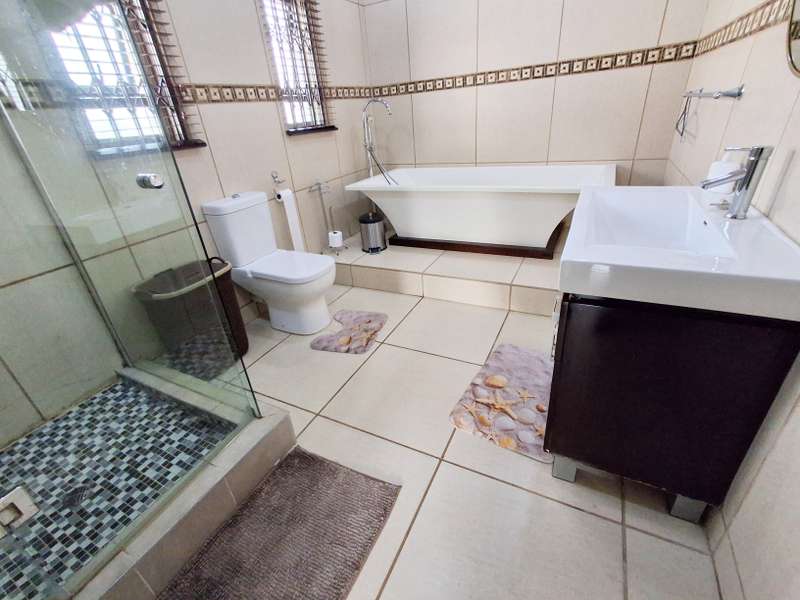 Stunning Features • 3 spacious bedrooms • 3 modern bathrooms • Modern open-plan kitchen • 3 living areas for entertainment and relaxation • Double garage with additional 3 under-roof parking spaces • Sparkling swimming pool perfect for warm days • Spacious backyard ideal for outdoor living • 2 JoJo tanks for water security • Air conditioning units for ultimate comfort • Cozy fireplace for chilly evenings Additional Amenities • Generator for power backup • Borehole for water independence • Irrigation • Gas stove for convenient cooking Flatlet • 1 bedroom flatlet with open-plan kitchen and dining area • Full bathroom for convenience • Perfect for rental income or guest accommodation Prime Location • Located in a highly sought-after area • Close to amenities, schools, and transportation Modernly Renovated • Recently renovated to the highest standards • Modern finishes and fittings throughout A Luxury Lifestyle Awaits! Disclosure: The under-roof property size is an estimate, and the agent won't be held liable if it is over or underestimated.