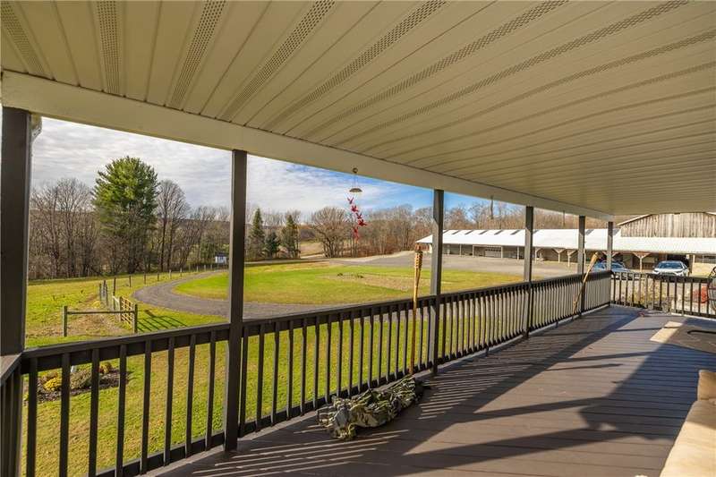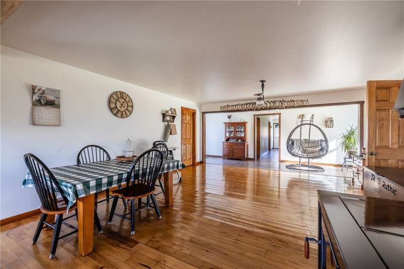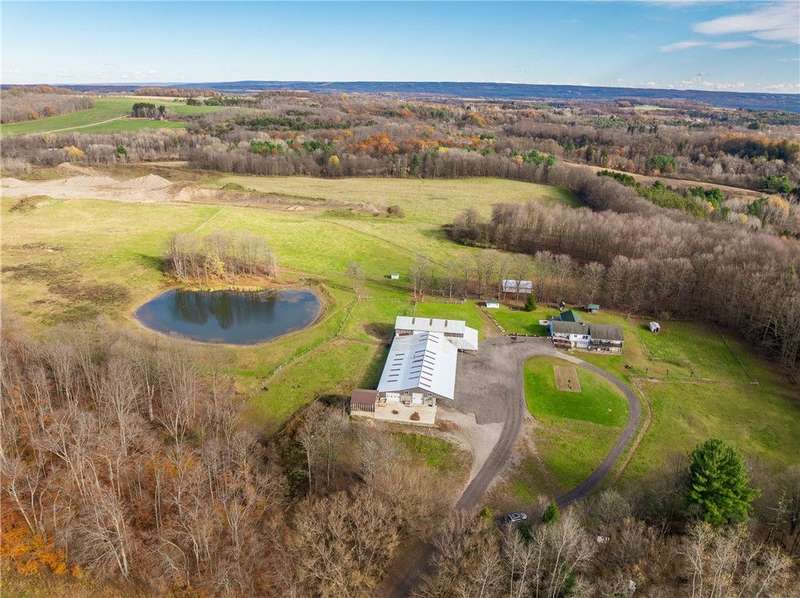 Gorgeous Ranch home with an incredible outbuilding with horse stalls, storage, and shop area plus 67 beautiful acres including 2 ponds, pasture, woods, and tillable acreage. The home has space to roam with a well-thought-out floor plan. High-end touches include a luxury bathroom, granite countertops, gleaming hardwood, and tile floors. So many improvements have been made by the current owners, including: insulating and installing metal liner panels as well as replacing the skylights in the shop area. The driveway has blacktop milling. There is new flooring, windows, metal board, and batten siding on the back half of the house. A new stamped concrete patio creates an ideal outdoor space. There is propane lighting in the main living areas. The heat is wood.