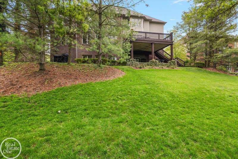Model show condition colonial with walkout basement to wooded common area in highly sought after Clear Creek Development. All high end finishes throughout; Chef's gourmet island kitchen with built-in commercial grade appliances; Entertainers' premium 1st floor wet bar; Bridge overlooking 2-story foyer & great room; 2-way fireplace between great room & library; Beautiful hardwood floors throughout 1st & 2nd floor; Spacious primary suite with large walk-in closet & luxury bathroom; 3-other bedrooms all have private bath access; Huge deck overlooking wooded common area & lower brick paver patio with built-in fireplace; 4.5-car garage; Walkout basement is fully studded out and ready for final finishes.