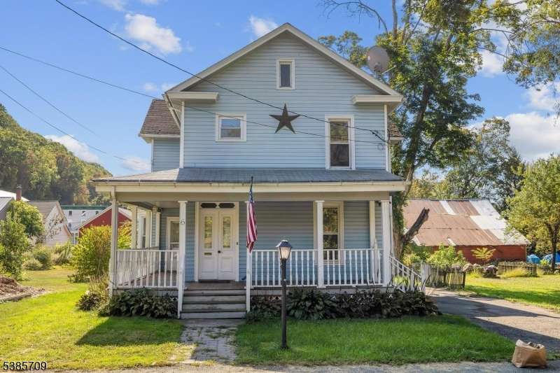 Bring your vision to this charming country Victorian home located in the village of Delaware, featuring a maintenance-free vinyl exterior and a recently rebuilt wrap-around porch. Enter through a gracious foyer with new hardwood floors that extend into the large living and formal dining rooms, showcasing old-world style with front and rear staircases. The home offers plenty of space, including five rooms on the second floor three bedrooms and two additional rooms suitable for an office or nursery along with an unusually wide upstairs hallway. Updates such as a new 3-bedroom septic system (2019), new water heater, a 7x16 resin shed, and a newer driveway. The full attic provides additional storage. The backyard is spacious with a covered barbecue area, perfect for outdoor entertaining. Conveniently located near major roads (RT 80, RT 94, RT 46) for easy commuting, and close to outdoor recreation at Delaware Water Gap Park, Worthington State Park, and Warren County Flatbrook Park. This delightful home combines historic charm with modern updates in a lovely neighborhood. Home is being sold strictly as is.