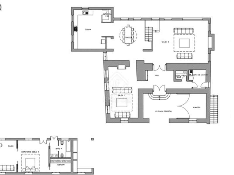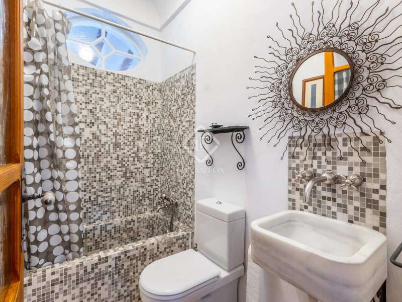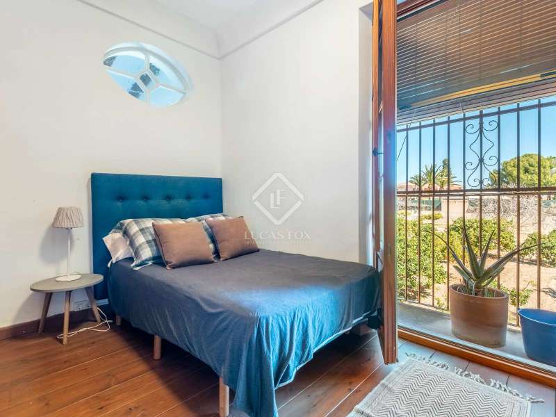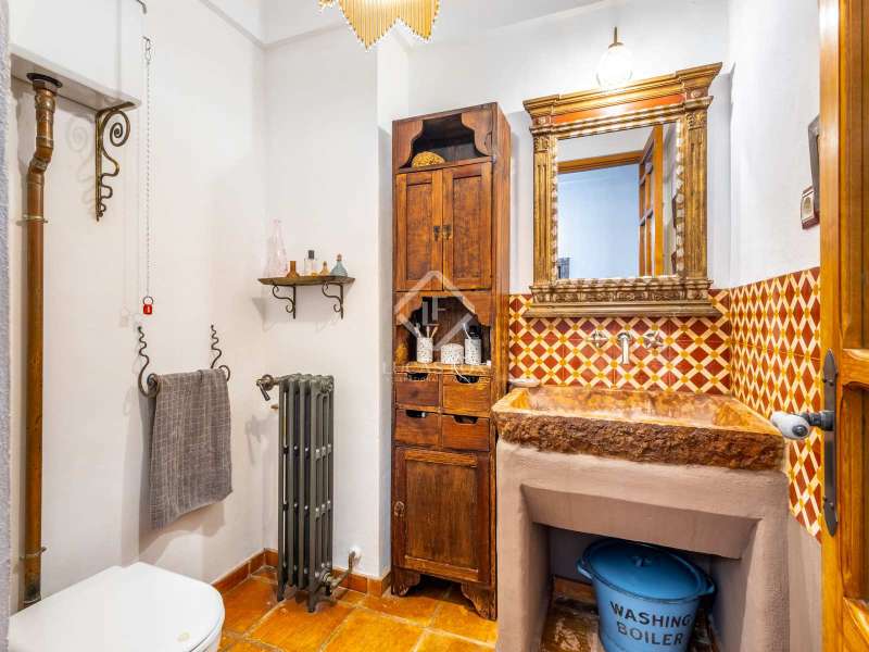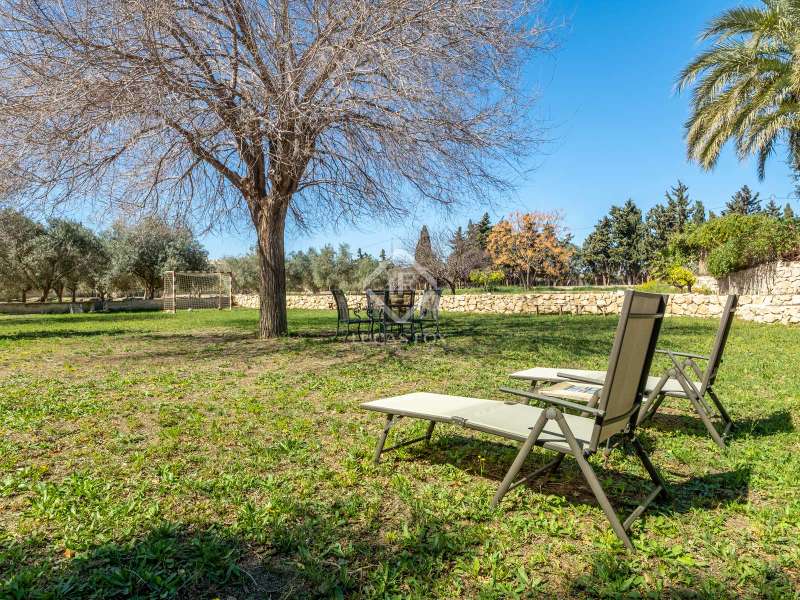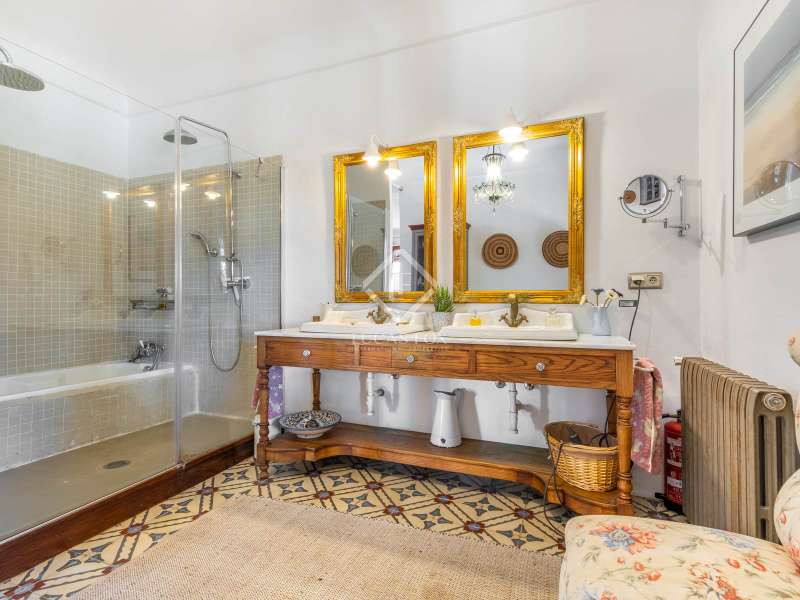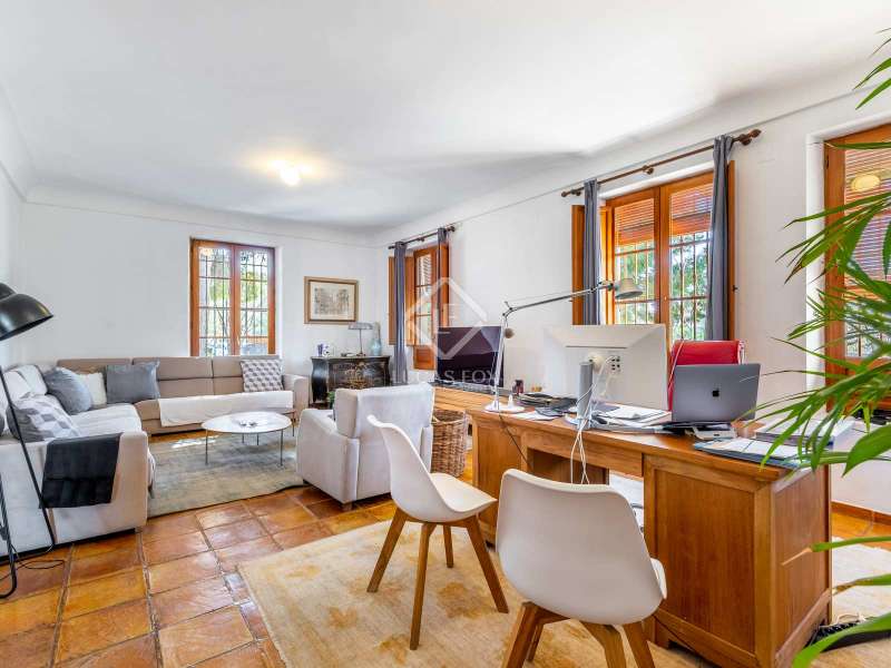 Lucas Fox presents this amazing farm with an impressive 536 m² manor house dating from the end of the 19th century with an unusual style, surrounded by orange and olive trees with gardens and located in an exceptional area of Mutxamel. The farm has a 1.9-hectare plot of land in perfect state of production for organic farming, which gives it an undeniable addition. The mansion is protected by hundred-year-old pine trees and has several cobbled terraces, an almost complete traditional oil press and an old stone utility room . This typical house with an orchard from Alicante has an unusual architectural façade that categorizes it as a historical monument. In the 2000s, it underwent a restoration for three years, without losing its historical value, since the wrought iron balconies on the second floor, the stone tower, the high ceilings and the baked clay were maintained. We enter the property through an African door restored by an artist and go inside. Here, we find elements of great character, from the Moumetiam stained glass window in the early 19th century entrance, the impressive double-height guest living room with its attractive exposed wooden beams, to the second- floor recreation room and its four bright bedrooms and three beautiful bathrooms completely restored with Andalusian hydraulic tiles from the 17th century. The guest living room is connected to a fantastic dining room, as well as to the large fully equipped kitchen with a Lacanche oven and Catalan vaulting vaulted ceilings. Next to the main property , there is a guest house with a spacious living room, two bedrooms, outdoor kitchen and barbecue. Both houses have been renovated respecting the style of the house, with luxury materials, such as the exclusive exterior carpentry in Dussie nautical wood and Climalit glass or the interior carpentry in solid wood. Outside, there is a beautiful garden and an vegetable garden with more than 600 trees: olive trees, cypresses, orange trees, mandarins and other various fruit trees. The large summer courtyard with a covered terrace offers an old stone utility room , which maintains a pleasant temperature during the summer months. Through a path covered with vines, we access the chill-out area with its pool with a Cuban mahogany pergola and iroko wood and fossil stone floors. This fabulous mansion would make an impressive family-friendly property , although due to its size and location it would also be ideal as a luxury boutique hotel.