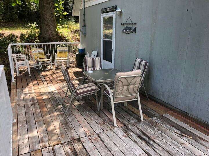 This well constructed home will need a little bit of finish work as well, as some deferred maintenance to bring it. up to its potential. It is very comfortable and has served the needs of its owners very well as is. Seller will finish the bathroom's remodel. It will provide any purchaser with all the joys and advantages of owning waterfront property as is. Relax and enjoy the views from your two sided wrap around deck. Shaded by large timber and cedar trees. There is also a large storage shed to hold all of your recreational toys and equipment needed for your family getaways.
