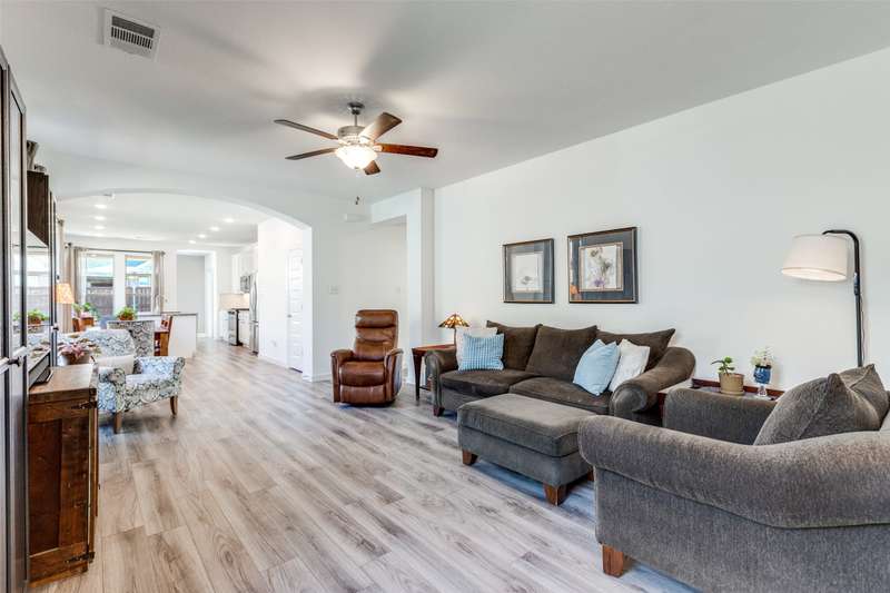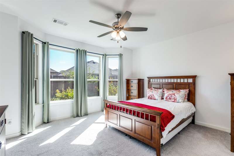 Fantastic find in Sandbrock Ranch. Award-winning Highland Homes built with green features, designer touches and details that make a house a Home. Single story with 3 bedrooms, 2 Full Baths, and plenty of storage. The elegant Master suite with bay windows features a walk-in closet and an oversized walk-in shower with double sink vanity. The split secondary bedrooms share a full bath with a shower-tub combo. The gourmet kitchen features 3 cm granite countertops, gas range, 42 inch cabinets for extra storage, large pantry, and an island for dining and food prep. Live comfortably with a Tankless water heater and Trane 16 seer HVAC with fresh air return connected to the main AC to help reduce dust, odors, and indoor contaminants for improved indoor air quality. Energy star rated exhaust fans in all bathrooms. Enjoy the covered back patio with charmingly landscaped back and side yard areas. Sandbrock Ranch is more than a neighborhood, it's a lifestyle. Residents enjoy year-round events with a luxury carriage house, infinity edge pool, fitness center, 2 dog parks, miles of scenic trails, and the Ultimate Tree House. The lakes feature catch-and-release fishing. Close to PGA Tour HQ, HEB, Walmart, Costco, and numerous restaurants and retail. Great opportunity to locate in one of North Dallas' most desirable master-planned communities.