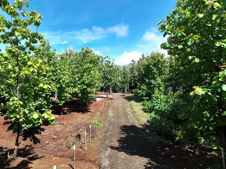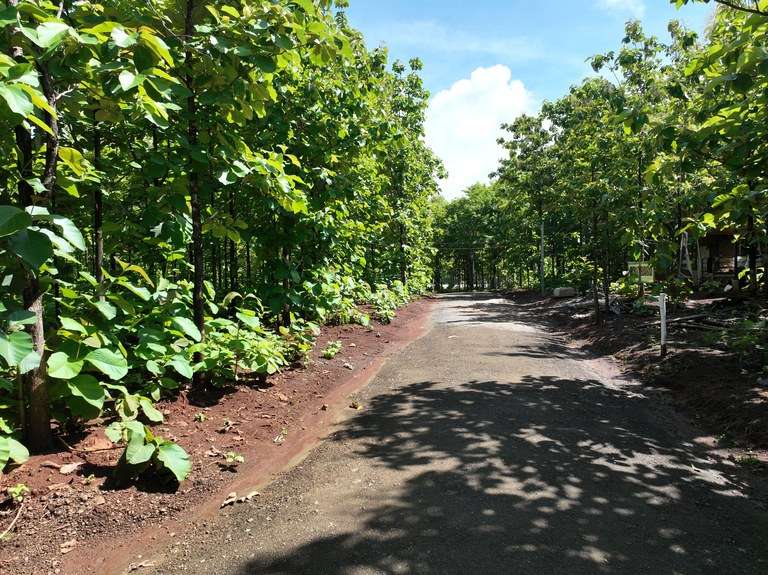 The property is square in shape, very flat, and ideal for construction. It is fully planted with healthy, 5-year-old teak trees, offering natural beauty and potential timber value for future use. Whether you decide to harvest the teak or incorporate it into your landscaping, this unique feature adds both visual appeal and investment potential. With easement access on two sides, the lot enjoys enhanced privacy and flexibility in site planning.