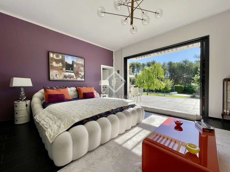 Lucas Fox International Properties, 10 minutes from Montpellier city center, in the famous Domaine des Vautes de Saint-Gély-du-Fesc, contemporary and family property on one level with outbuilding and spacious garden on the first line. It is characterized by high-end services, beautiful spaces and superb views of the garden and the neighboring pine forest (with private access, ideal for walks). Its 300 m² are mainly oriented towards the terraces and its lovely landscaped/planted garden with swimming pool and outdoor kitchen. The main house is composed of 3 main parts: triple living room (living room, dining room, kitchen-diner and utility room); a parental wing overlooking the garden and composed of a large office/dressing room, bedroom and bathroom; finally, a wing intended for children and guests which accommodates 3 other bedrooms including a suite and another bathroom. A guesthouse offers a different way to welcome guests, or even to carry out any artistic or professional project. Outside, bordering the pine forest, the swimming pool and poolside kitchen create a vacation atmosphere. The property is equipped with a drilling system and solar panels. There's a double carport. Information on the risks to which this property is exposed is available on the Géorisques website: www.georisques.gouv.fr.