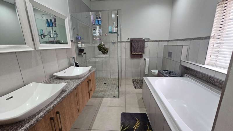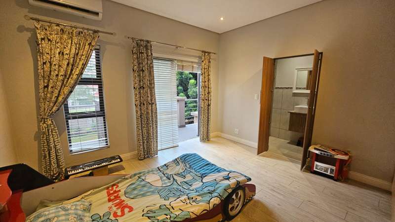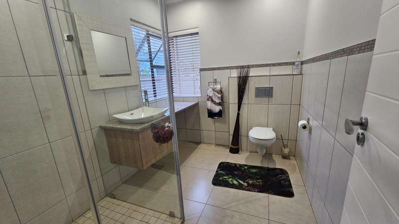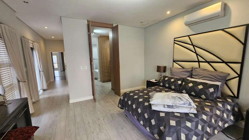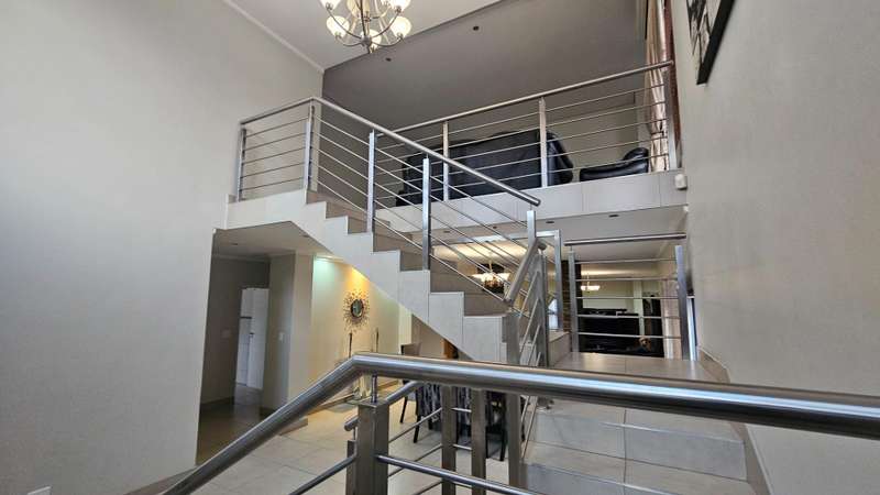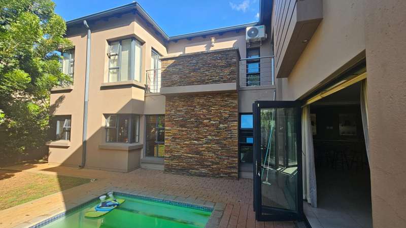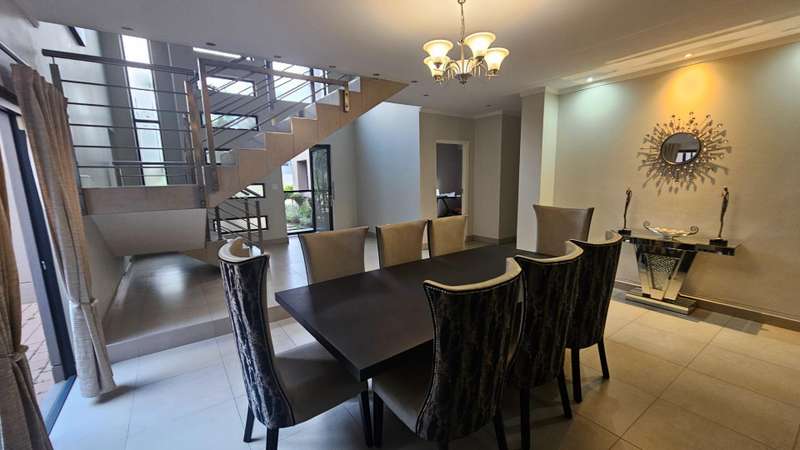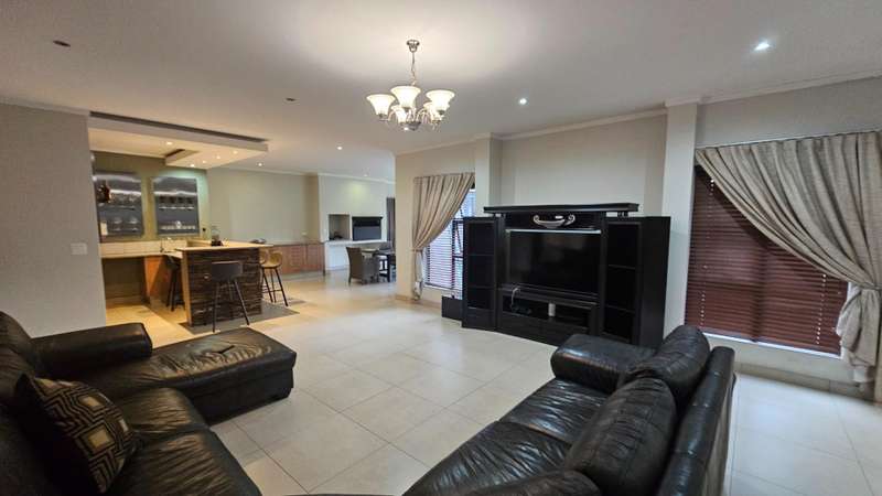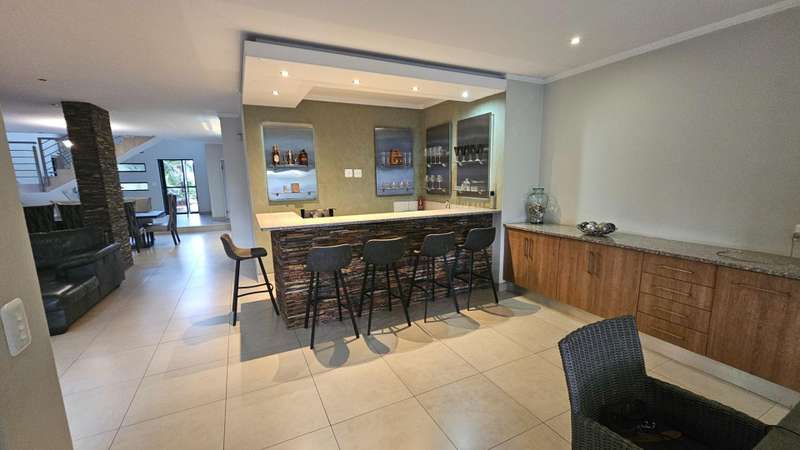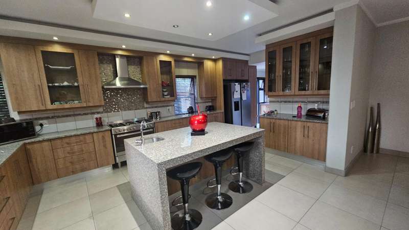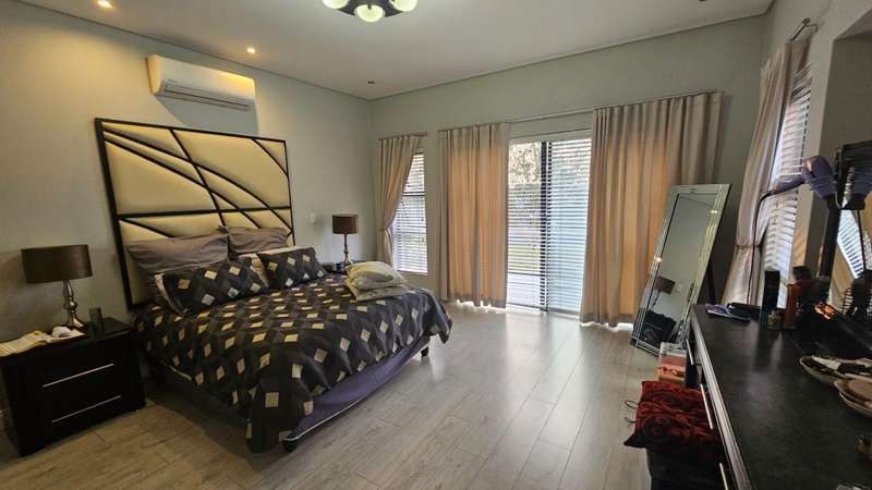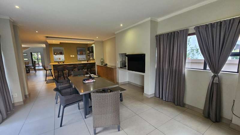 Large Family Home with Large Space and an Excellent Entertainment area. As you Enter through a Pivot Glass Front door, you will find the following: - Entrance Hall and Staircase - Dining Room - Study with Built in Cupboard - Lounge - Huge Kitchen with Separate Scullery and space for appliances and Gas stove and Kitchen nook - Bar and Braai room with Built-in Braai, Stacked Doors and Built-in Cupboards with Granite Tops - Patio with Louvre Deck next to the Pool - 1 Bedroom and Bathroom Downstairs (Bathroom also serves as Guest Toilet) Upstairs - 4 Bedrooms all with Air Conditioning - 4 Bathrooms all En-Suite - Linen Cupboard - Walk in Storage - Balcony - Trellidroors - 4 Garages and 6 Parkings - Staff Accommodation with Bathroom - All Blinds included in Sale - Ceiling Fans - Fibre - Gas Fireplace - Irrigation - Fruit trees - Electrical fewnce - Gate to Green Belt - Next to the Green Belt. - Clubhouse - 24 Hour Security - Alarm System Call me for a Private viewing. Pre qualified clients only please.