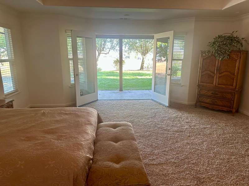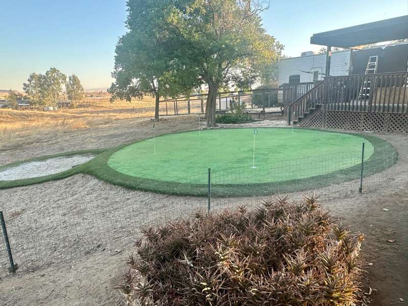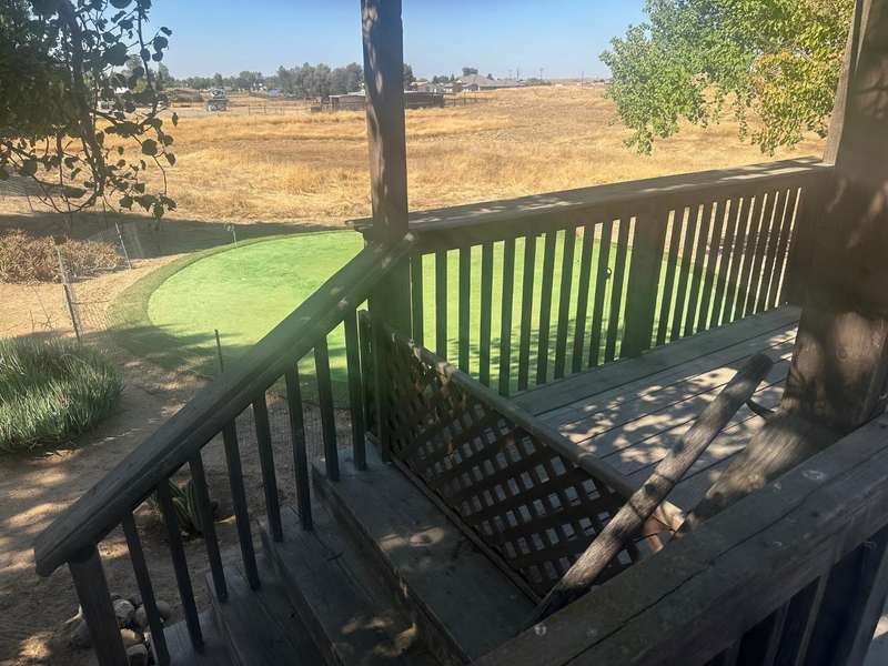 Stunning 3 bedroom 3 bath custom home has 3491 square ft., beautifully landscaped and has an open floorplan with custom features throughout. Enter through the impressive front entry with an atrium containing live fica trees. The great-room has vaulted ceilings, a beautiful pellet stove insert and French doors leading to a breakfast patio. The gourmet kitchen features a built-in hutch, a functional island with small sink, a gas range and a sub zero refrigerator, and opens to the large great-room. There is also a big pantry. The formal dining room is located just off of the kitchen. An isolated bedroom on the East side (currently being used as an office) is huge and has an extra large closet. A full bathroom is located in the hall right off of the bedroom. On the West side of the home are two additional bedrooms. The large primary bedroom has a sitting area, French doors leading to a back patio, luxurious bathroom with walk-in shower and spa tub, and a huge walk-in closet. The middle bedroom has its own bathroom. There are two additional large walk in closets off of the hallway, plus a massive laundry room that is set up for either a gas or electric dryer. The 3 car garage is 822 sq ft. and there is 827 sq ft of covered patios. The solar will be paid off by Seller at the close of escrow. There is a putting green out back near a charming raised deck that is attached to a Motor home with a bedroom, which can be left for the new buyers.To top it all off, it is located on 2.13 acres zoned for horses. Don't miss the chance to see this wonderful home.