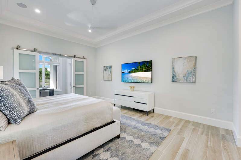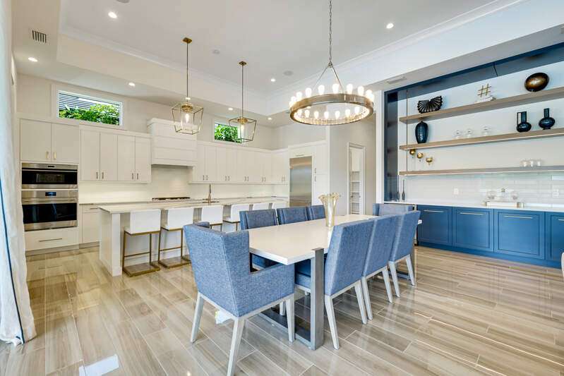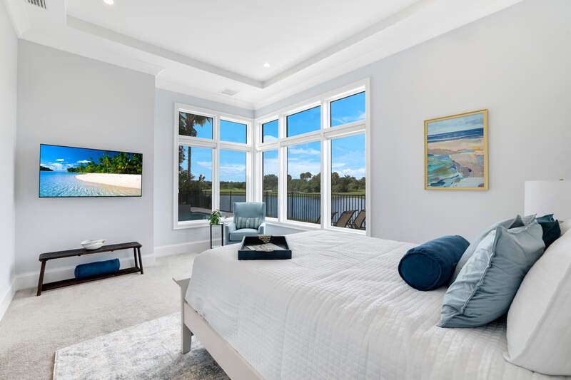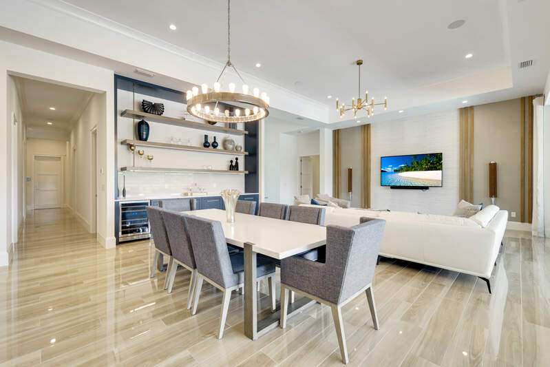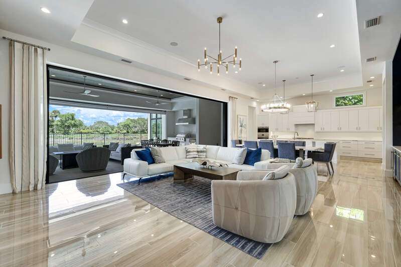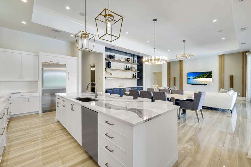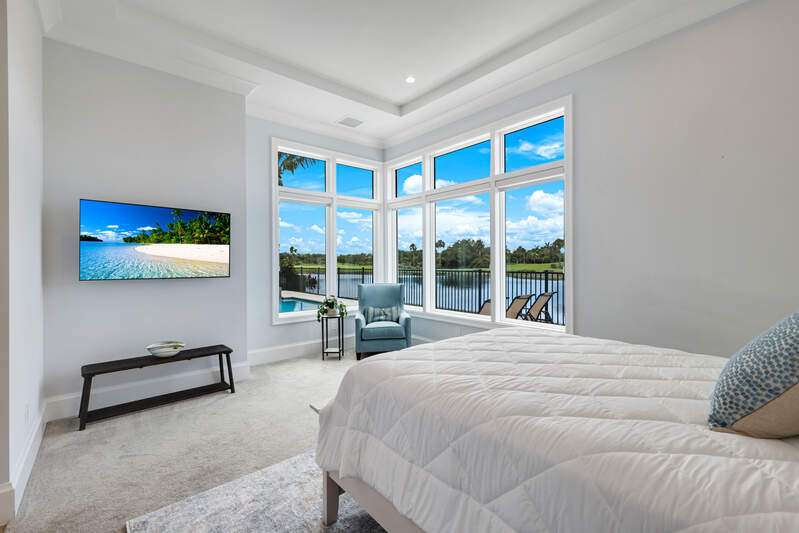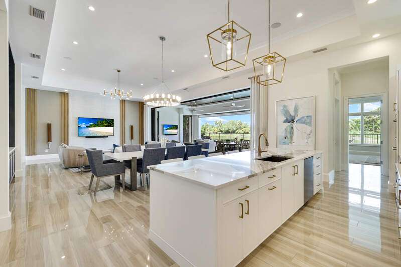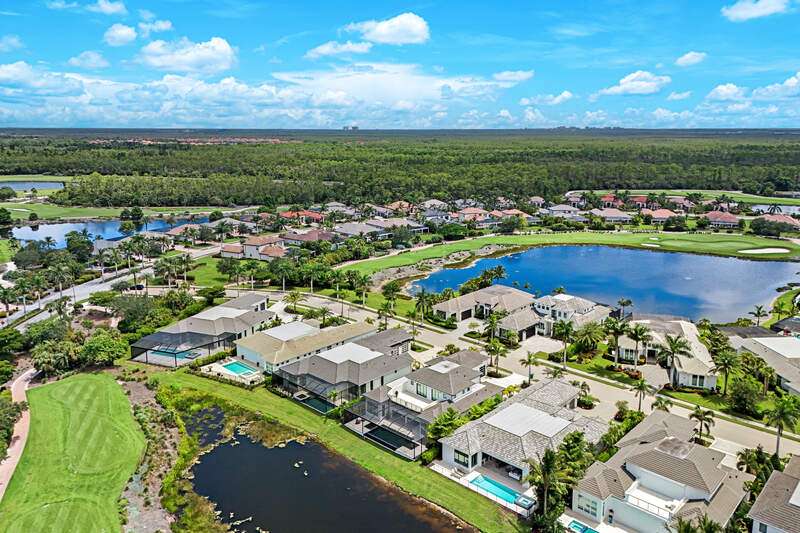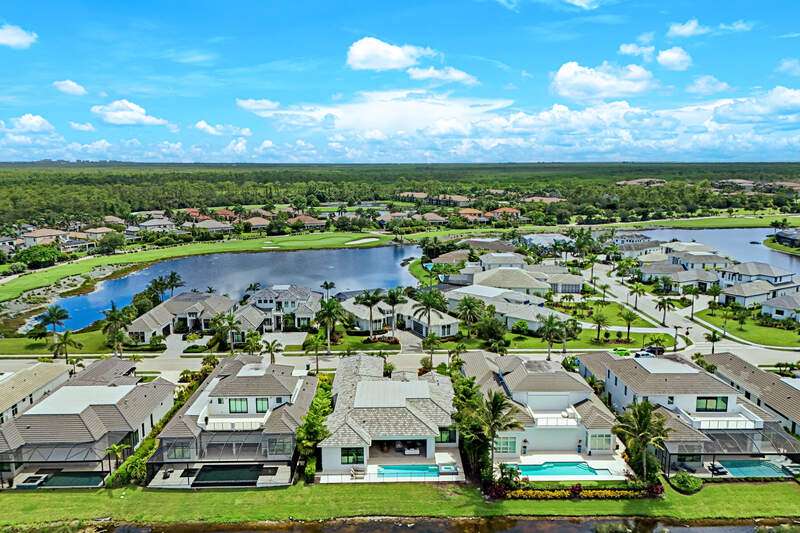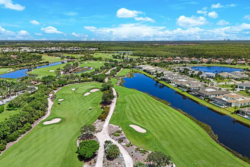 IMMEDIATE FULL GOLF MEMBERSHIP! Designer curated 4 bedroom, 4 bath home within the exclusive enclave of The Peninsula in Treviso Bay. Easily entertain in the living area with custom beverage bar and retractable sliders which seamlessly blend the inside and outdoor spaces. "Everyone gathers in the kitchen" around the enormous center island which seats 6! Culinary creations are easy with the Wolf gas cooktop, wall ovens and large walk-in pantry. The primary suite rivals a boutique hotel with a poolside sitting room/office plus custom walk-in closets. The bath is spa-like and boasts dual vanities, a walk-around shower, dual shower heads and custom niches. Guests have their choice of bedroom suites, each with oversized closets and designer baths. The lanai is expansive with outdoor kitchen. The pool and spa are sun-drenched with water-to-golf views. Oversized 3 car garage, custom wood details, large beverage bar, electric storm screens plus designer wallpaper and lighting. This special home is walking distance to the Treviso Bay golf clubhouse. Full golf membership is immediate and without the heavy buy-in that other memberships require. In addition, members have exclusive access to TPC golf courses worldwide. Multiple dining options plus an extensive calendar of gatherings complete your Treviso Bay lifestyle. Beyond the privacy of Treviso Bay is the renowned dining and shopping of Naples and Marco Island. This home is very special offering and sold beautifully furnished.