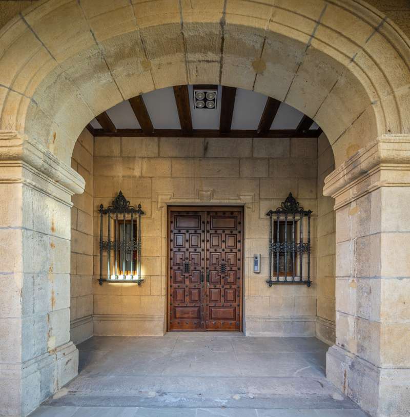 Description of the building The Eguzki Alde palace, in the Basque town of Getxo, is a building designed and built by the architect Leonardo Rucabado in 1918. The Eguzki Alde palace is the purest and most representative example of the architectural style known as "neo-montanesque" in the region. The environment and its history: The iron and steel industry and shipbuilding that developed in Bilbao and the municipalities along its estuary during the 19th century made the port of Bilbao the port of connection with large European cities for the transport of iron ore, coal, oil and its refined products. The iron and steel industry, shipbuilding and trade made Bilbao one of the richest cities in Spain. The large amount of economic resources generated allowed - between 1887 and 1893 - the design, construction and financing by private initiative of a bridge - the Vizcaya Bridge: the first suspension bridge in Spain - to join the two banks of the estuary at the mouth of the River Nervión, before reaching the large port known as El Abra Exterior. The existence of the bridge facilitated the formation of the Neguri neighbourhood as a residential area for Bilbao's industrial and commercial bourgeoisie, which was strongly influenced by the English culture and customs of the time. The Neguri neighbourhood has a design inspired by English garden cities. At the beginning of the 20th century it was a residential holiday area for the wealthiest families who built and lived in immense mansions. Over time, it became a permanent residential neighbourhood, but retained the prestige and reputation for quality that it had a hundred years ago. The palace of Eguzki Alde is located in the heart of the Neguri district on the seafront. If Eguzki Alde means "the sunny side" in the local Basque language, Neguri - which comes from negu-uri, i.e. neguko hiri - means "winter town". Built with solid stone walls and wooden beams, it stands out for its elegance and sturdy appearance. Its volumes are arranged gradually over six storeys, from its sturdy base on the ground floor to its tower, which rises above a hipped roof topped with elegant decorative stone pinnacles that are an extension of the columns that form the corners of the façades. The cornices elegantly overhanging around the perimeter protect the balconies, terraces and windows, which are well distributed among the five dwellings. With a rectangular floor plan of three by four openings, a distribution of light-filled rooms is achieved in each of the dwellings. This use of natural light is a worthy recognition of the suggestive name of the palace: "Eguzki Alde" or "Sunny Side". Situated in a location chosen for its multiple advantages, this palace enjoys unbeatable views of the sea, the sandy beach of La Bola, the marina of Getxo and the bay of El Abra. Complete reconstruction There is no greater luxury than to be able to completely refurbish an early 20th century palace with a structure of solid stone and robust hardwoods in an enviable location. Modern techniques and materials have allowed these residences to have a very functional contemporary design and minimal energy consumption, allowing maximum comfort for its residents. Description of each flat There are five homes in the building: two homes on the ground and first floors; one home on the second floor; one home on the third floor; and one home on the fourth floor. The building is located in the centre of a plot of 2,000 m2, which has several gardens, a 20 m long swimming pool and enough underground garages and storage rooms for the flats, with entrance and exit to the garage directly from the street. Ground floor dwelling, 1B, with private garden of 200 m2, distributed in three bedrooms, three bathrooms, a toilet, an office, living-dining room, kitchen, pantry and covered terrace. The constructed area is 251,62 m2. On the first floor there is the main entrance, a living-dining room of 40 m2, an office of 15 m2 very luminous, kitchen, toilet and pantry. It has a covered terrace of 30 m2 opened by four stone arches and stairs to the private garden, with south orientation and sea views. On the ground floor there are three bedrooms and three bathrooms. The master bedroom has a living area of almost 40 m2 and direct access to the private garden.