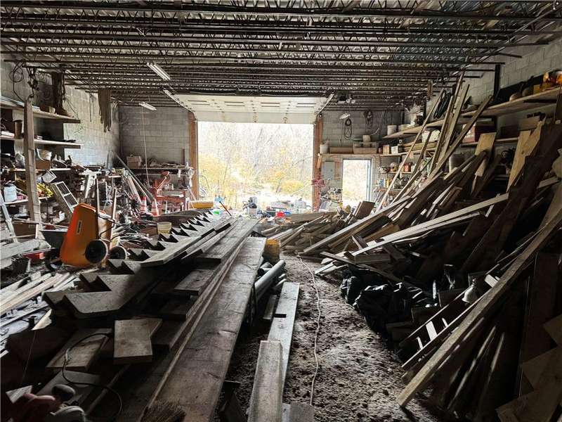 Unique Investment Opportunity with two structures (A LARGE RAISED RANCH HOUSE & MASSIVE GARAGE w/ UPPER-LEVEL SIDE-BY-SIDE DUPLEX ABOVE IT) all situated on approx. 4.74 WOODED ACREAGE. The ranch home has a nicely remodeled kitchen, lower-level game room, and a new roof installed in 2021. One Side of the duplex is unfinished. Minutes to Interstate 70 and Expressway Rt 43. Warehouse is approx. 59'x35'=2065 Sq. ft. w/ Garage Door approx. 14' Wide x Height 11'6" with tons of shelving!