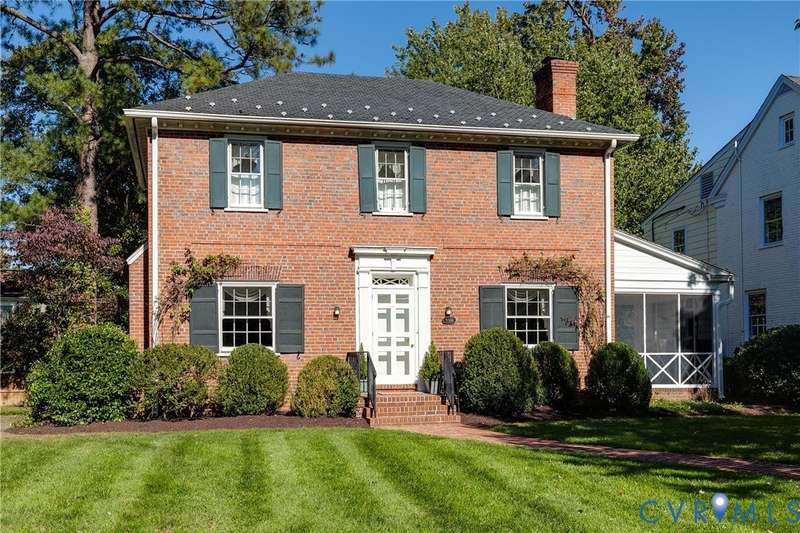 Classic Glenburnie brick and slate Colonial ideally located in the heart of the neighborhood on a quiet, leafy block. This charming and meticulously maintained home features 3 bedrooms and 2½ baths. A welcoming living room with a fireplace with handsome mantle and gas logs has a door leading to a lovely screened side porch as well as French doors to an expansive covered porch spanning across the back of the home. The dining room is well-scaled with built-in bookshelves, and the efficient galley kitchen offers abundant storage and additional access to the covered porch-perfect for entertaining or relaxing outdoors while overlooking the private, beautifully landscaped backyard. Upstairs are three comfortable bedrooms and two full baths. The partially finished basement provides a wonderful recreation room ideal for TV or play, while the unfinished side offers laundry and excellent storage space. The home's signature pink roses cascading across the front create a picture-perfect curb appeal and are a beloved neighborhood feature all summer long. This community minded block is close to the Glenburnie green space. Enjoy easy walkability to all the shops, cafes, and restaurants in the popular Libbie & Grove area.