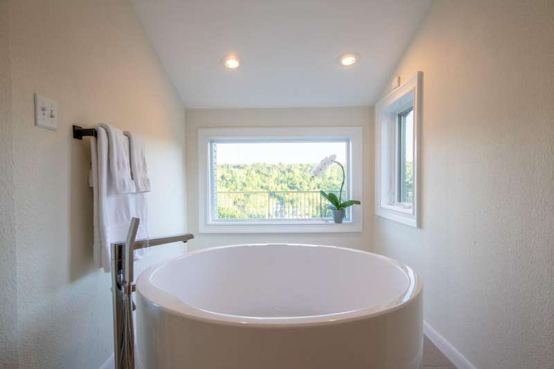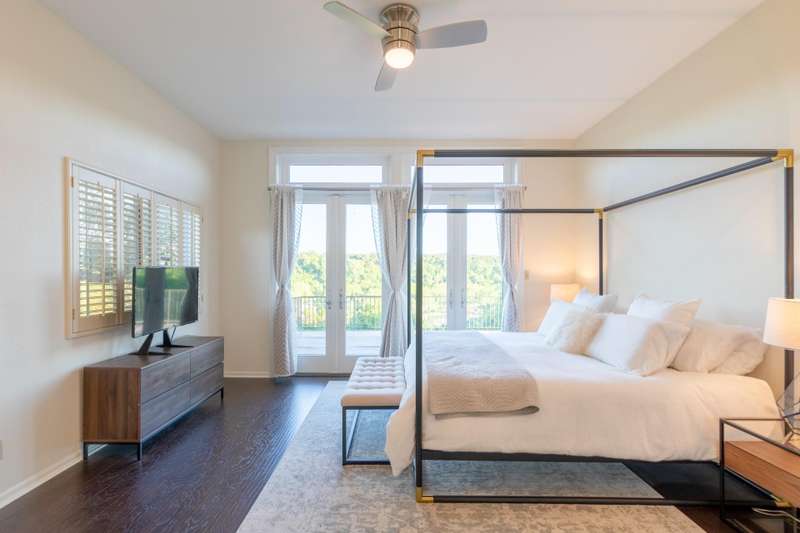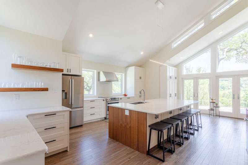 PANORAMIC LAKE AUSTIN VIEWS! Escape to your own private retreat just 30 minutes from downtown Austin in this stunning, one-of-a-kind home. Tucked away on a quiet cul-de-sac with no direct neighbors, this lush, tree-filled acre offers privacy, serenity, and sweeping views of Lake Austin (**but NO LAKE ACCESS from the property**). Unique architectural details--including a dramatic double-sided, two-story fireplace--add character and warmth to the open-concept living space. Walls of Andersen windows and expansive patios blur the line between indoors and out, creating the ultimate setting for lake life. The chef-worthy kitchen is a showstopper, featuring Bosch appliances, refrigerator drawers, a spacious center island, and endless custom storage. The main level includes the main living and dining areas plus two guest bedrooms with a shared Jack-and-Jill bath. Upstairs, the luxe primary suite enjoys jaw-dropping lake views and direct patio access, along with a flexible second living area and a fourth bedroom with en-suite bath. There's plenty of room to add a pool, outdoor kitchen, or anything else you envision. Just 4 minutes to iconic Ski Shores Cafe is practically in your backyard. With a low 1.5% tax rate, owned solar panels (not shown in photos), and an EV charger included, this home offers luxury, efficiency, and a lifestyle you'll love. Don't miss this rare opportunity to own a slice of Lake Austin paradise!