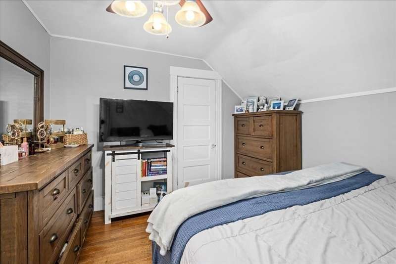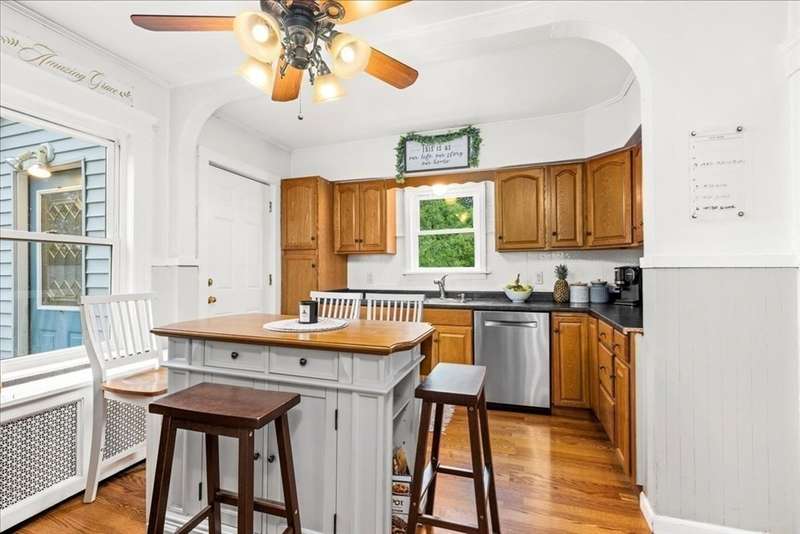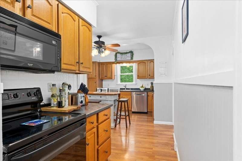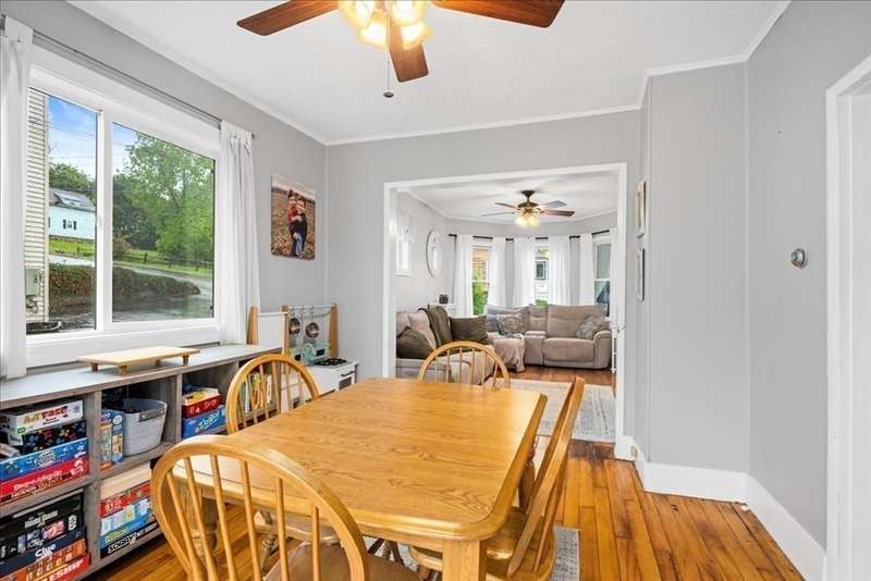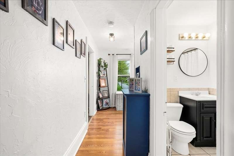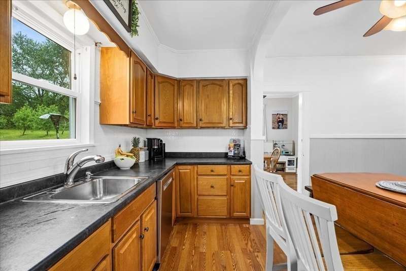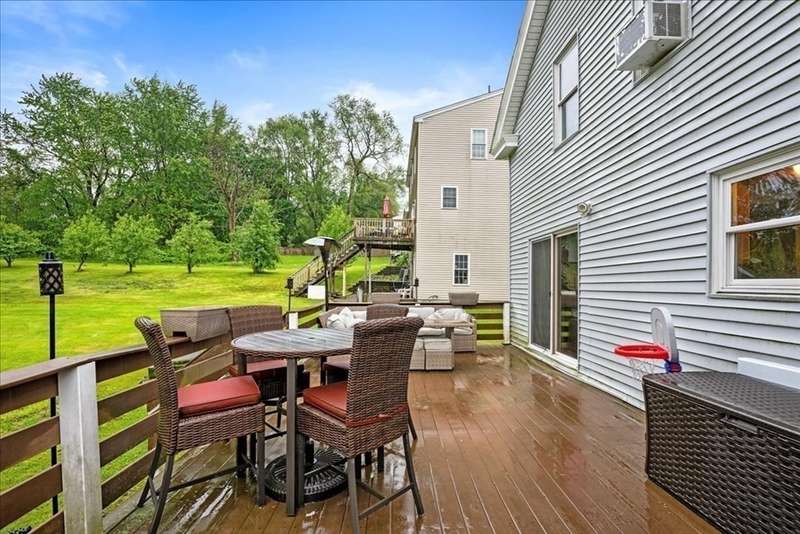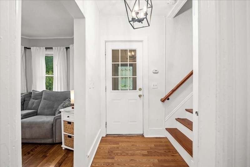 This charming home balances timeless character with modern updates, offering an ideal setting on a large, level lot--just minutes to major routes! Providing a convenient location while maintaining the peace of suburban life. The updated kitchen features abundant counter and cabinet space. The separate first-floor laundry room adds convenience and functionality, while the dining room, complete with a sliding door to the composite deck and spacious backyard, is perfect for gatherings. The front enclosed porch provides a practical and welcoming space for everyday use. The beautifully rebuilt staircase leads upstairs to 3 comfortable bedrooms and renovated bathroom, tastefully updated with modern finishes. This home has been lovingly maintained with a young roof, hardwood floors throughout, new hot water heater, replacement windows, generator, and vinyl siding. You won’t want to miss the opportunity to make this move in ready home yours!
