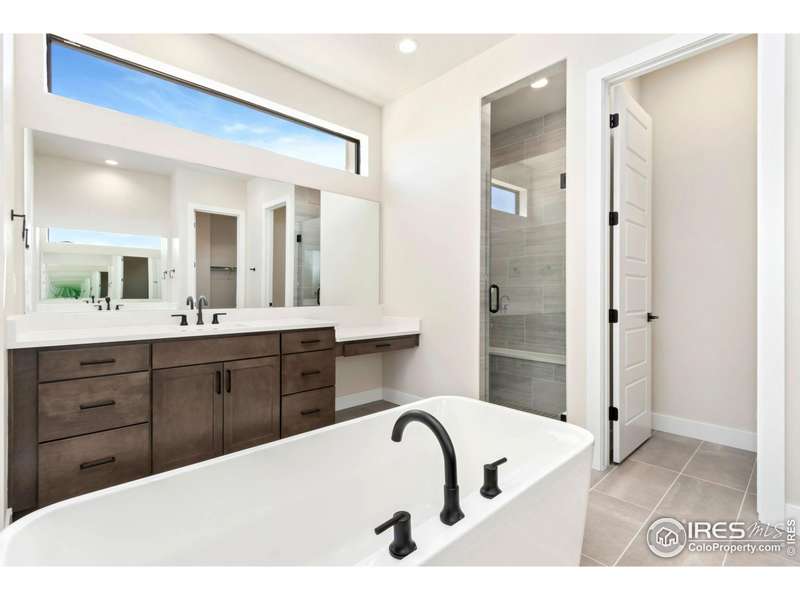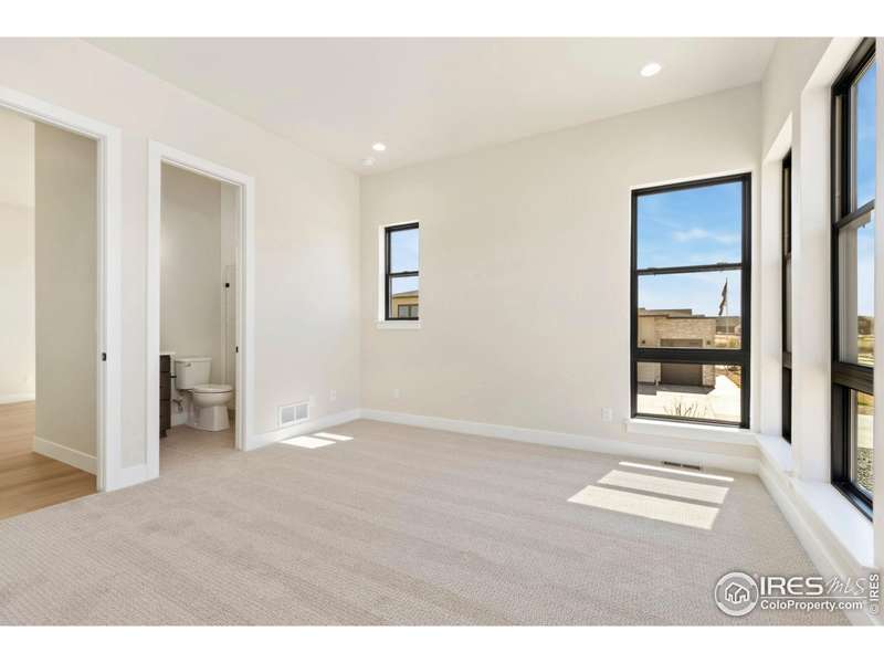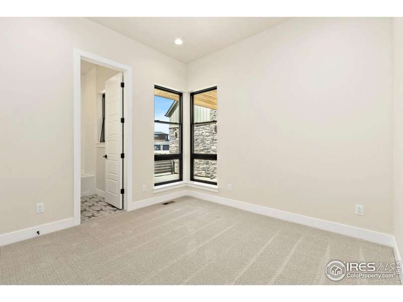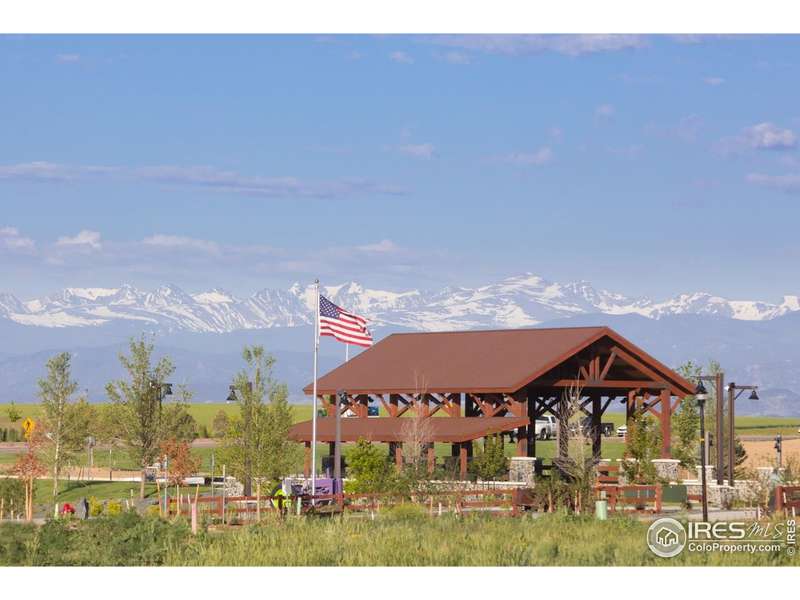 One of the last Alexandra's at Acadia in RainDance by Trumark Homes; a stunning, single-story home offering 4,710 finished sq.ft. with 4 bedrooms and 4.5 baths. Spacious great room with stained ceiling beams and contemporary fireplace with tile detail to the vaulted ceiling. The gourmet kitchen, featuring a walk-in pantry and an oversized center island, perfect for entertaining. The open kitchen includes dusk-stained shaker style with glass stacked cabinetry, Calacatta Classique quartz countertops with subway tile backsplash, Monogram/Electrolux stainless steel appliance package, and decorative matte black fixtures. A center-meet sliding glass door connects the light-filled dining room and great room to the covered outdoor east facing deck which features cedar tongue & groove ceiling detail. A dedicated office with a glass wall and door overlooks the covered deck. The primary suite features ample windows, a luxurious bathroom, walk-in shower, and an elegant freestanding tub. An oversized walk-in closet completes the primary suite. On the other side of the home, you'll find a large laundry, flex room, and two secondary bedrooms, both with ensuite bathrooms. Finished basement includes a rec room with wet bar, a fourth bedroom and full bath. The home comes with extensive 5" plank natural stained engineered wood flooring throughout the majority of the main floor, black interior windows, hand trowel drywall finish, luxurious carpet in bedrooms, spacious 10-foot ceilings throughout the main level and basement, eight-foot interior doors, 3-car side-load garage with insulated steel doors, tankless water heater, AC, and more. Beautiful 1-acre home site close to neighborhood park & RainDance National Golf Club. Optional Raindance pool amenity. Don't miss your chance to live at this remarkable master-planned community in Windsor, CO!