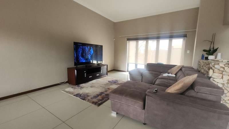 This beautiful home consists of 3 spacious bedrooms. Two modern full bathrooms. Three living areas and a study. Beautiful kitchen with plenty cupboards. Two garages, sparkling pool with pump and braai area. All this is more situated in a sought after secure complex. So pack your bags, bring your pets and lets make this you home